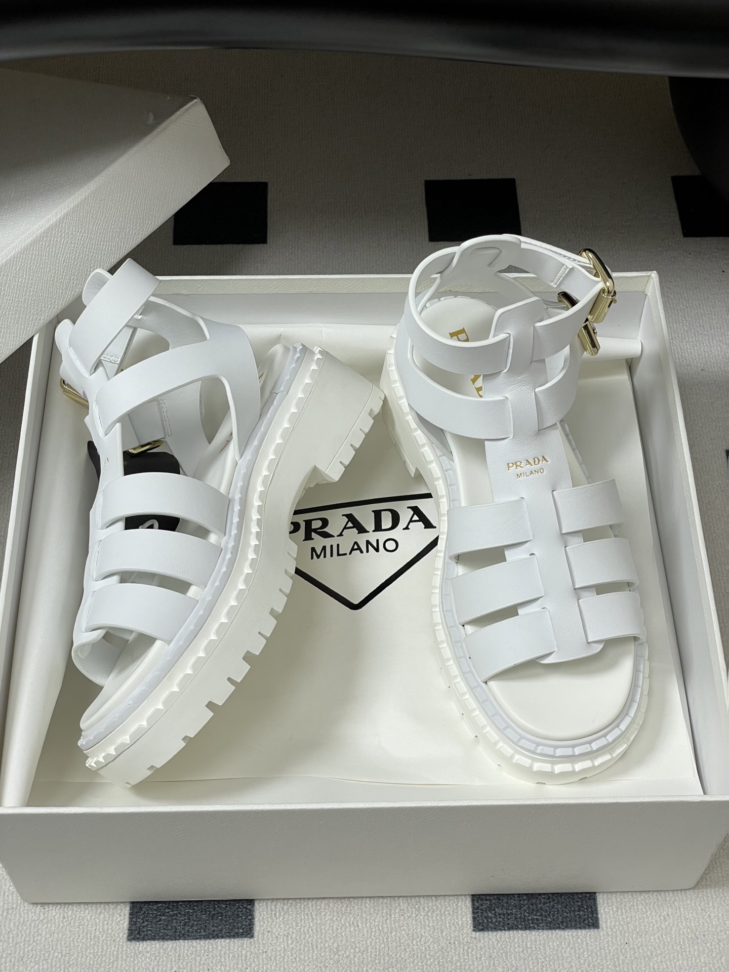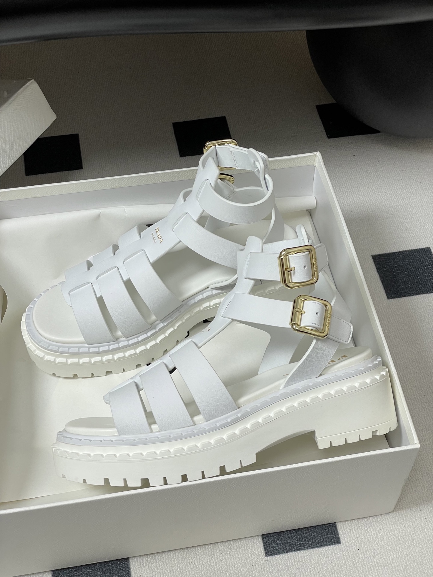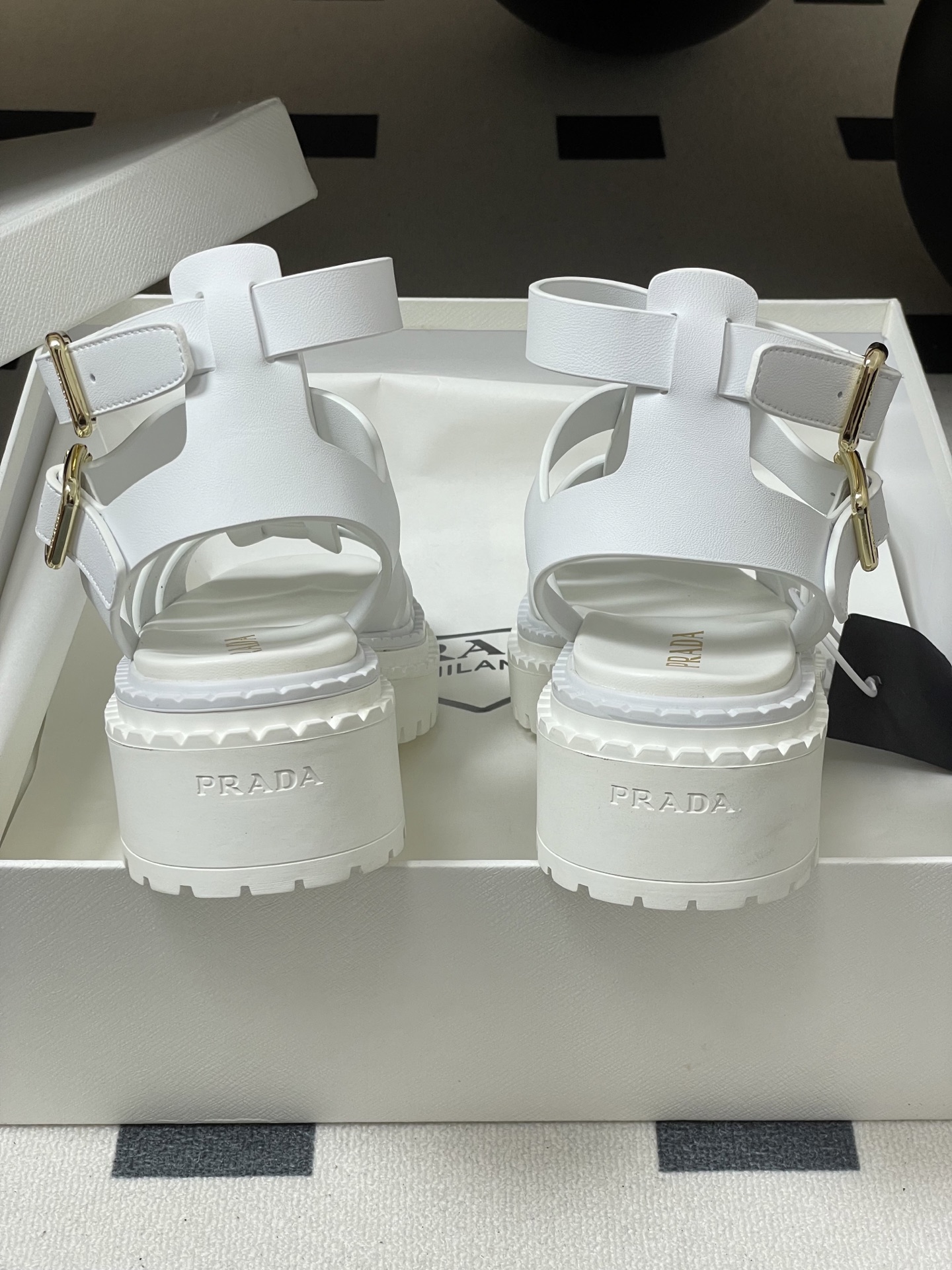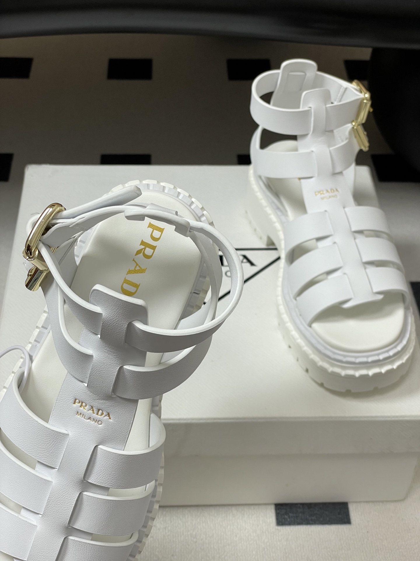 這款鞋子是AAAAA 1:1 質量(非常棒). 使用了和原版一模一樣的材料. 商標部分也保持了和普拉達/Prada一樣. 圖片拍攝是實物鞋子拍攝, 您所收到的實物保證和我們圖片一模一樣.