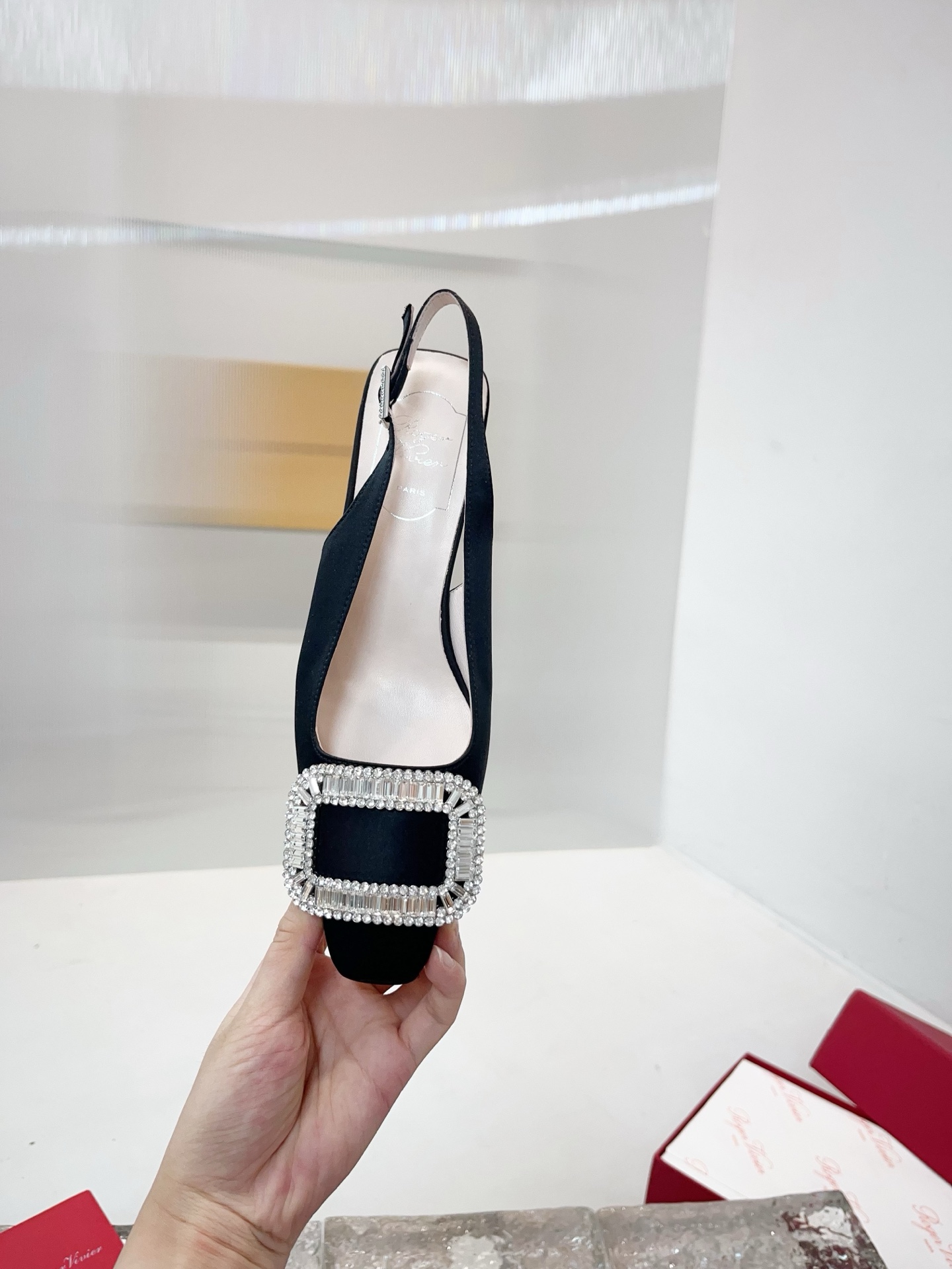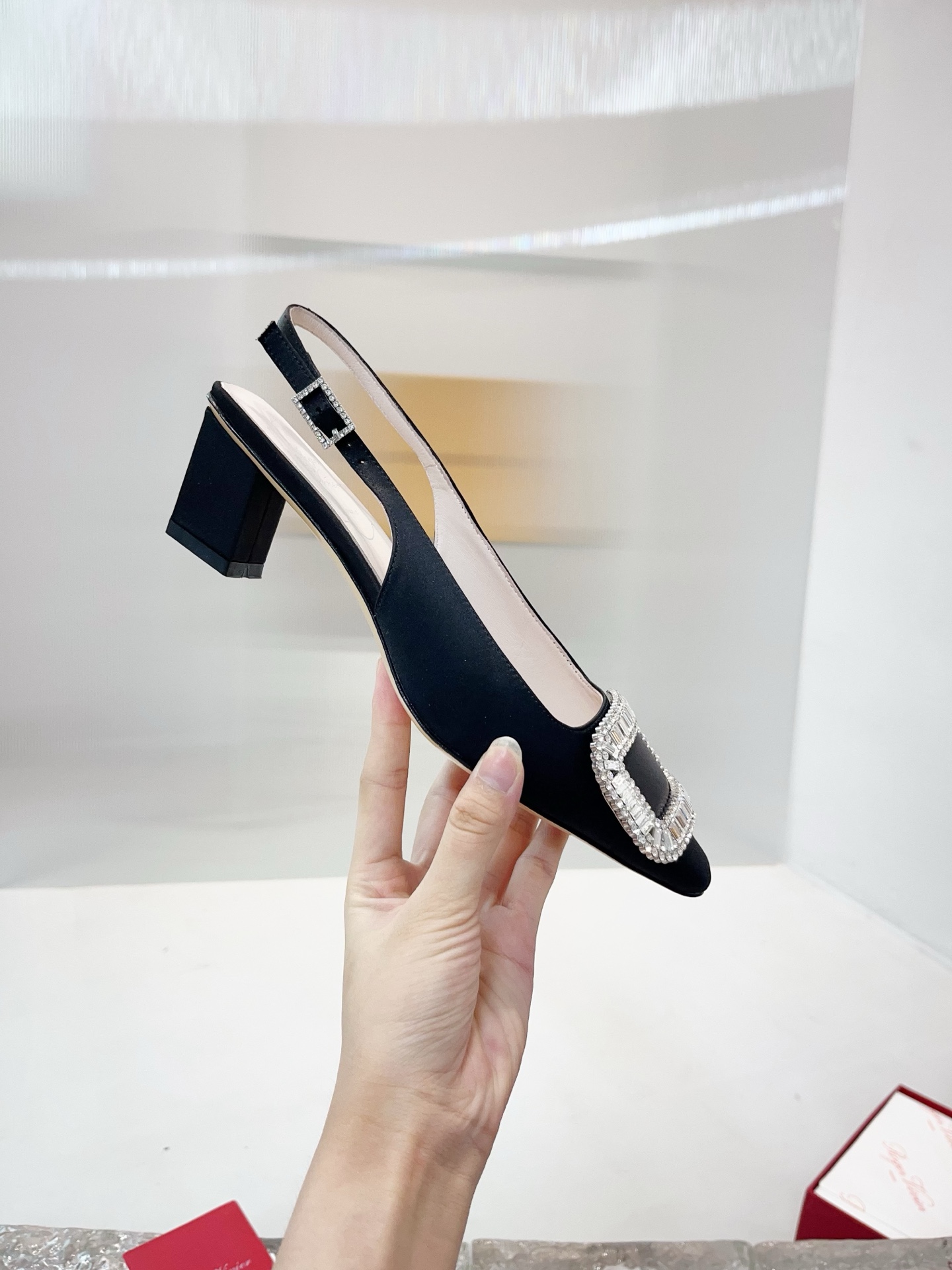 這款鞋子是AAAAA 1:1 質量(非常棒). 使用了和原版一模一樣的材料. 商標部分也保持了和羅傑維維耶/Roger Vivier一樣. 圖片拍攝是實物鞋子拍攝, 您所收到的實物保證和我們圖片一模一樣.