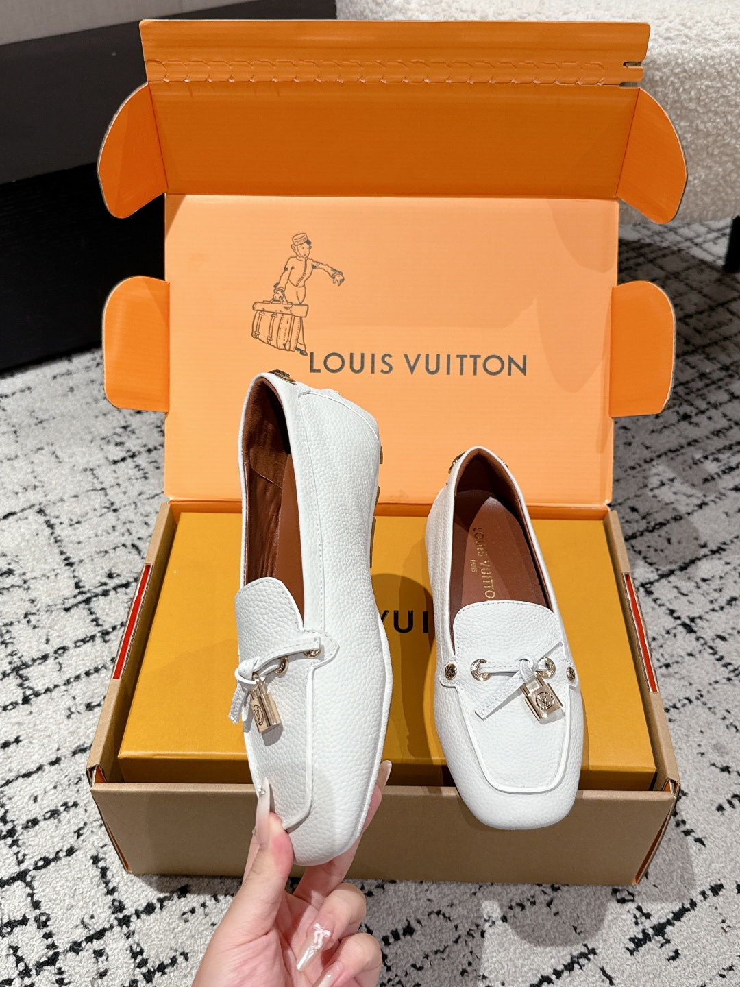 這款鞋子是AAAAA 1:1 質量(非常棒). 使用了和原版一模一樣的材料. 商標部分也保持了和路易威登/Louis Vuitton一樣. 圖片拍攝是實物鞋子拍攝, 您所收到的實物保證和我們圖片一模一樣.