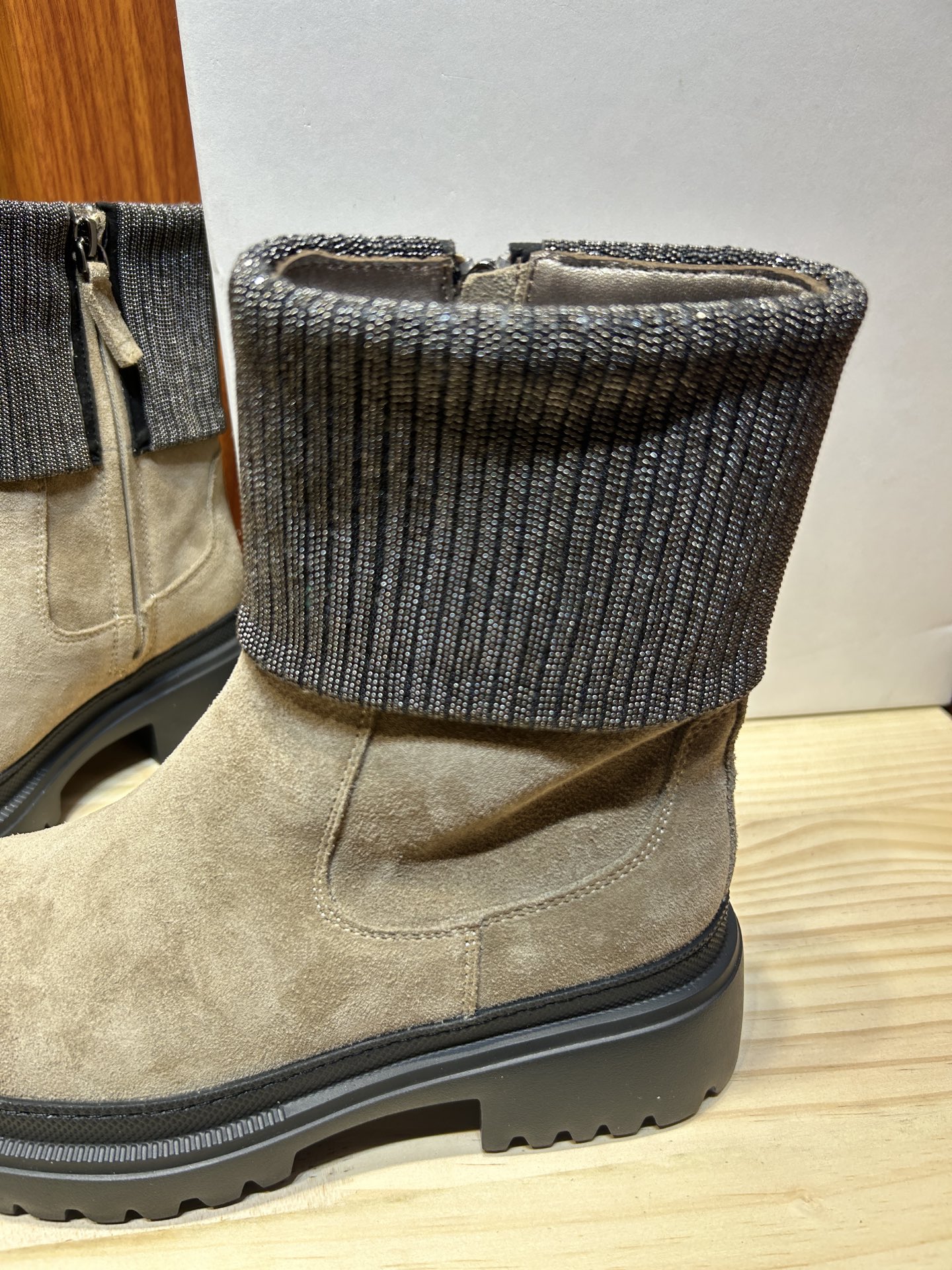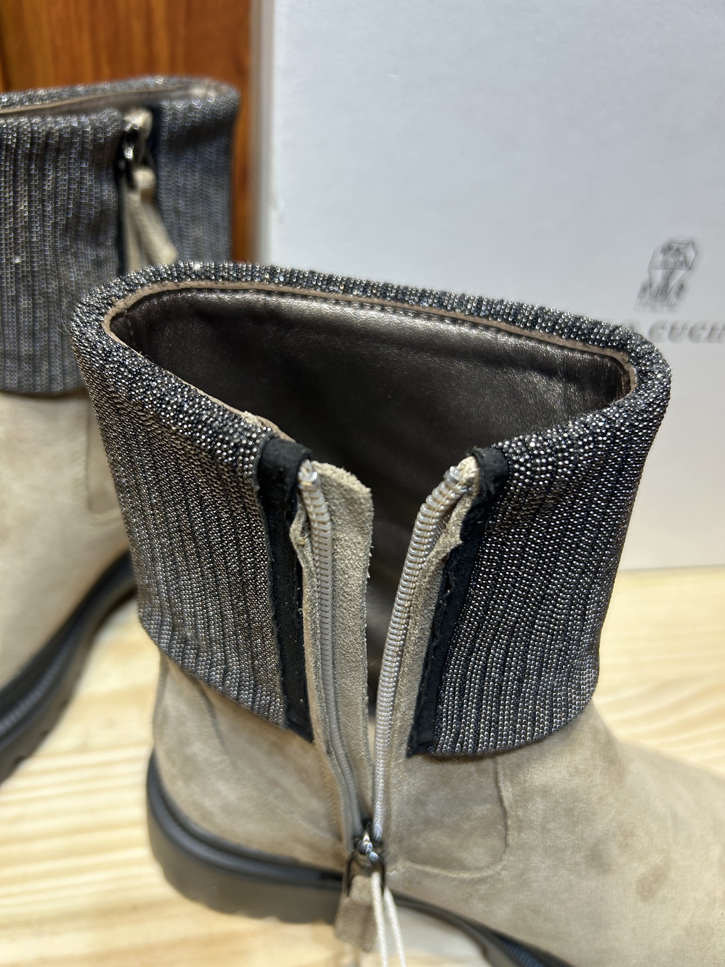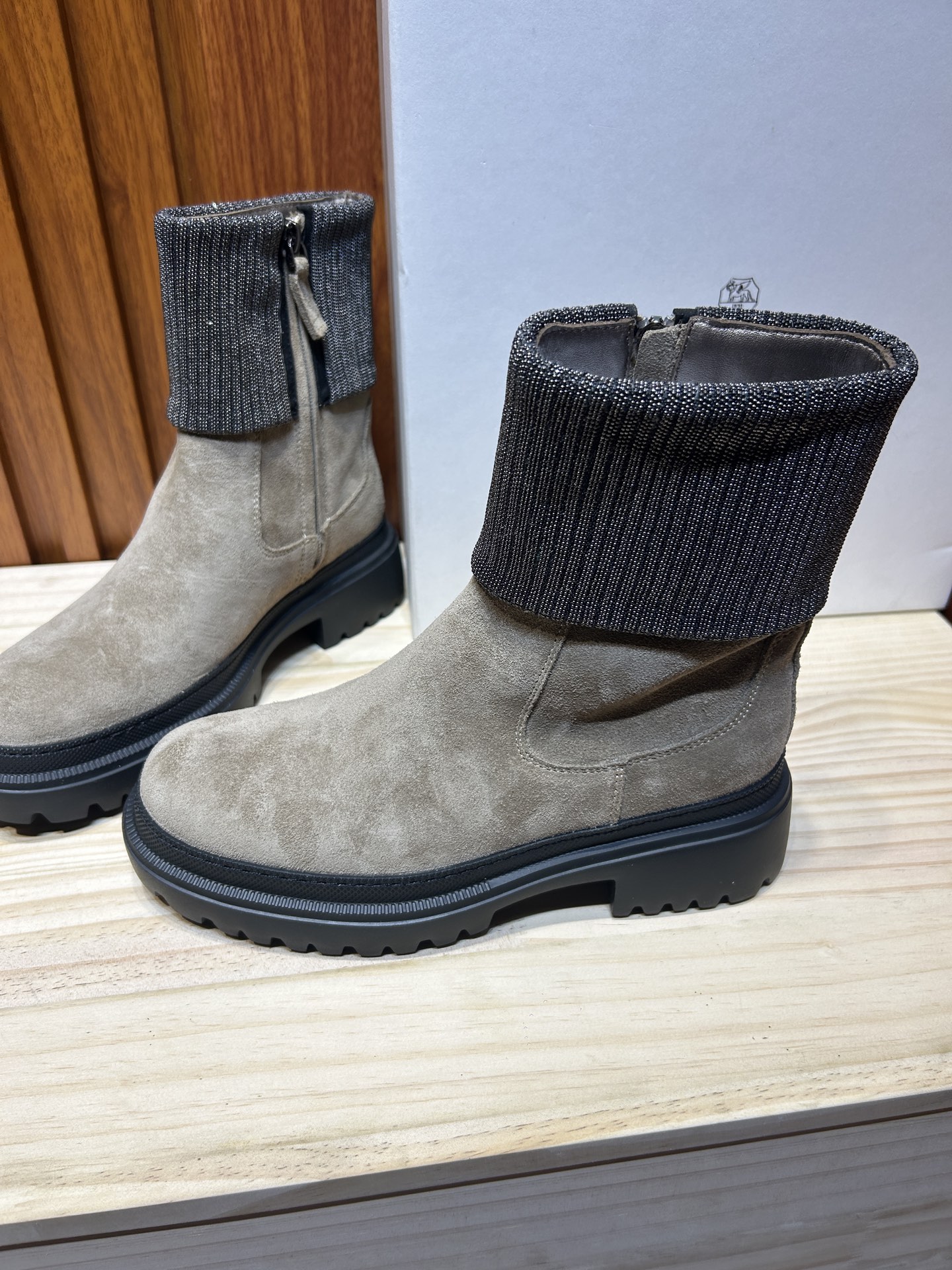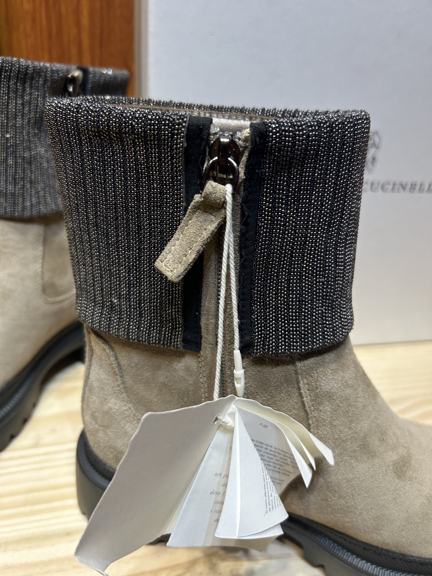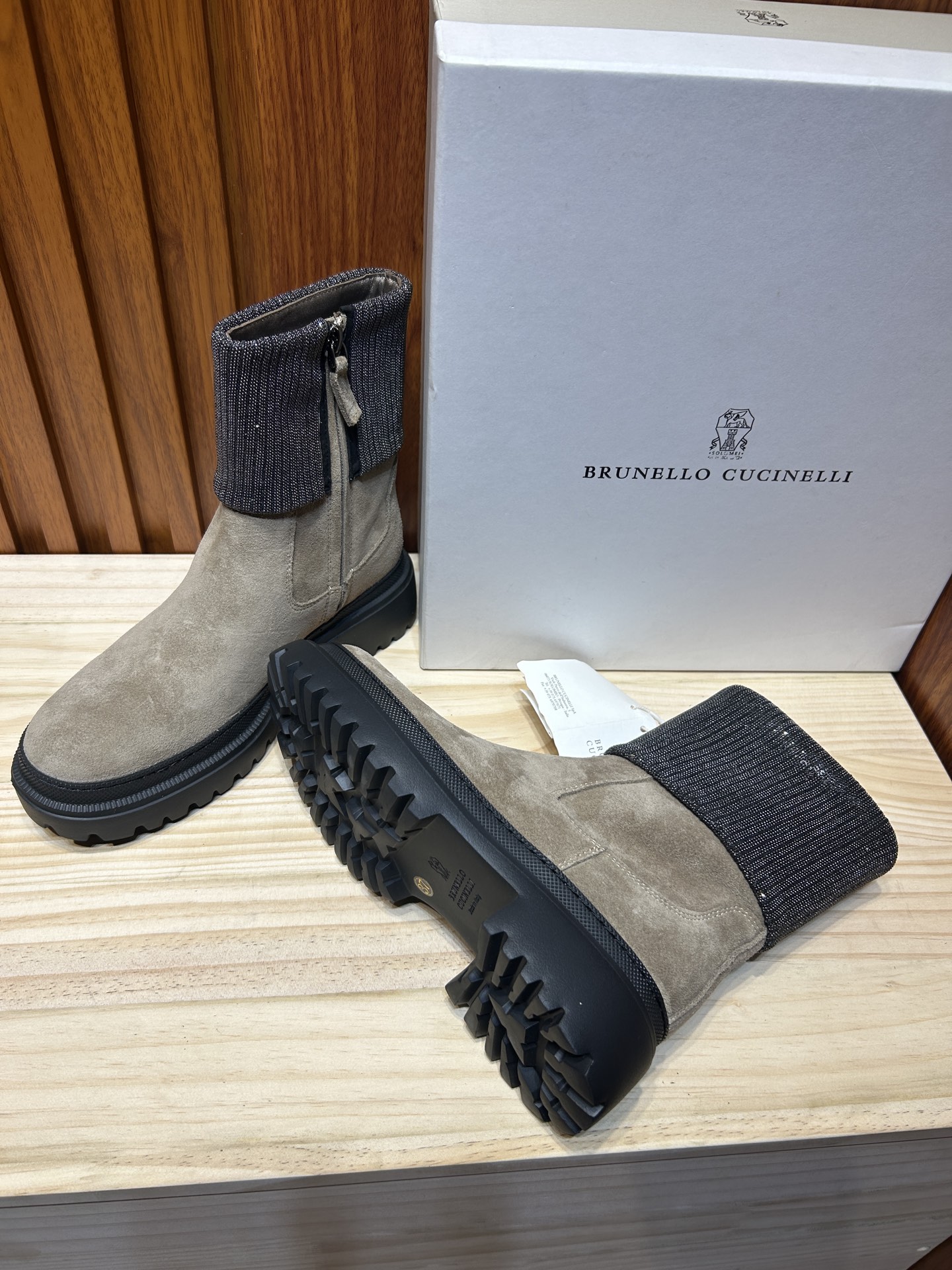 這款鞋子是AAAAA 1:1 質量(非常棒). 使用了和原版一模一樣的材料. 商標部分也保持了和Brunello Cucinelli一樣. 圖片拍攝是實物鞋子拍攝, 您所收到的實物保證和我們圖片一模一樣.