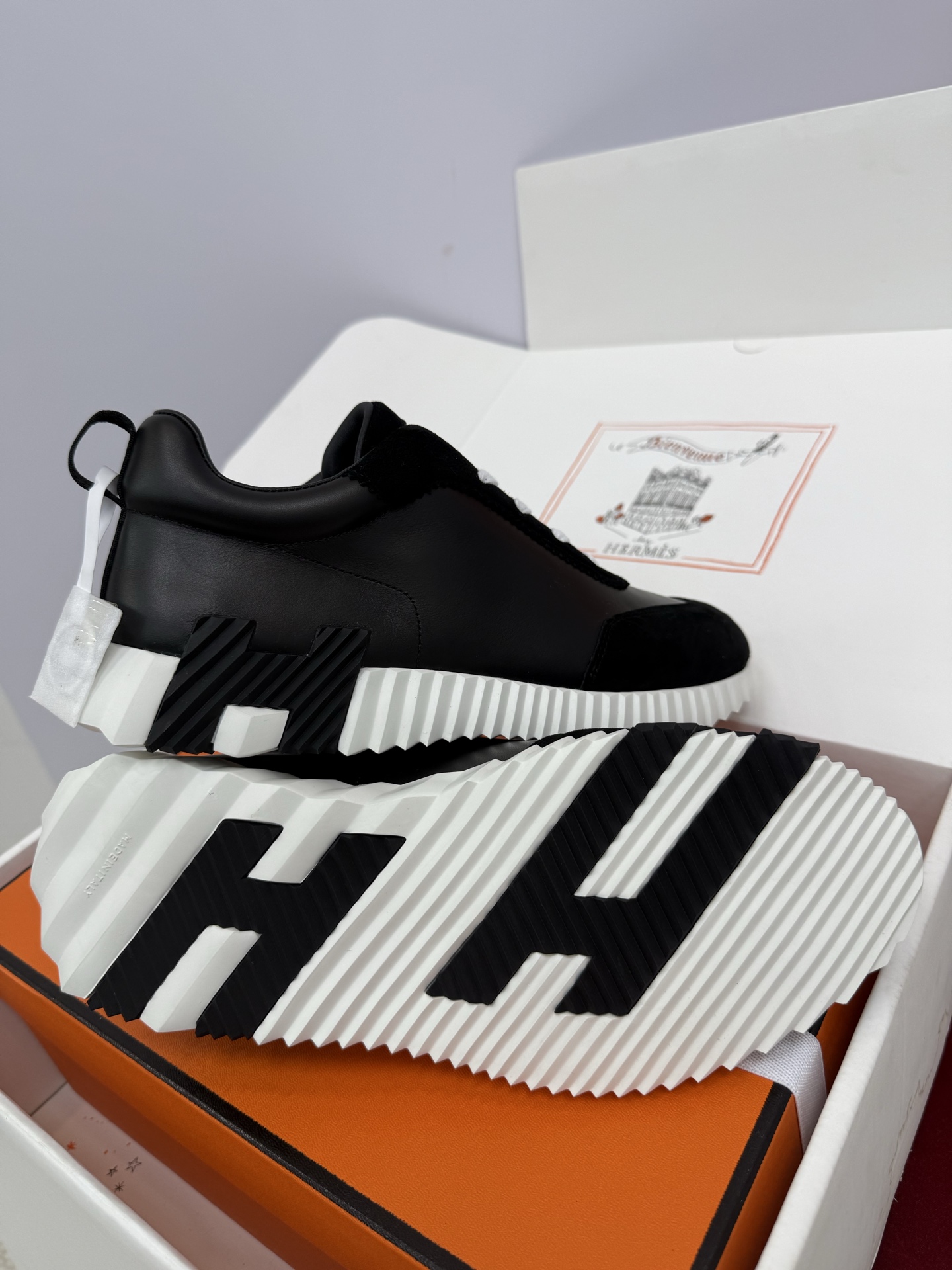 這款鞋子是AAAAA 1:1 質量(非常棒). 使用了和原版一模一樣的材料. 商標部分也保持了和愛馬仕/Hermes一樣. 圖片拍攝是實物鞋子拍攝, 您所收到的實物保證和我們圖片一模一樣.