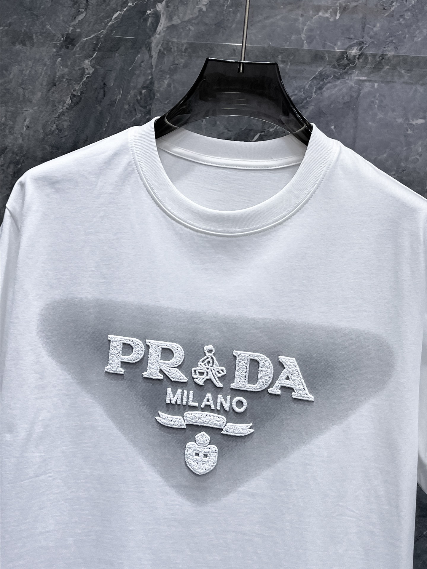 這款衣服是AAAAA 1:1 質量(非常棒). 使用了和原版一模一樣的材料. 商標部分也保持了和普拉達/Prada一樣. 圖片拍攝是實物衣服拍攝, 您所收到的實物保證和我們圖片一模一樣.