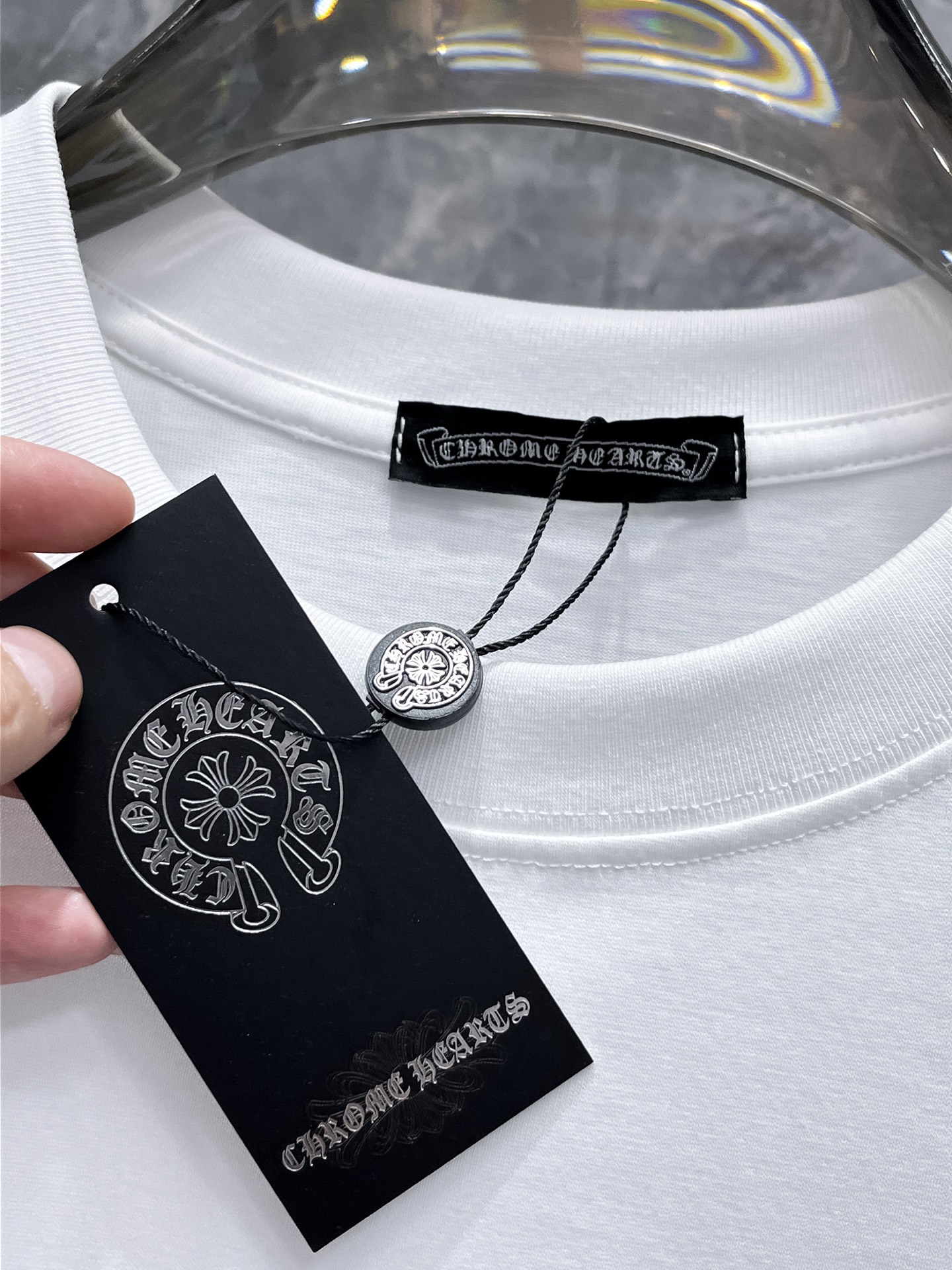 這款衣服是AAAAA 1:1 質量(非常棒). 使用了和原版一模一樣的材料. 商標部分也保持了和鉻心/Chrome Hearts一樣. 圖片拍攝是實物衣服拍攝, 您所收到的實物保證和我們圖片一模一樣.