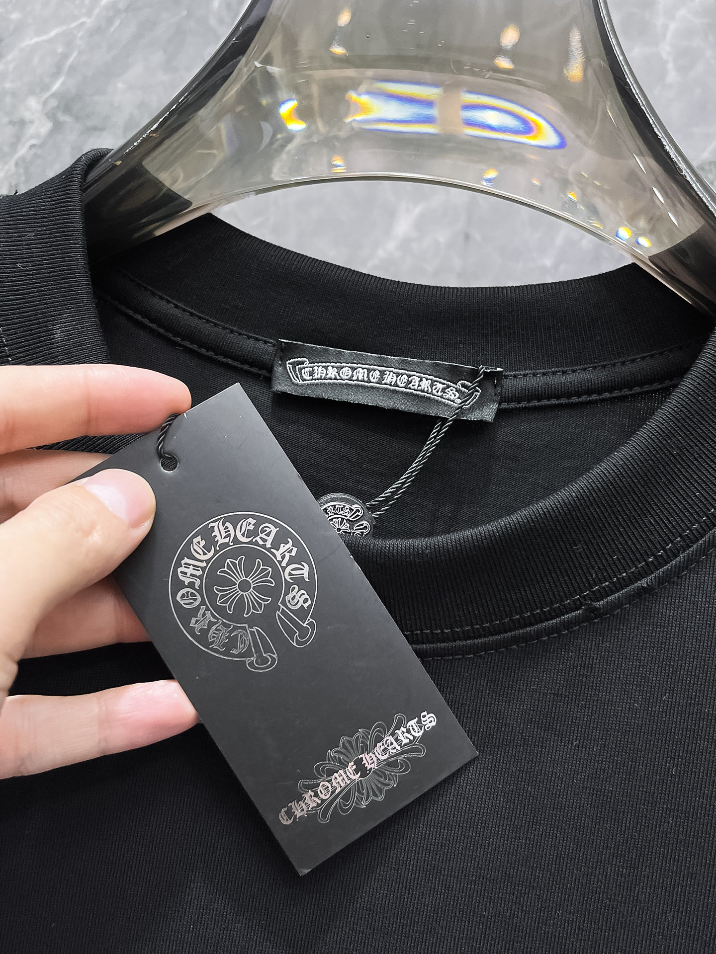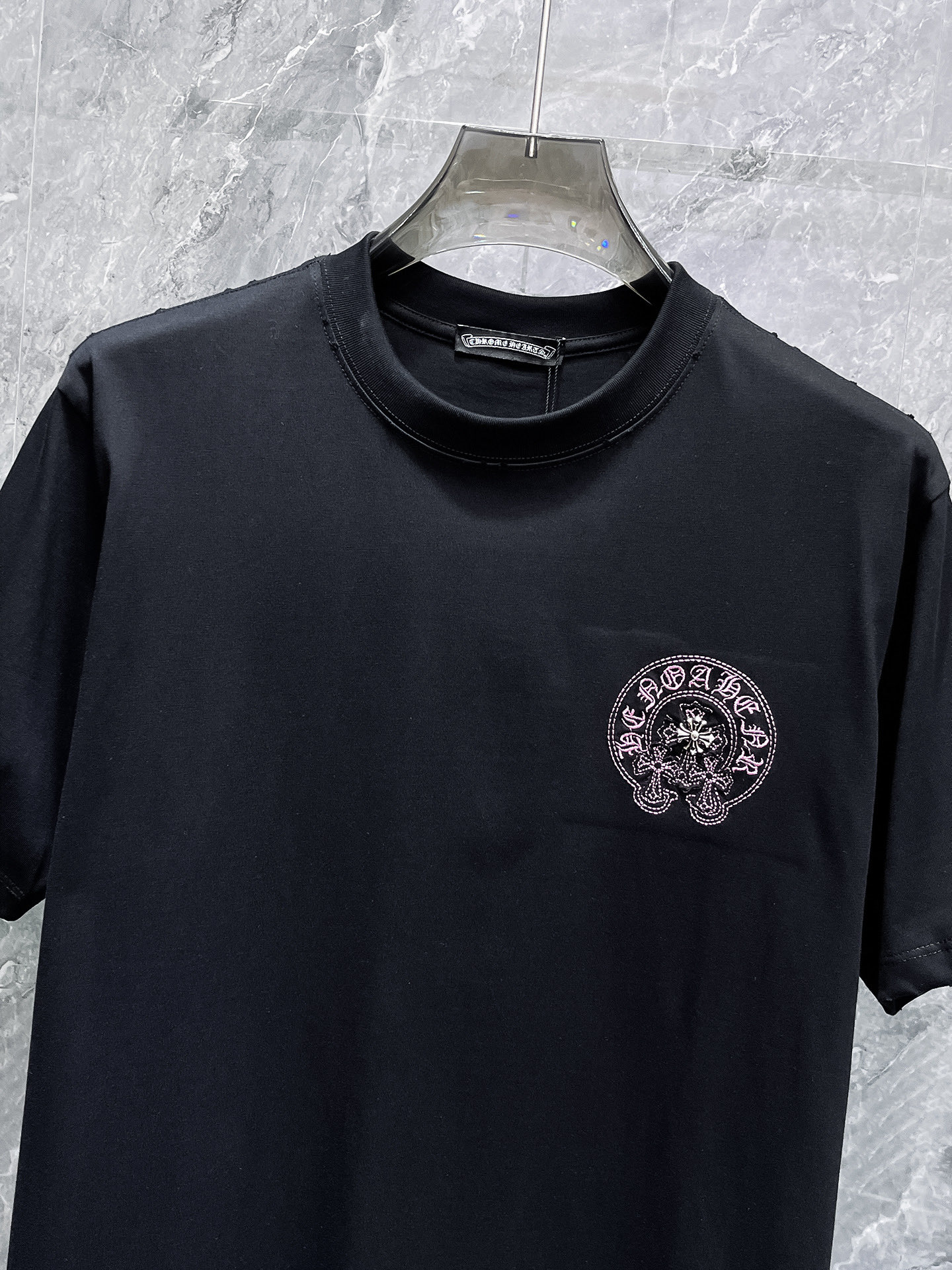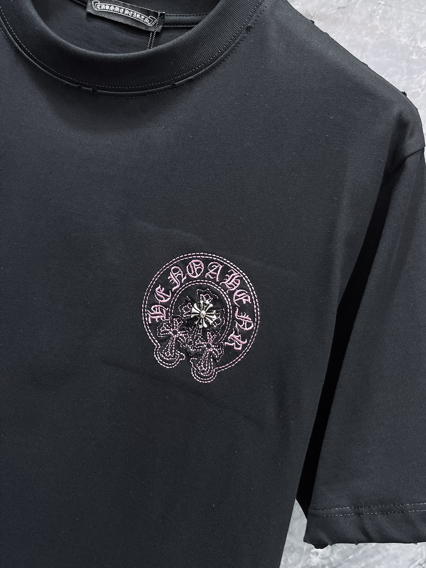 這款衣服是AAAAA 1:1 質量(非常棒). 使用了和原版一模一樣的材料. 商標部分也保持了和鉻心/Chrome Hearts一樣. 圖片拍攝是實物衣服拍攝, 您所收到的實物保證和我們圖片一模一樣.