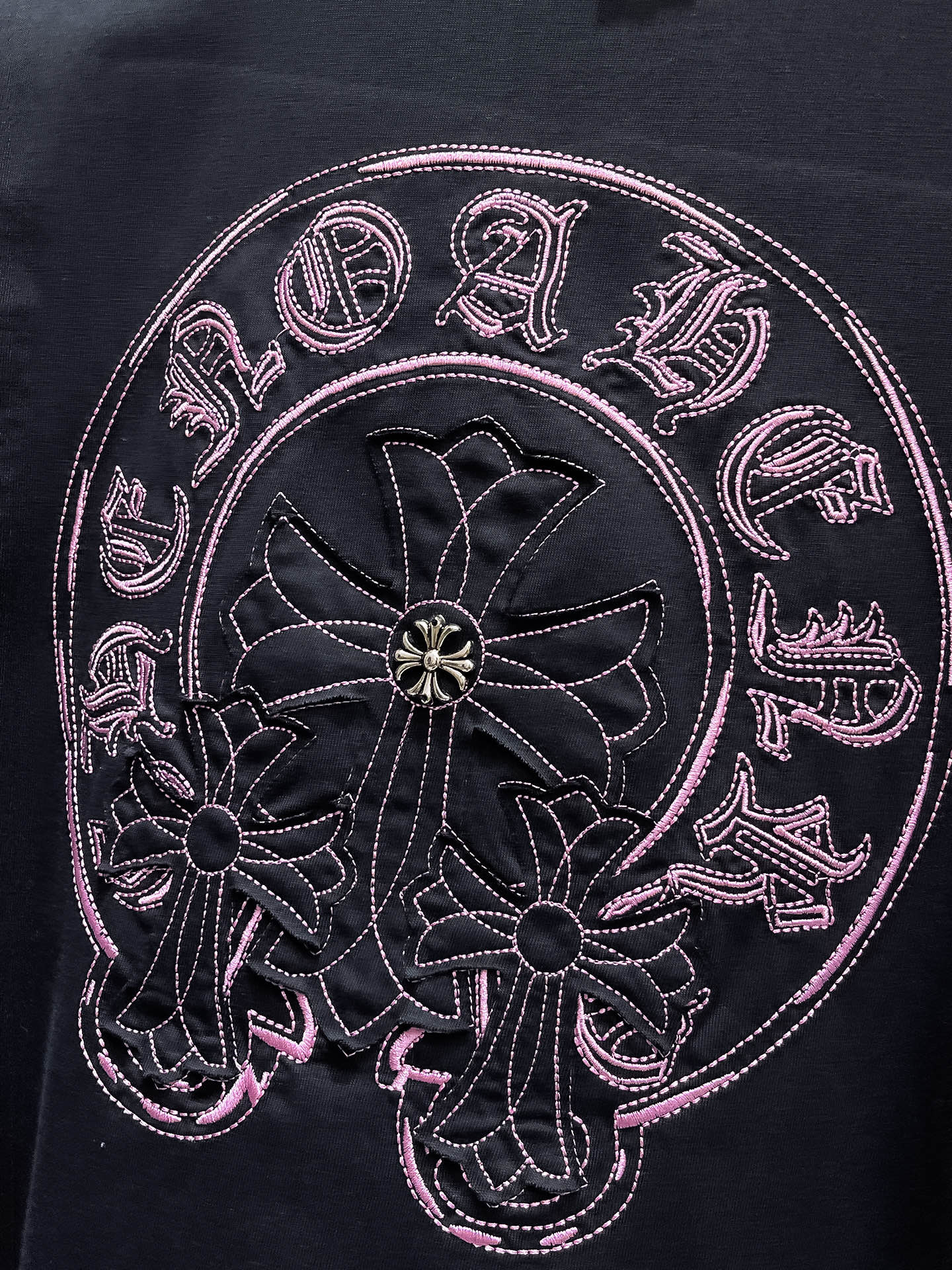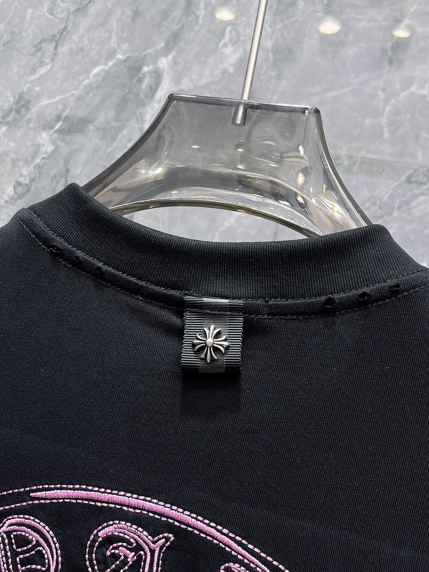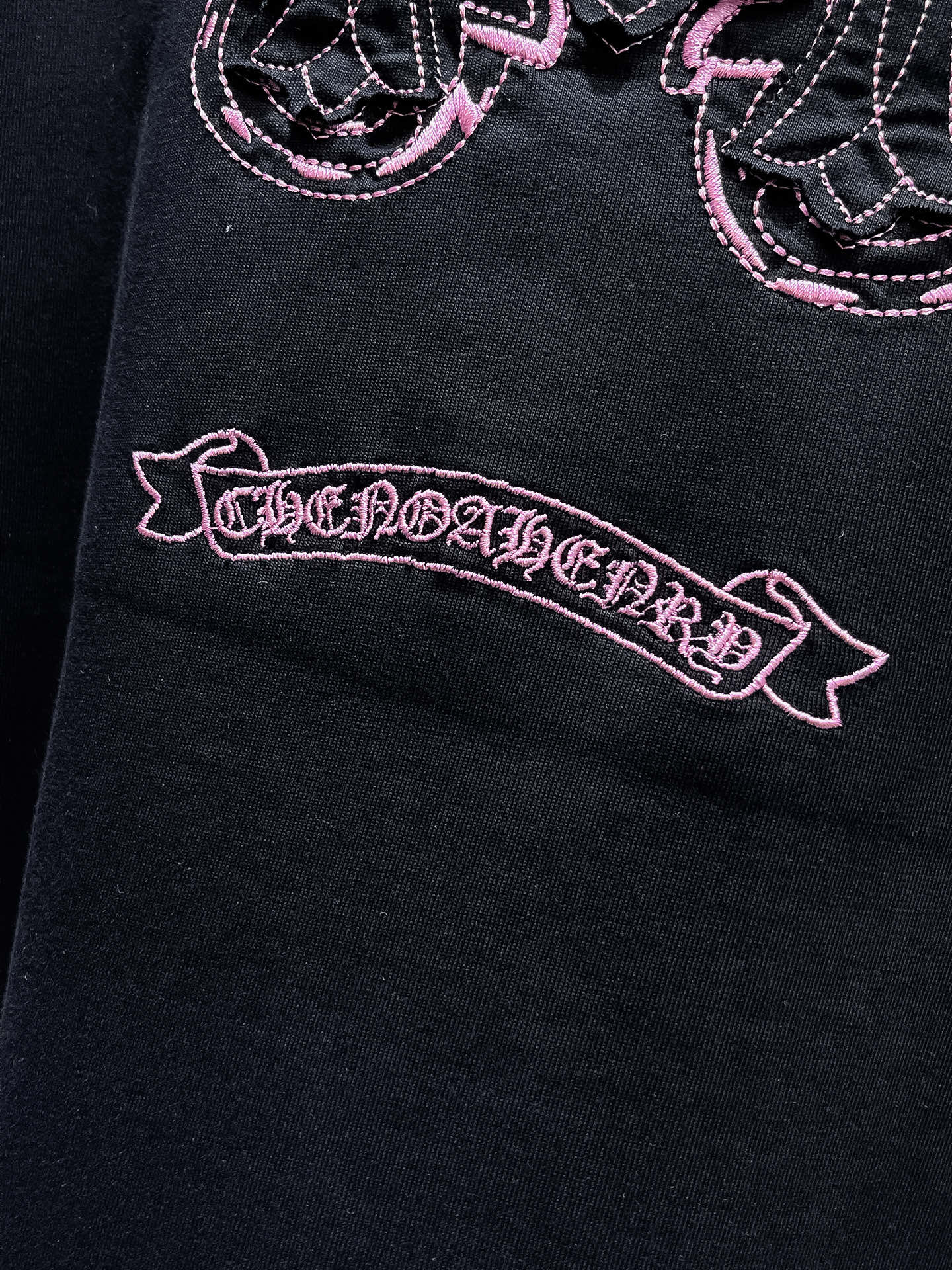 這款衣服是AAAAA 1:1 質量(非常棒). 使用了和原版一模一樣的材料. 商標部分也保持了和鉻心/Chrome Hearts一樣. 圖片拍攝是實物衣服拍攝, 您所收到的實物保證和我們圖片一模一樣.