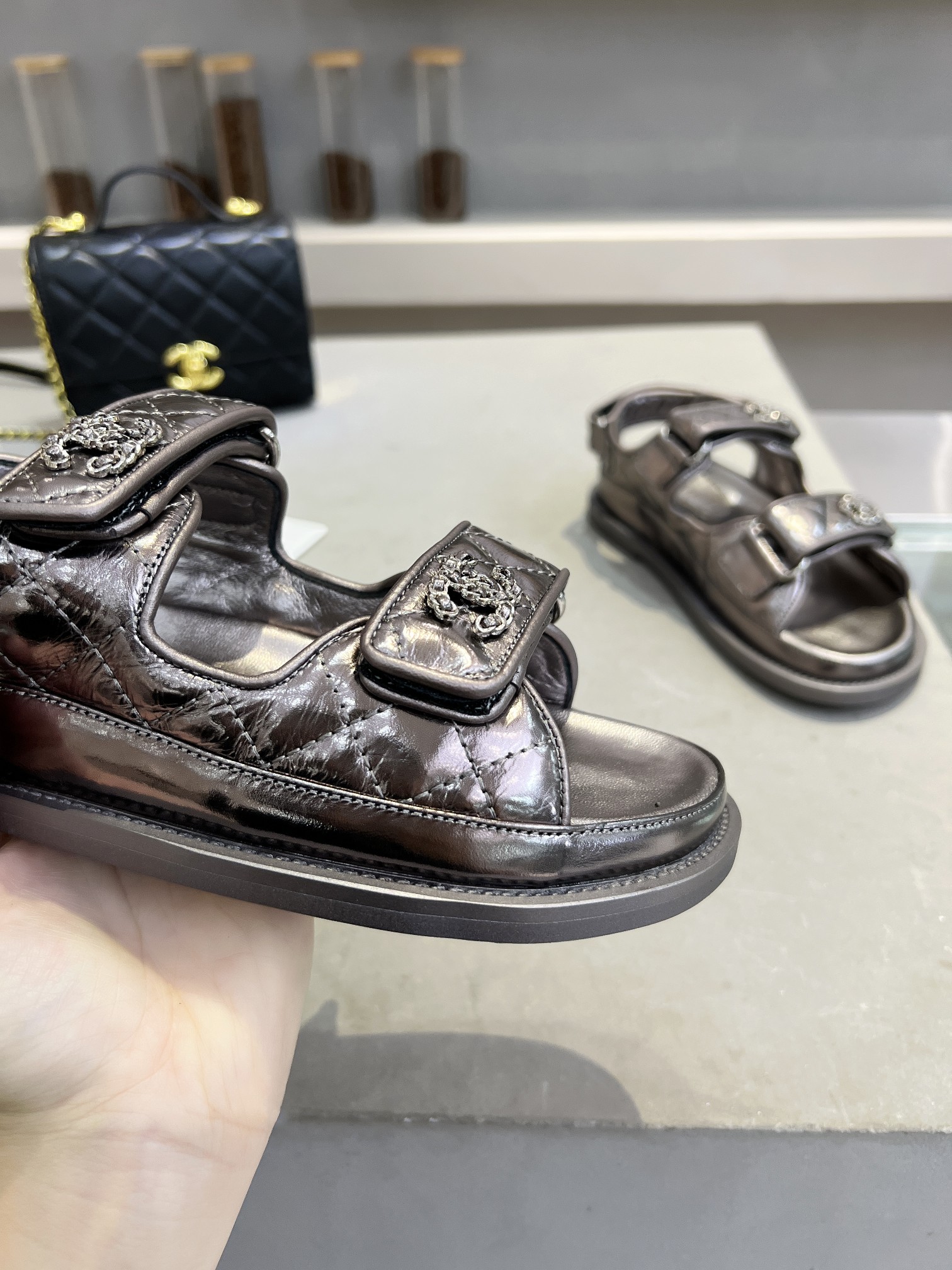 這款鞋子是AAAAA 1:1 質量(非常棒). 使用了和原版一模一樣的材料. 商標部分也保持了和香奈兒/Chanel一樣. 圖片拍攝是實物鞋子拍攝, 您所收到的實物保證和我們圖片一模一樣.