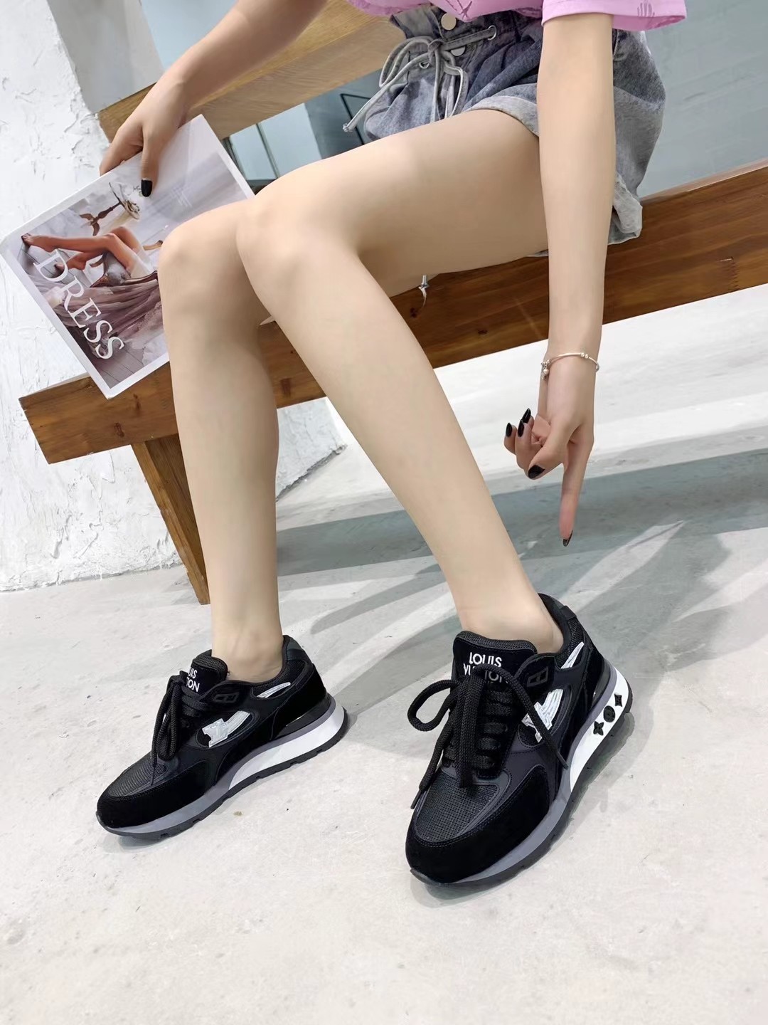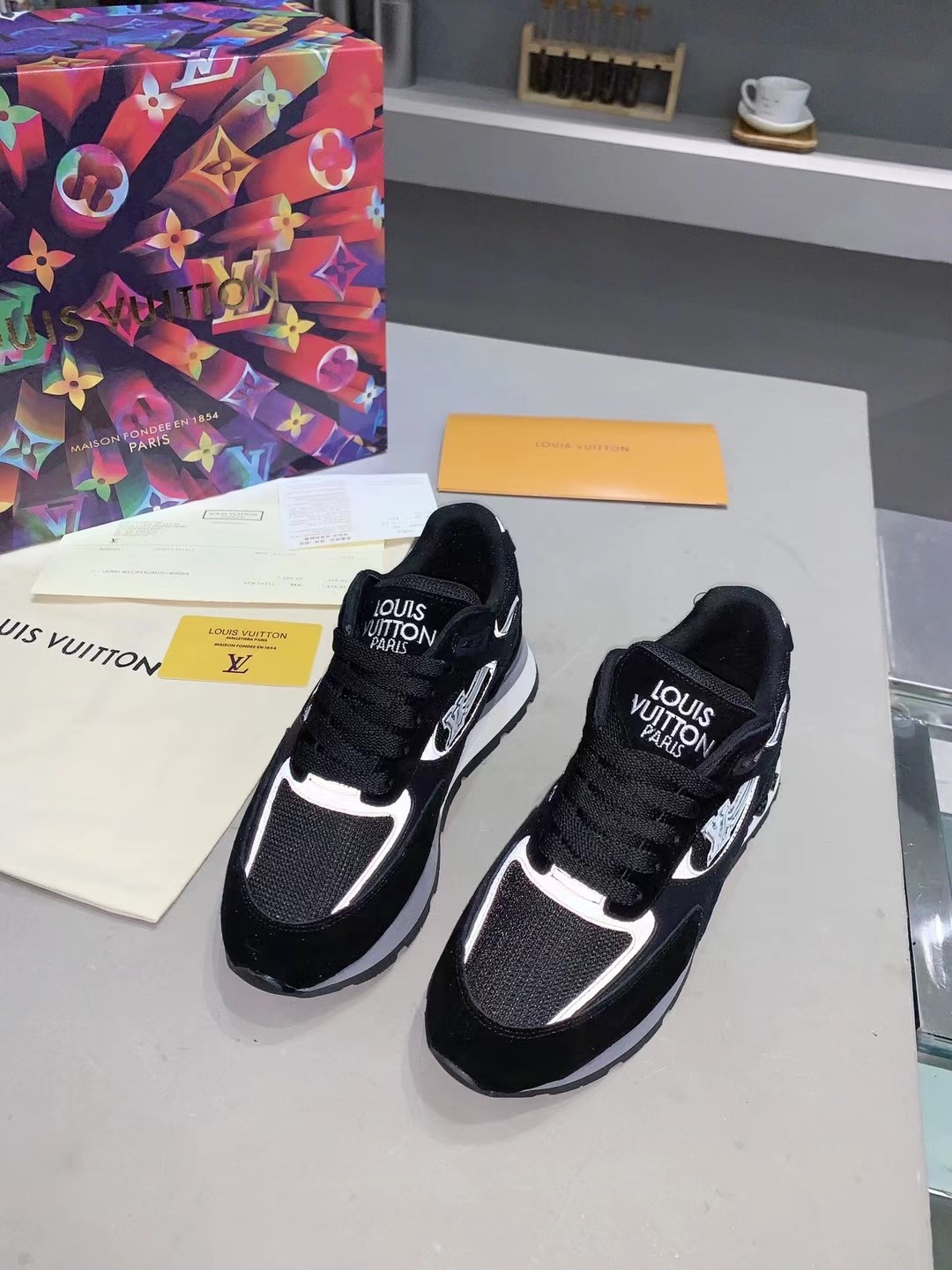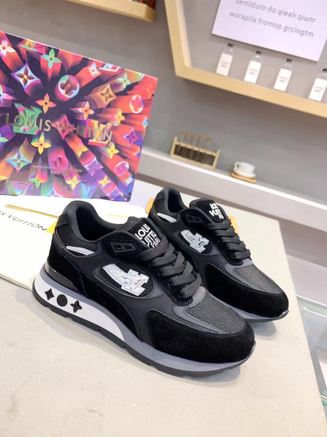 這款鞋子是AAAAA 1:1 質量(非常棒). 使用了和原版一模一樣的材料. 商標部分也保持了和路易威登/Louis Vuitton一樣. 圖片拍攝是實物鞋子拍攝, 您所收到的實物保證和我們圖片一模一樣.