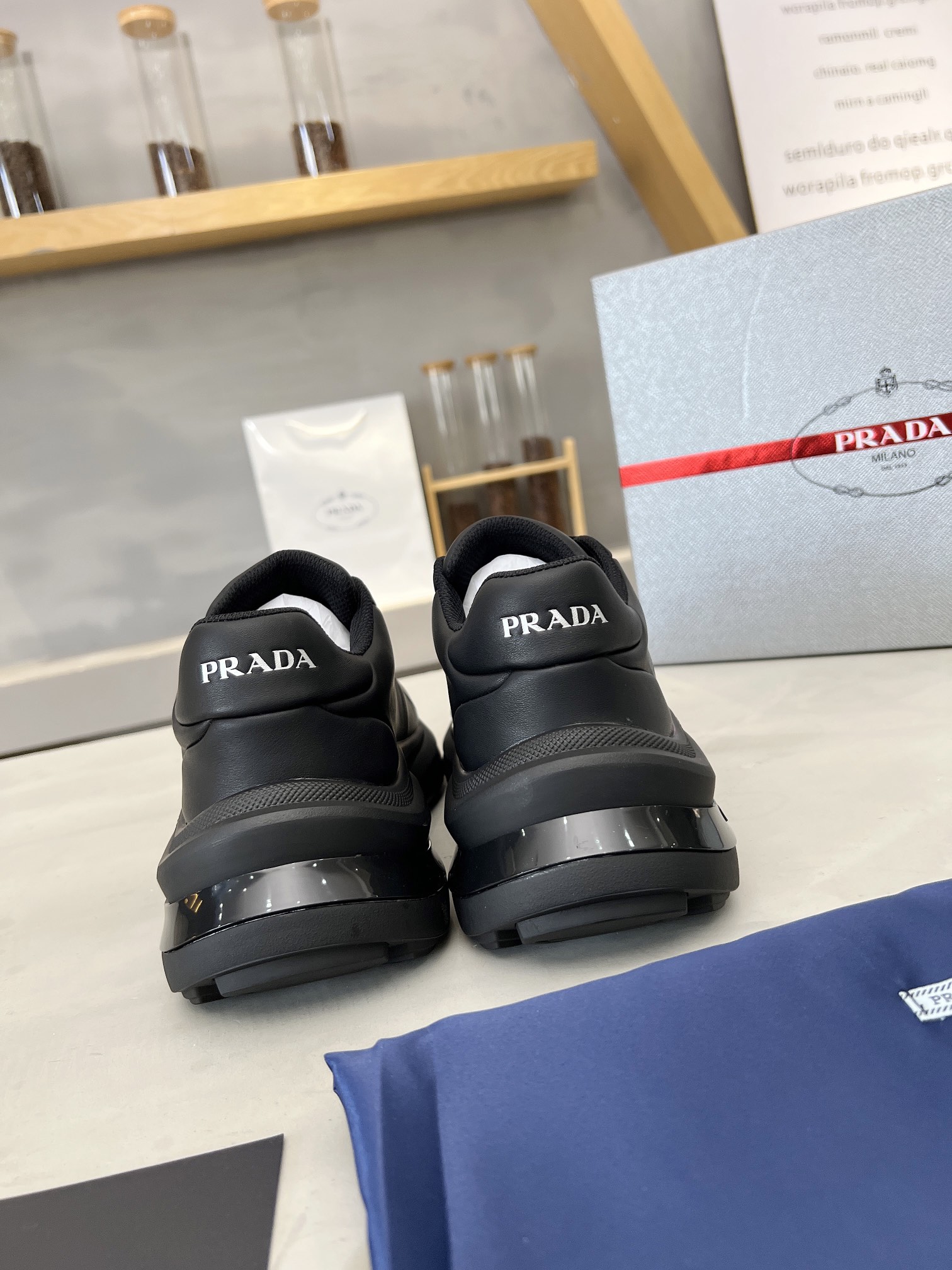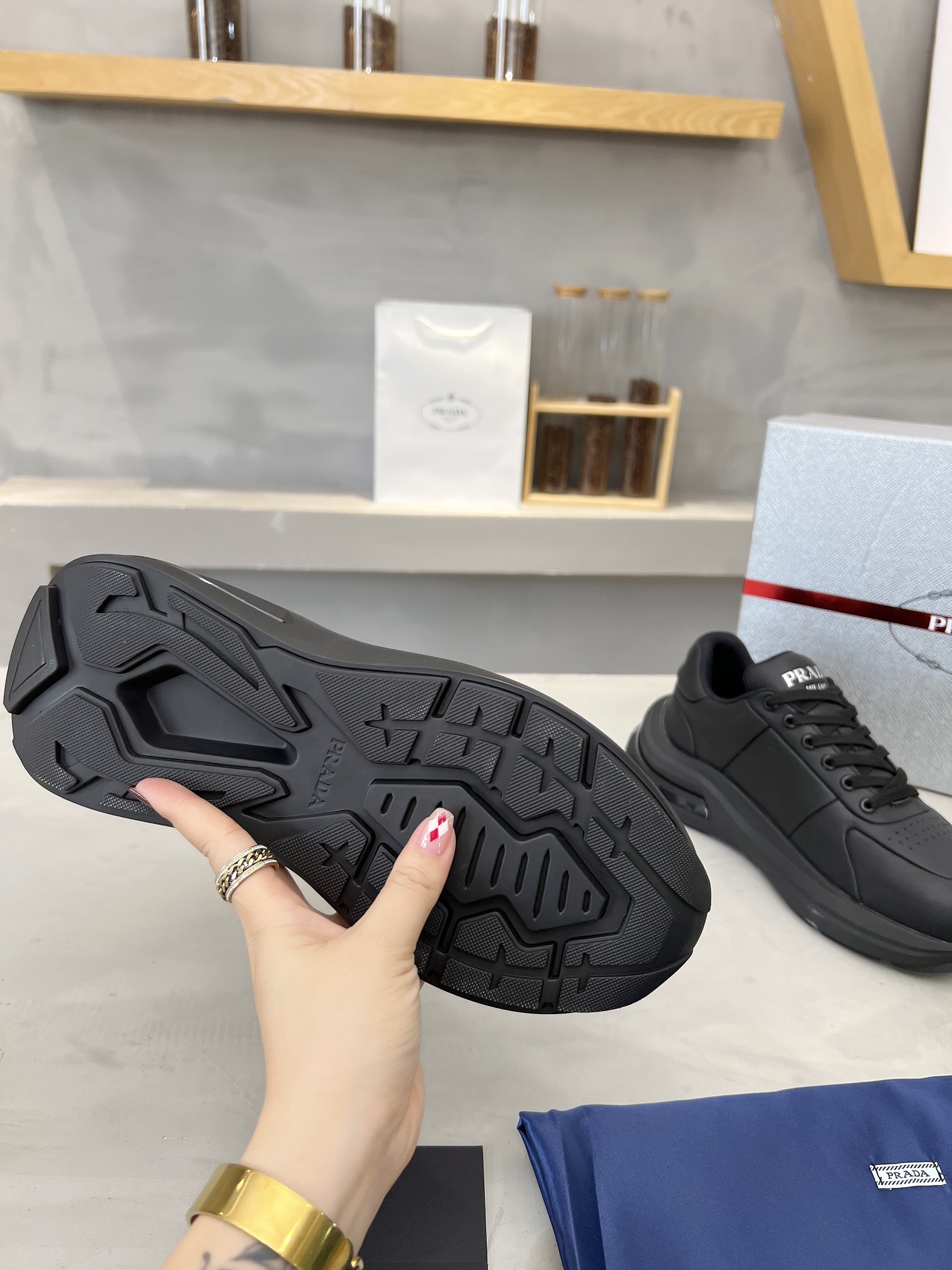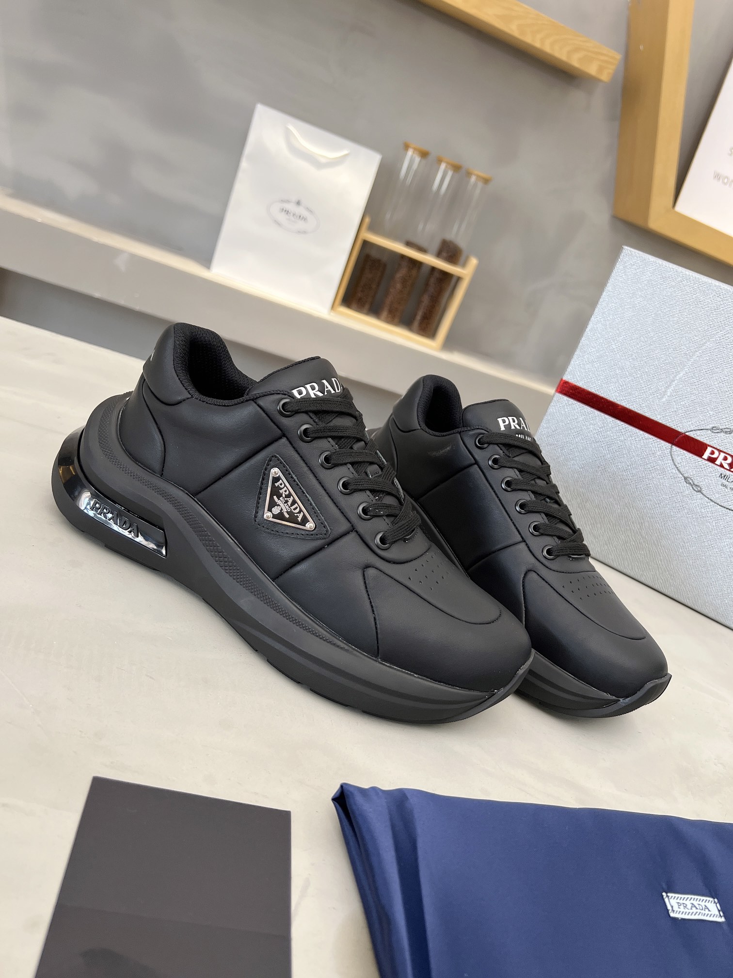 這款鞋子是AAAAA 1:1 質量(非常棒). 使用了和原版一模一樣的材料. 商標部分也保持了和普拉達/Prada一樣. 圖片拍攝是實物鞋子拍攝, 您所收到的實物保證和我們圖片一模一樣.