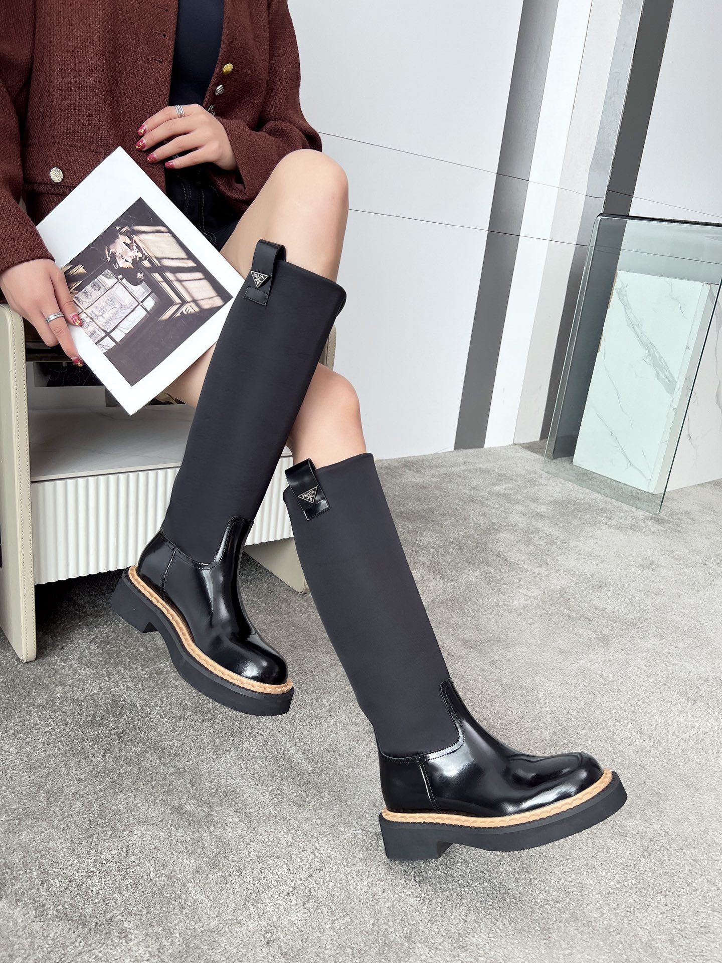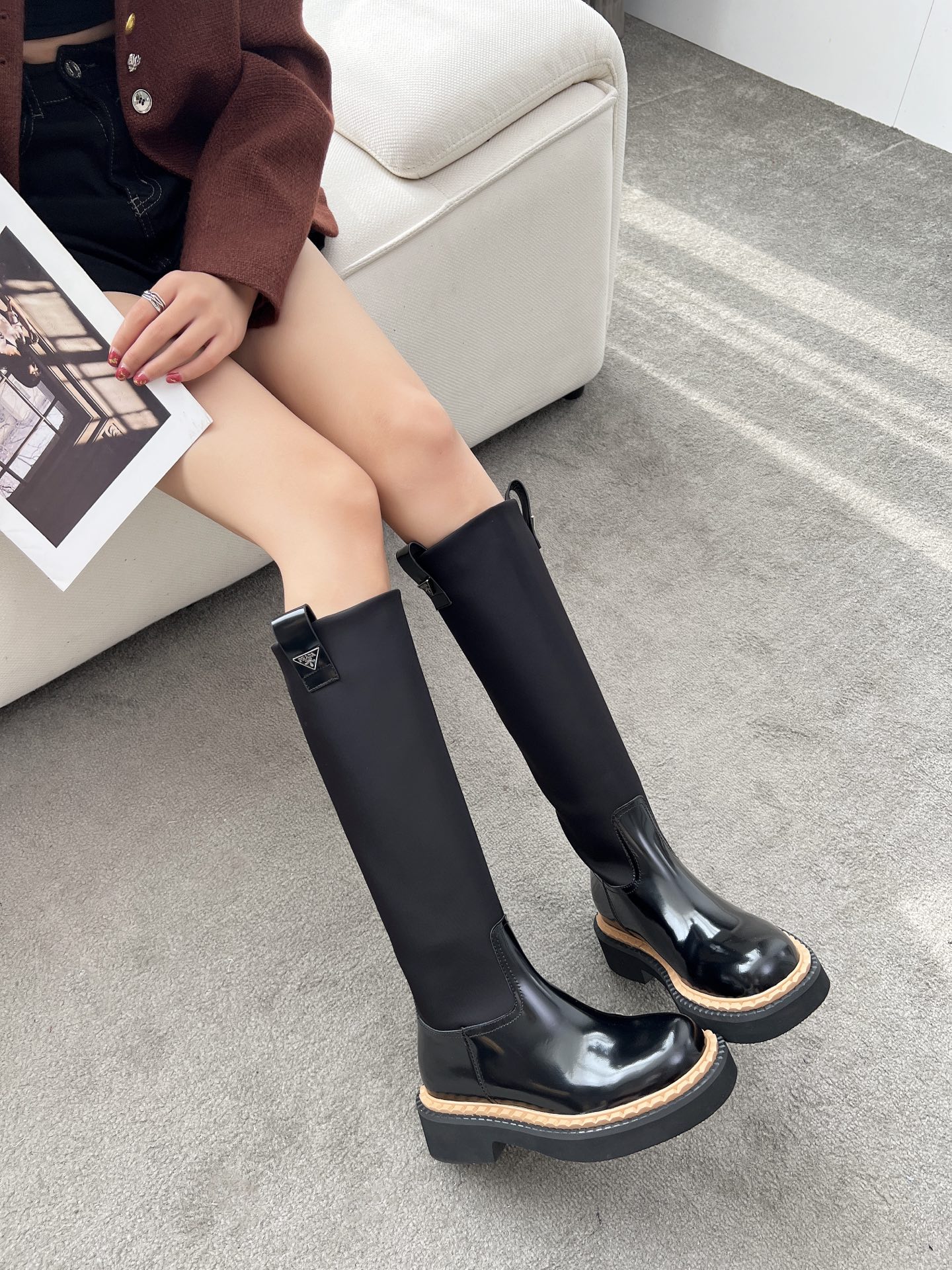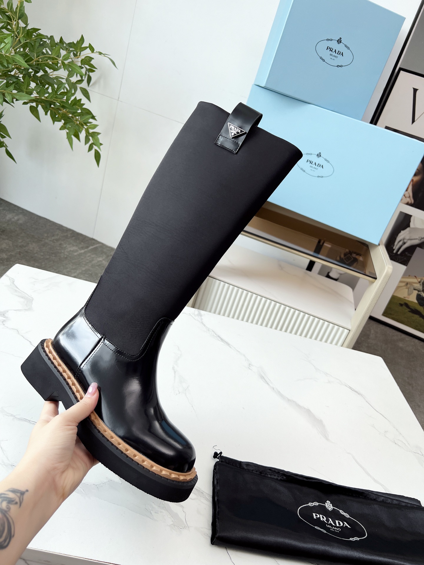 這款鞋子是AAAAA 1:1 質量(非常棒). 使用了和原版一模一樣的材料. 商標部分也保持了和普拉達/Prada一樣. 圖片拍攝是實物鞋子拍攝, 您所收到的實物保證和我們圖片一模一樣.