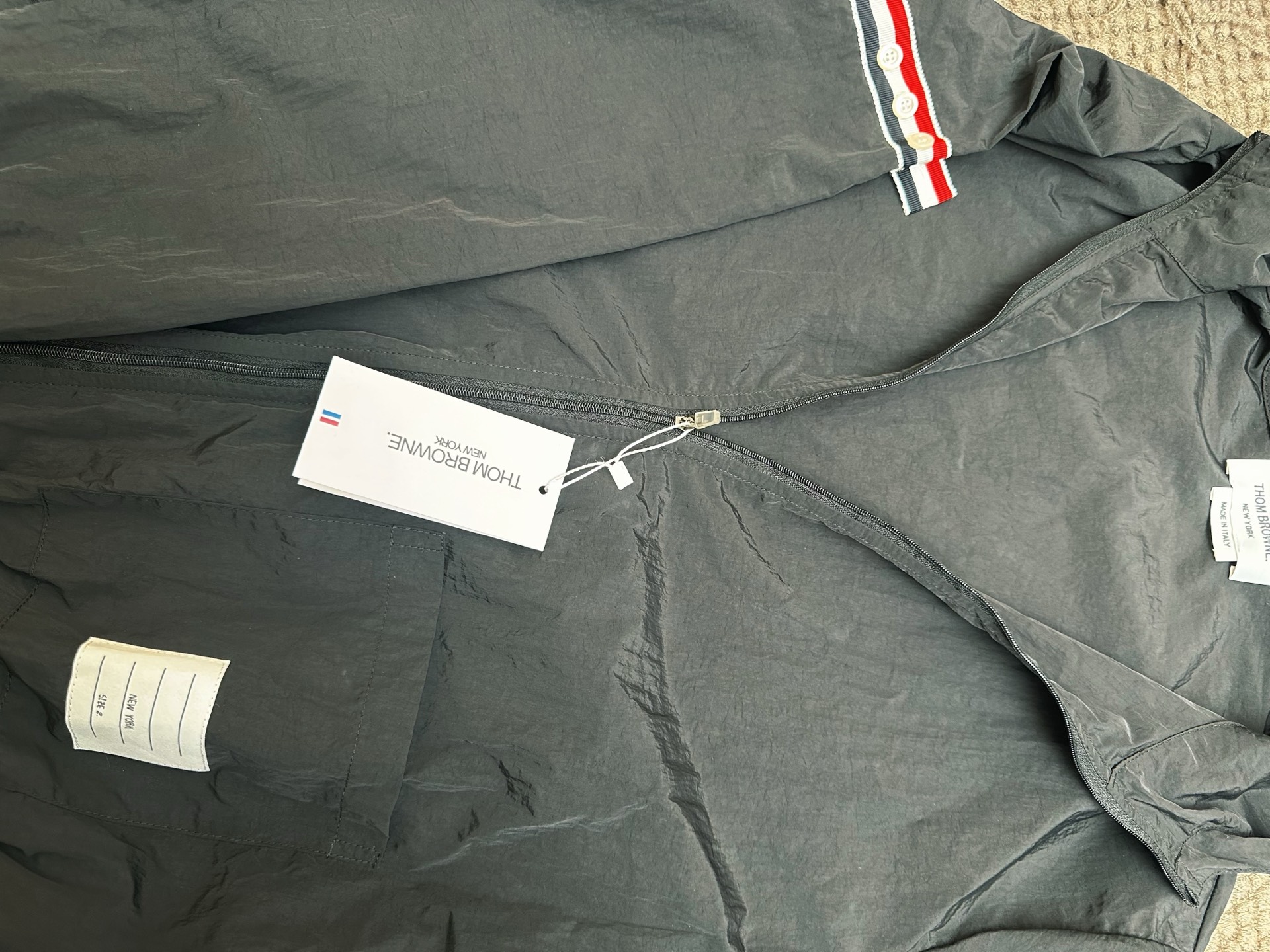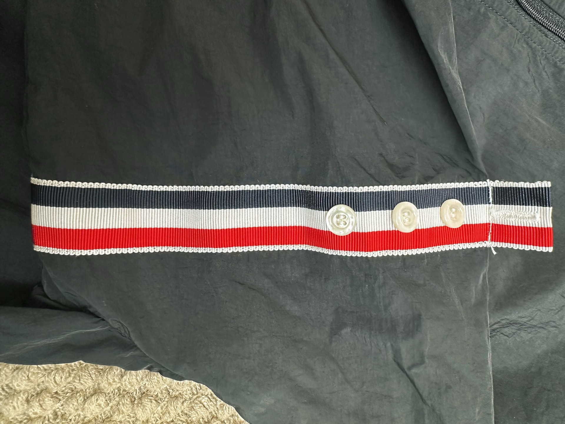 這款衣服是AAAAA 1:1 質量(非常棒). 使用了和原版一模一樣的材料. 商標部分也保持了和湯姆布朗/Thom Browne一樣. 圖片拍攝是實物衣服拍攝, 您所收到的實物保證和我們圖片一模一樣.