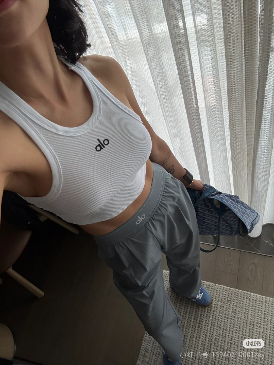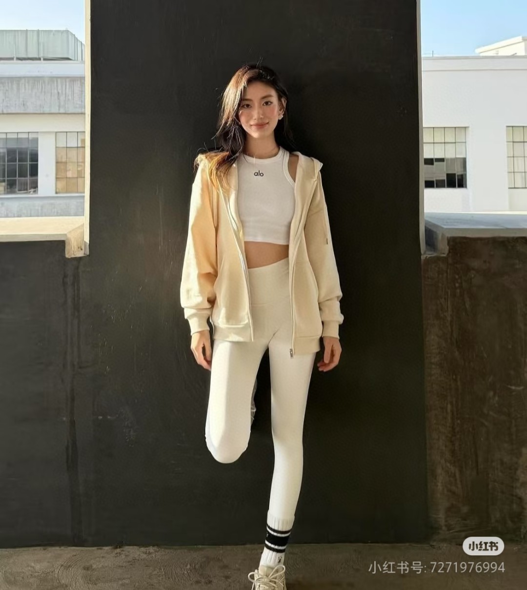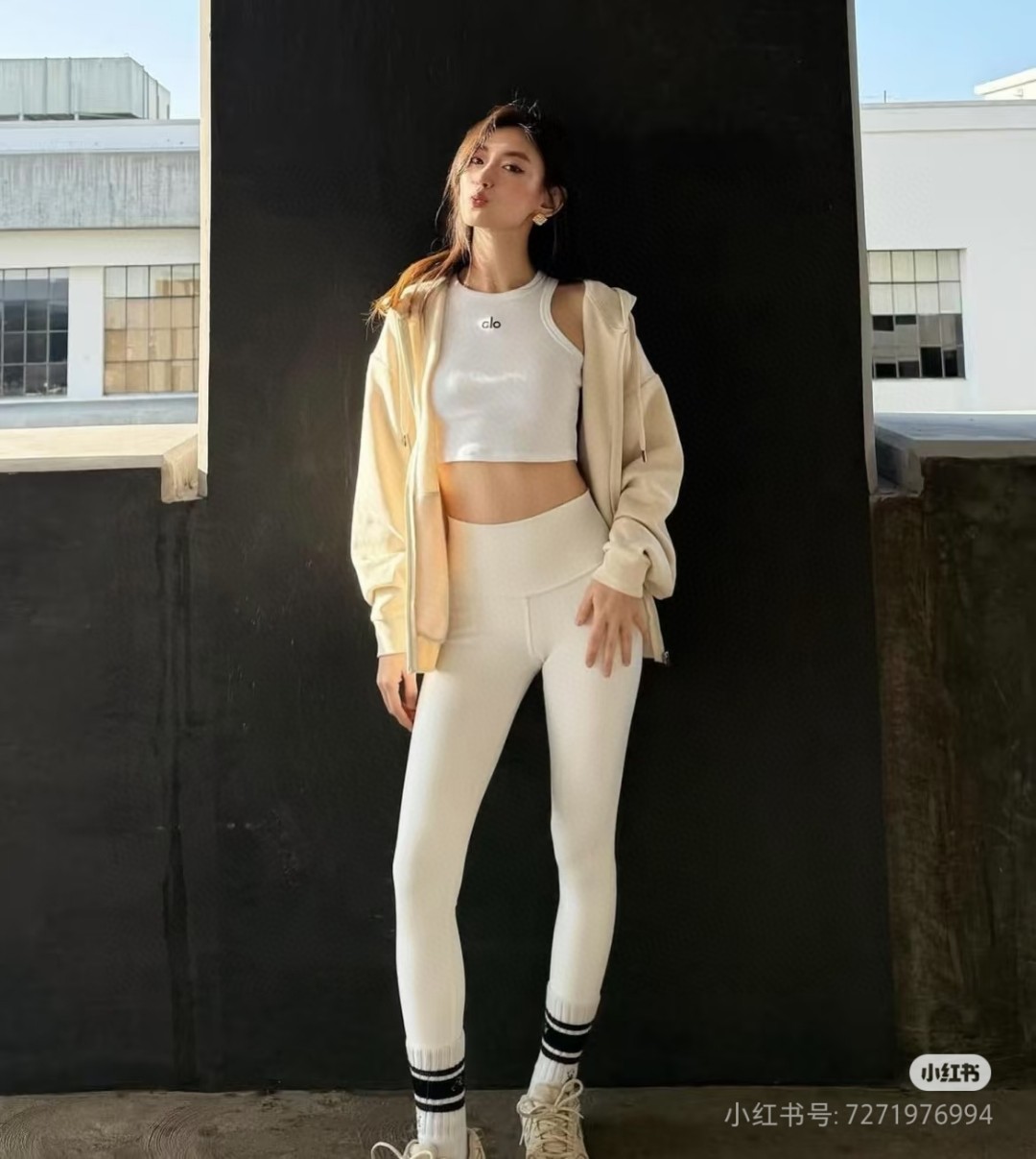 這款衣服是AAAAA 1:1 質量(非常棒). 使用了和原版一模一樣的材料. 商標部分也保持了和Alo Yoga一樣. 圖片拍攝是實物衣服拍攝, 您所收到的實物保證和我們圖片一模一樣.
