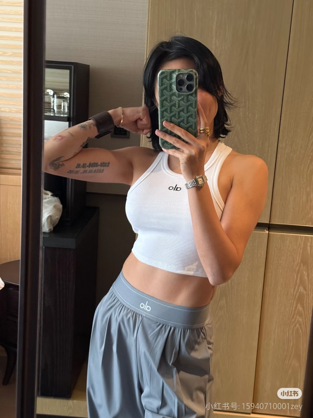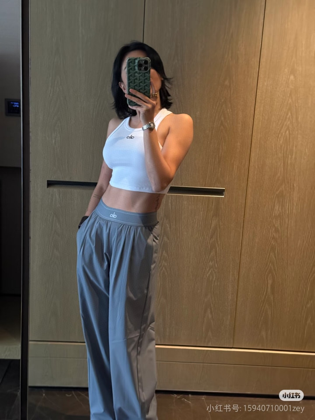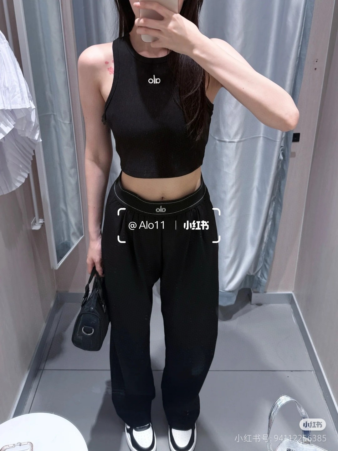 這款衣服是AAAAA 1:1 質量(非常棒). 使用了和原版一模一樣的材料. 商標部分也保持了和Alo Yoga一樣. 圖片拍攝是實物衣服拍攝, 您所收到的實物保證和我們圖片一模一樣.