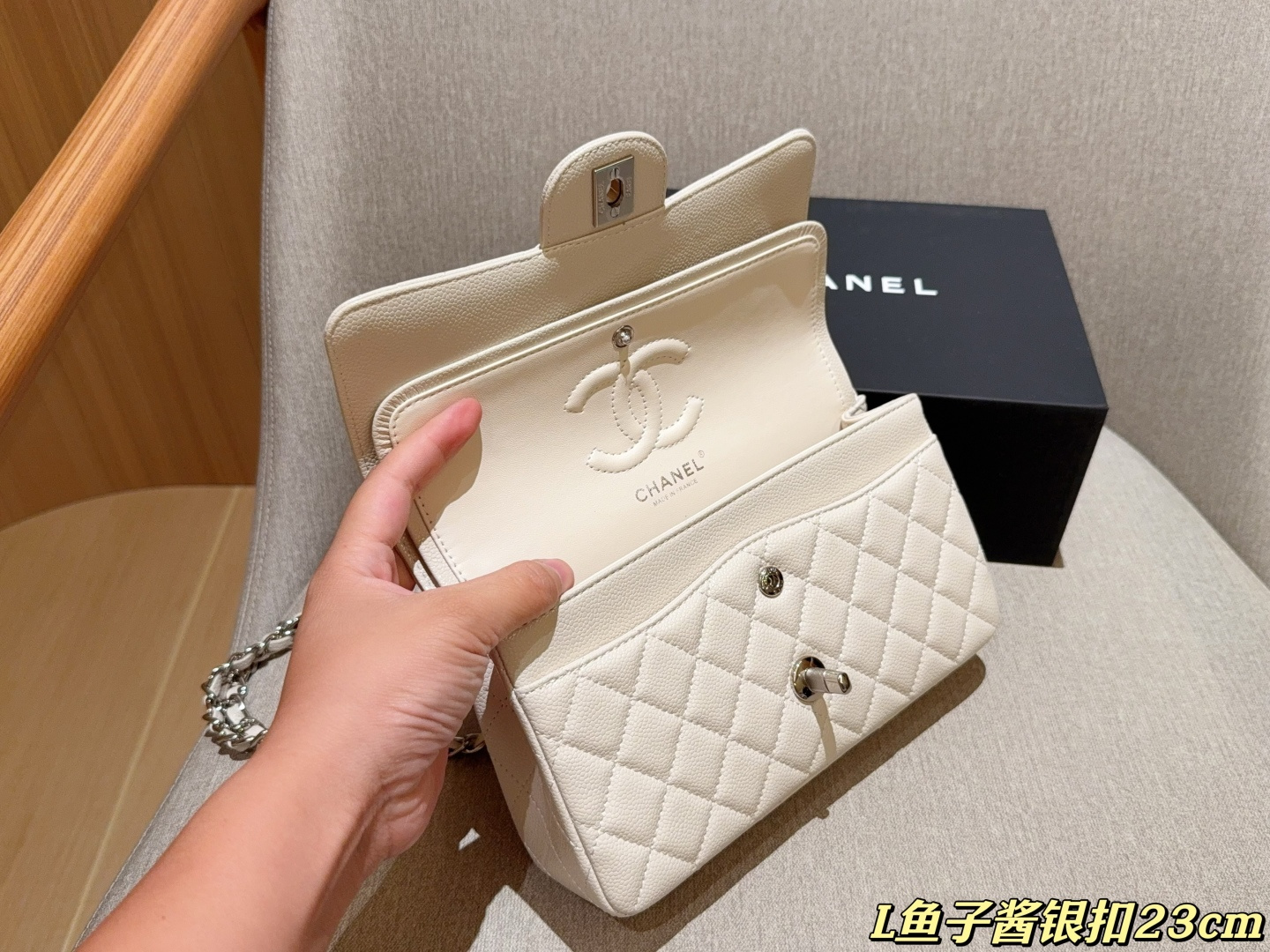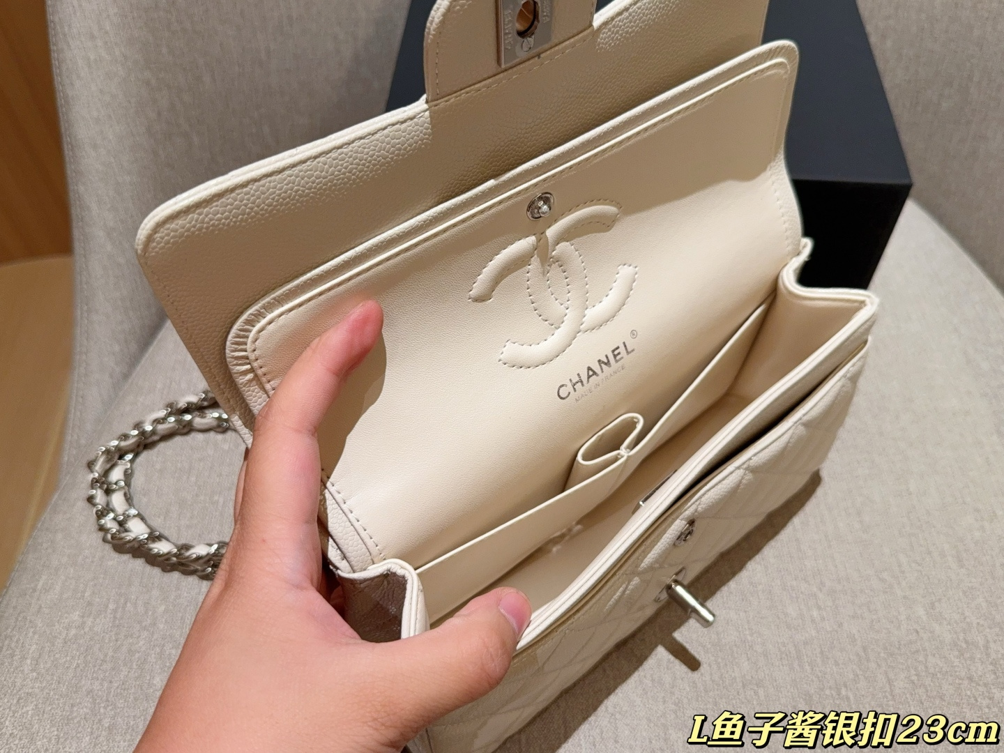 這款包包是AAAAA 1:1 質量(非常棒). 使用了和原版一模一樣的材料. 商標部分也保持了和香奈兒/Chanel一樣. 圖片拍攝是實物包包拍攝, 您所收到的實物保證和我們圖片一模一樣.