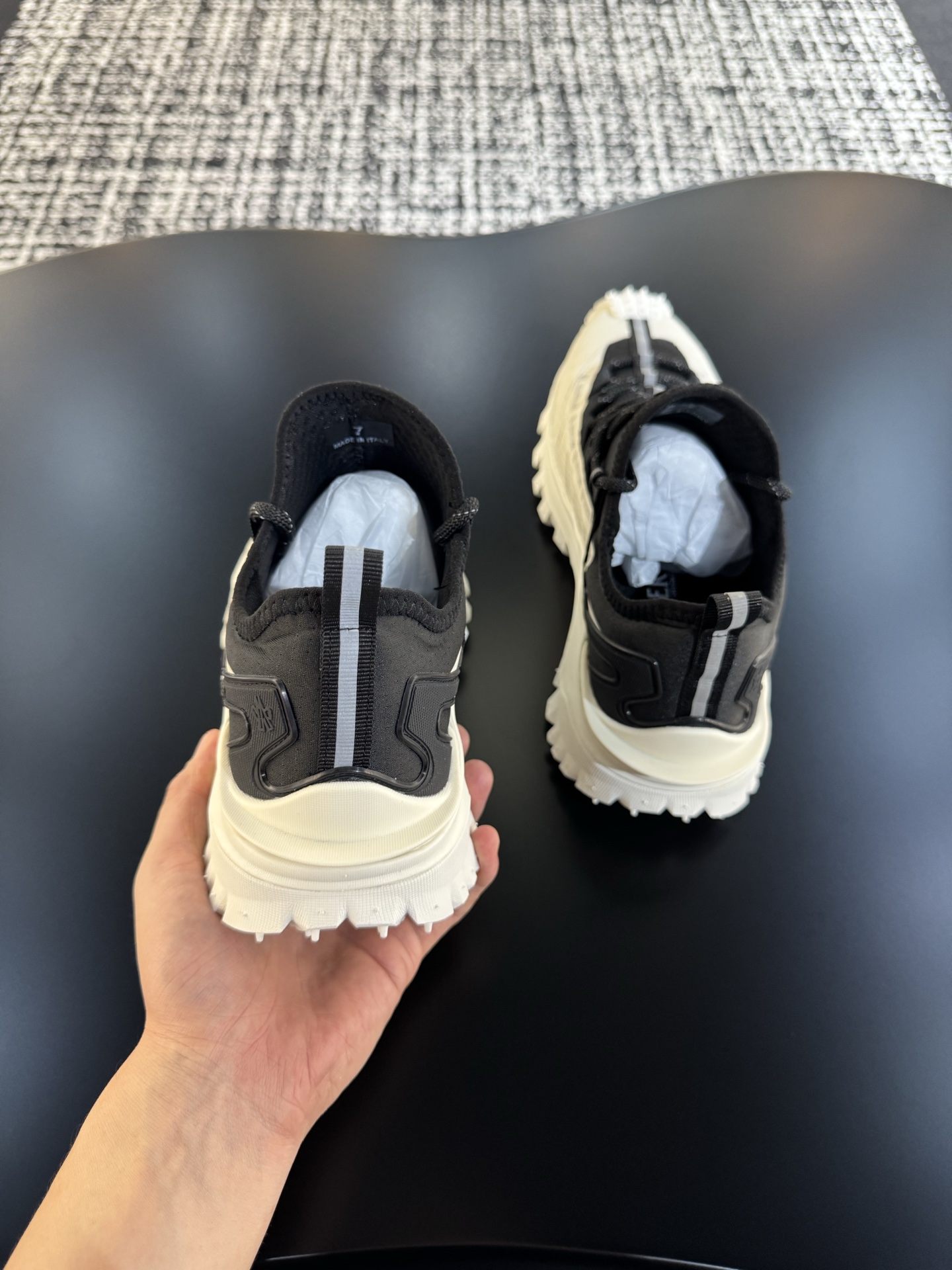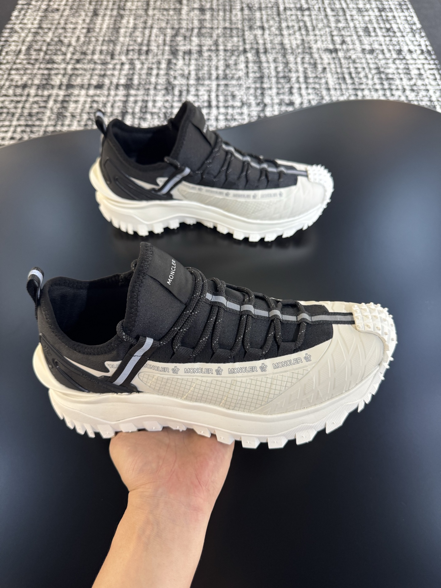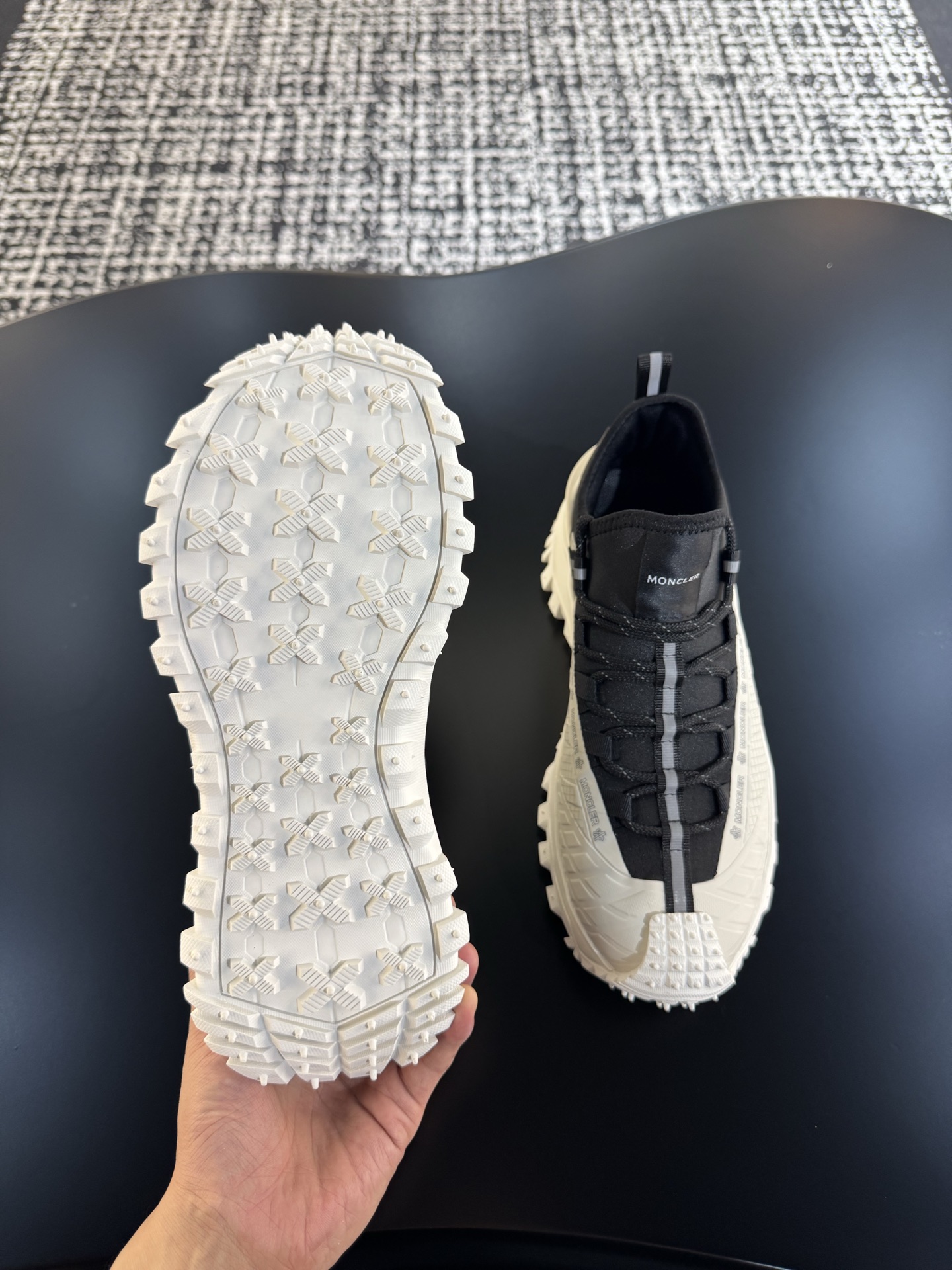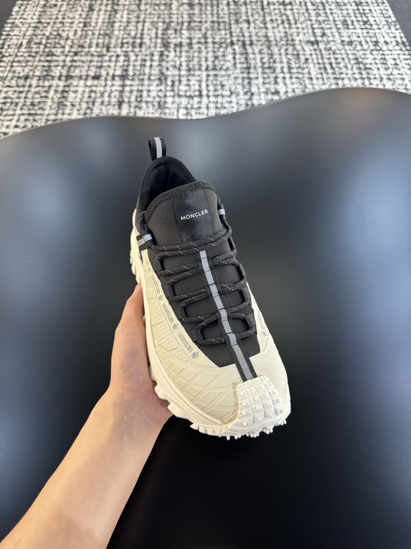這款鞋子是AAAAA 1:1 質量(非常棒). 使用了和原版一模一樣的材料. 商標部分也保持了和moncler一樣. 圖片拍攝是實物鞋子拍攝, 您所收到的實物保證和我們圖片一模一樣.