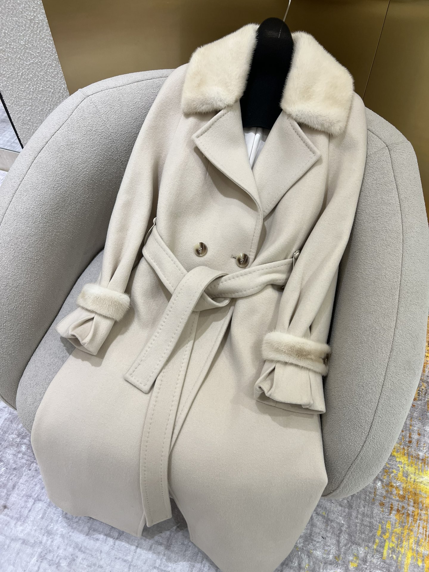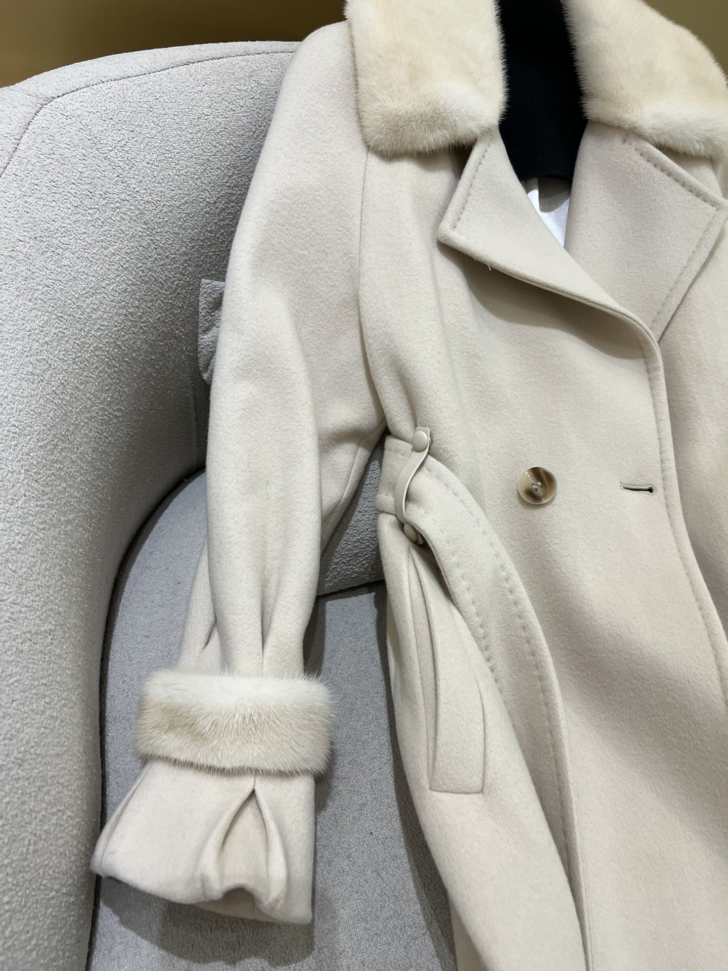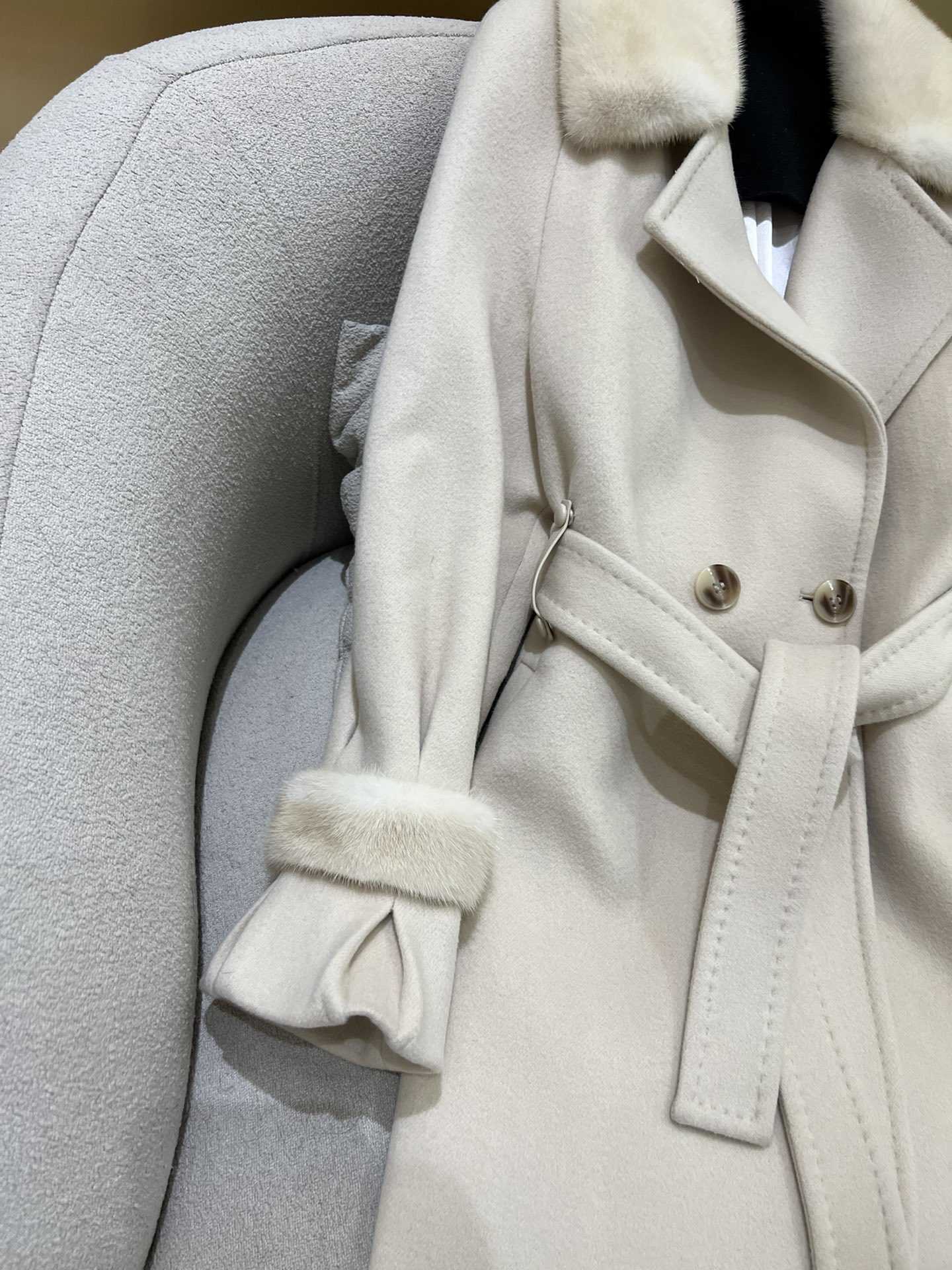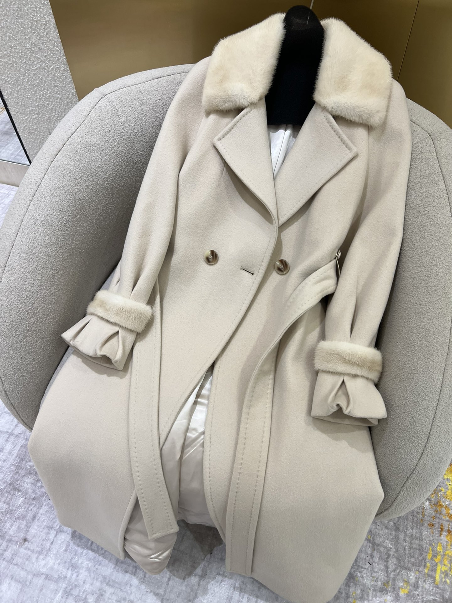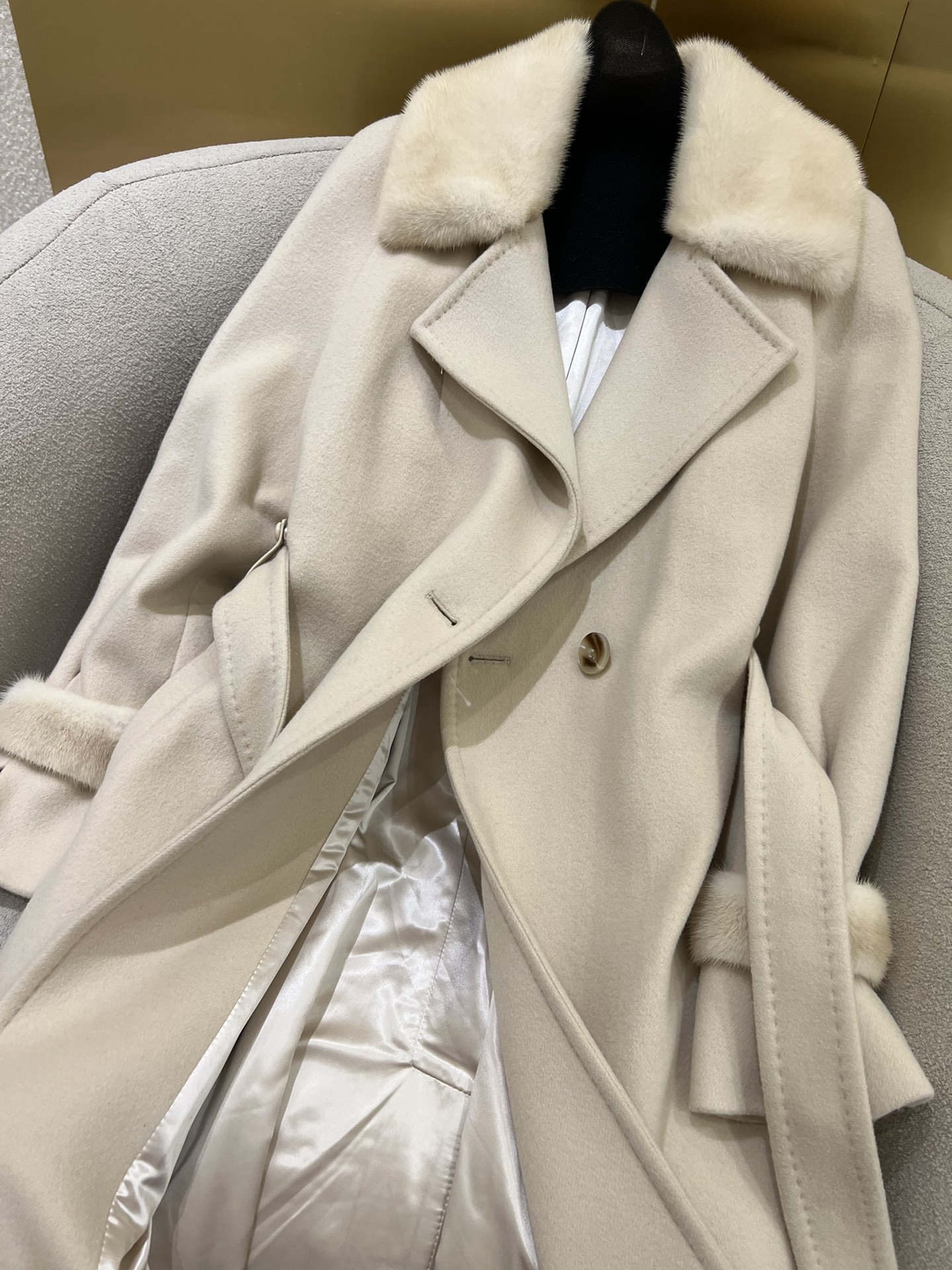這款衣服是AAAAA 1:1 質量(非常棒). 使用了和原版一模一樣的材料. 商標部分也保持了和Max Mara一樣. 圖片拍攝是實物衣服拍攝, 您所收到的實物保證和我們圖片一模一樣.
