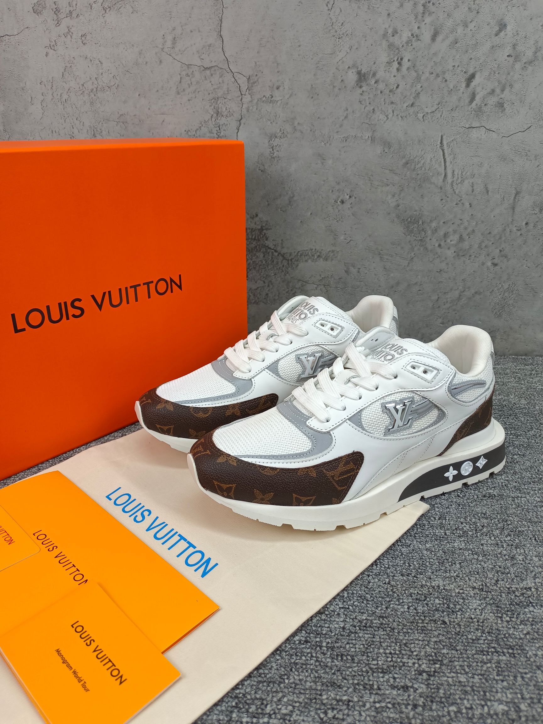 這款鞋子是AAAAA 1:1 質量(非常棒). 使用了和原版一模一樣的材料. 商標部分也保持了和路易威登/Louis Vuitton一樣. 圖片拍攝是實物鞋子拍攝, 您所收到的實物保證和我們圖片一模一樣.
