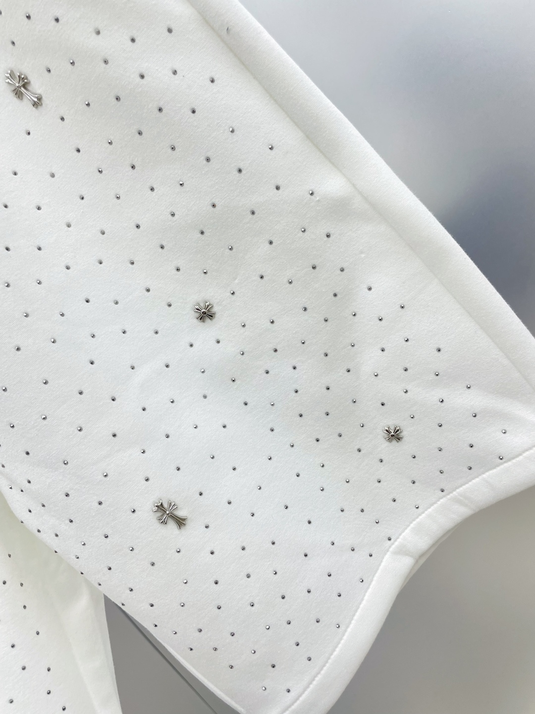 這款衣服是AAAAA 1:1 質量(非常棒). 使用了和原版一模一樣的材料. 商標部分也保持了和鉻心/Chrome Hearts一樣. 圖片拍攝是實物衣服拍攝, 您所收到的實物保證和我們圖片一模一樣.