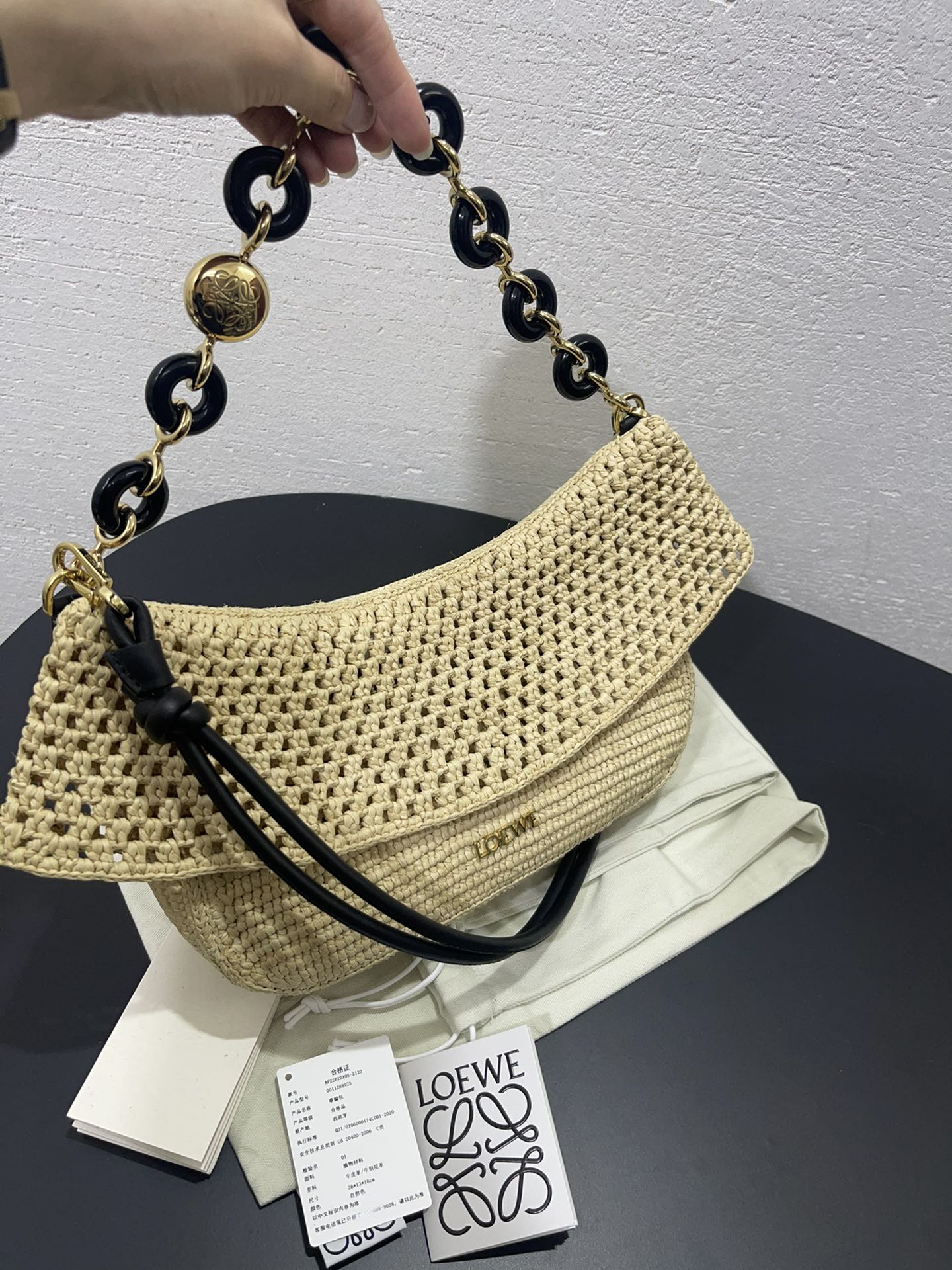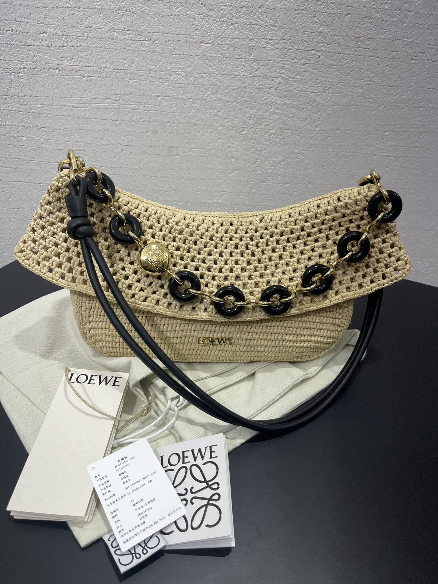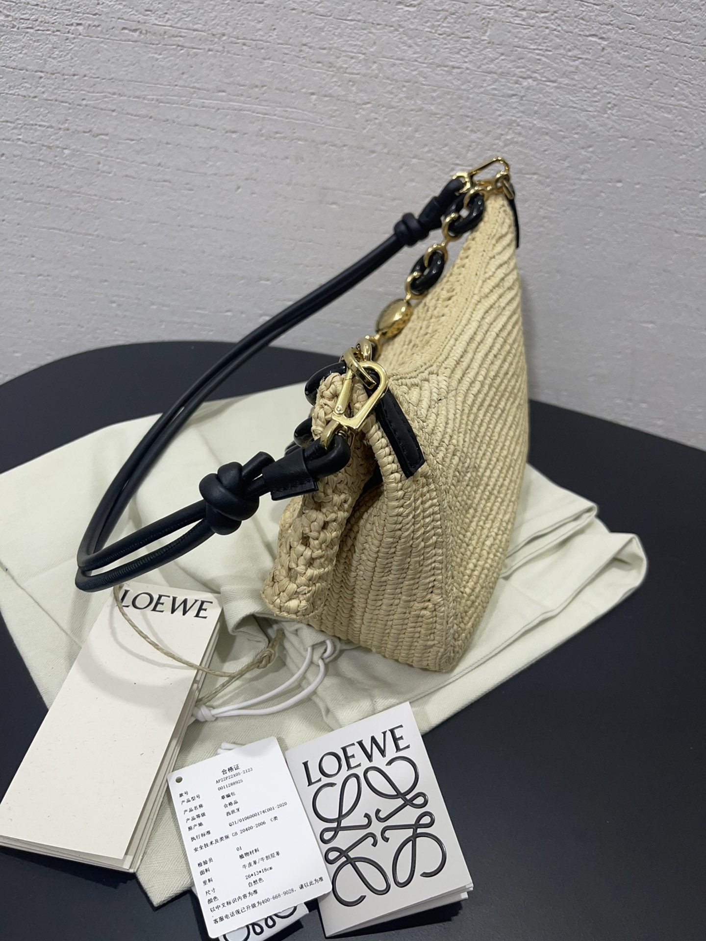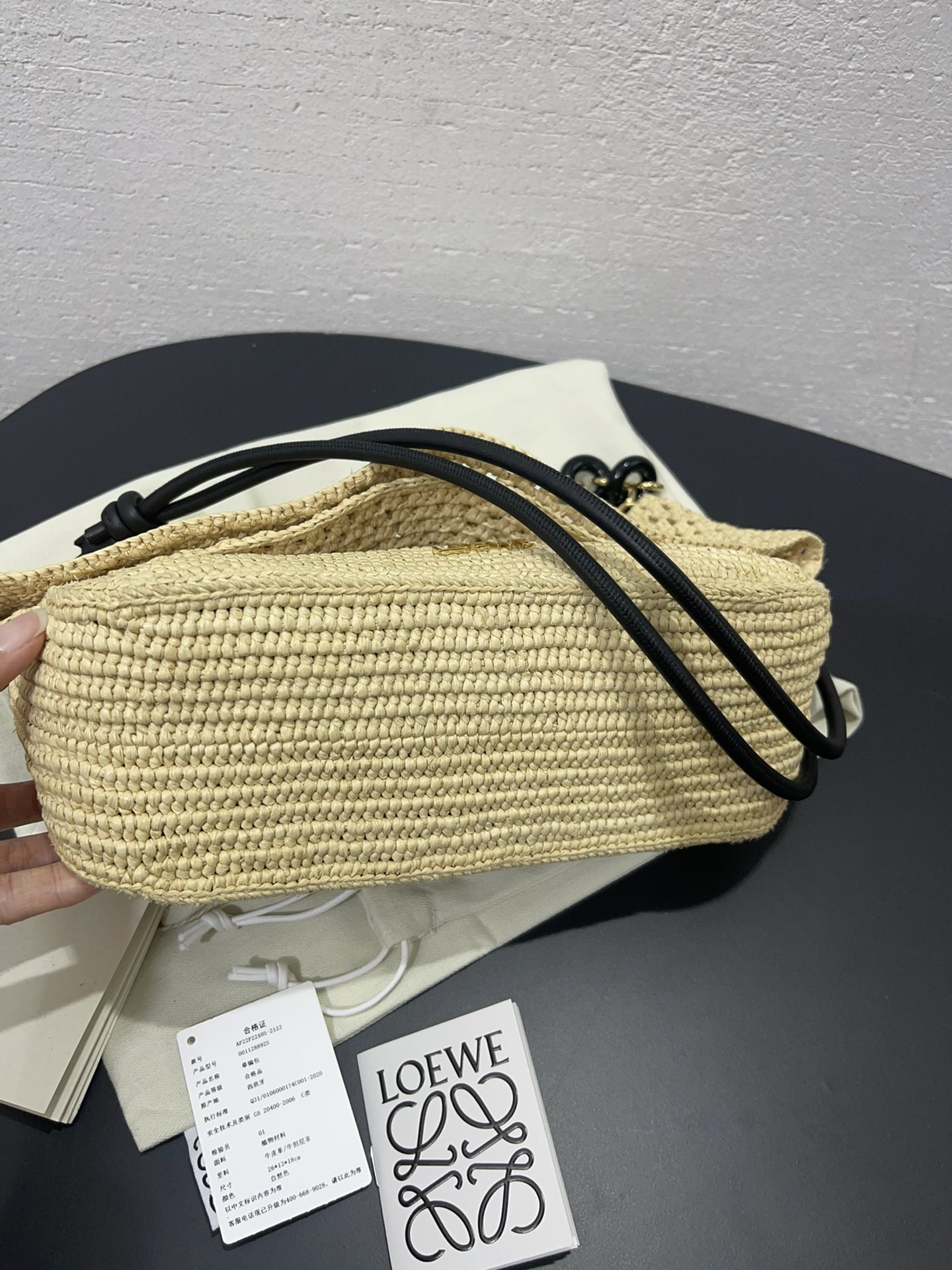 這款包包是AAAAA 1:1 質量(非常棒). 使用了和原版一模一樣的材料. 商標部分也保持了和Loewe一樣. 圖片拍攝是實物包包拍攝, 您所收到的實物保證和我們圖片一模一樣.