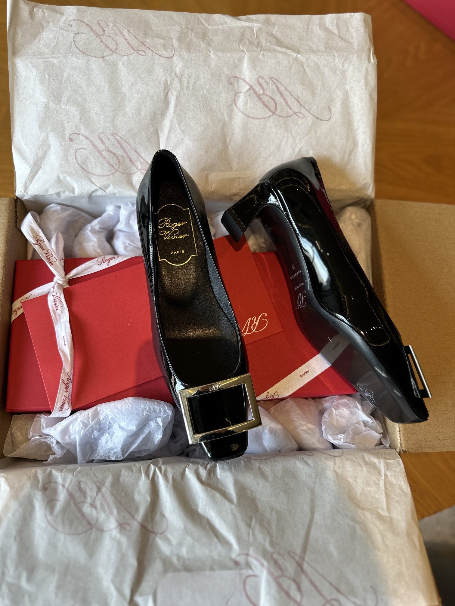 這款鞋子是AAAAA 1:1 質量(非常棒). 使用了和原版一模一樣的材料. 商標部分也保持了和羅傑維維耶/Roger Vivier一樣. 圖片拍攝是實物鞋子拍攝, 您所收到的實物保證和我們圖片一模一樣.