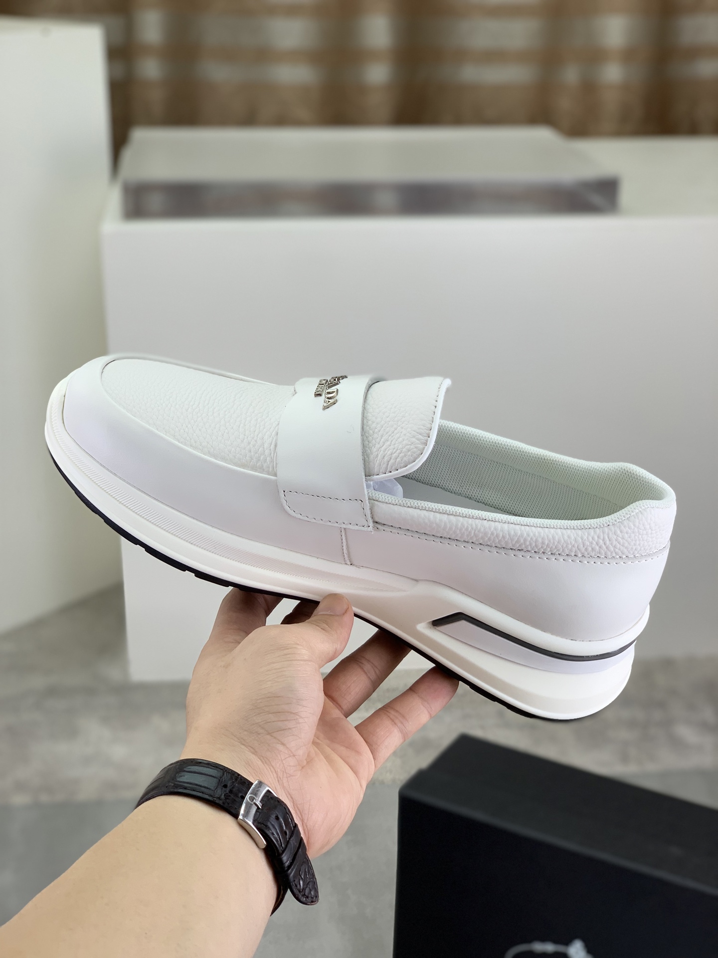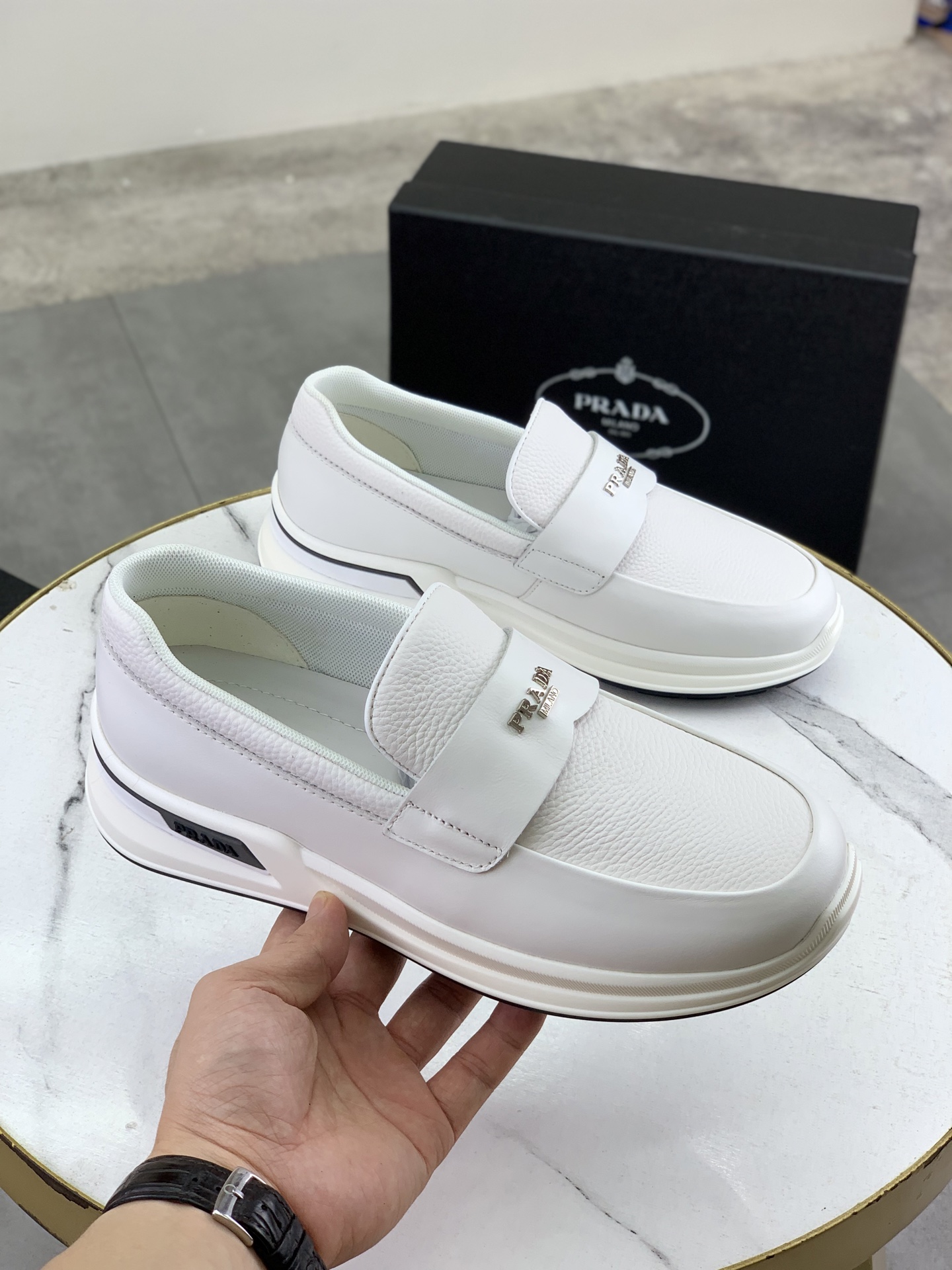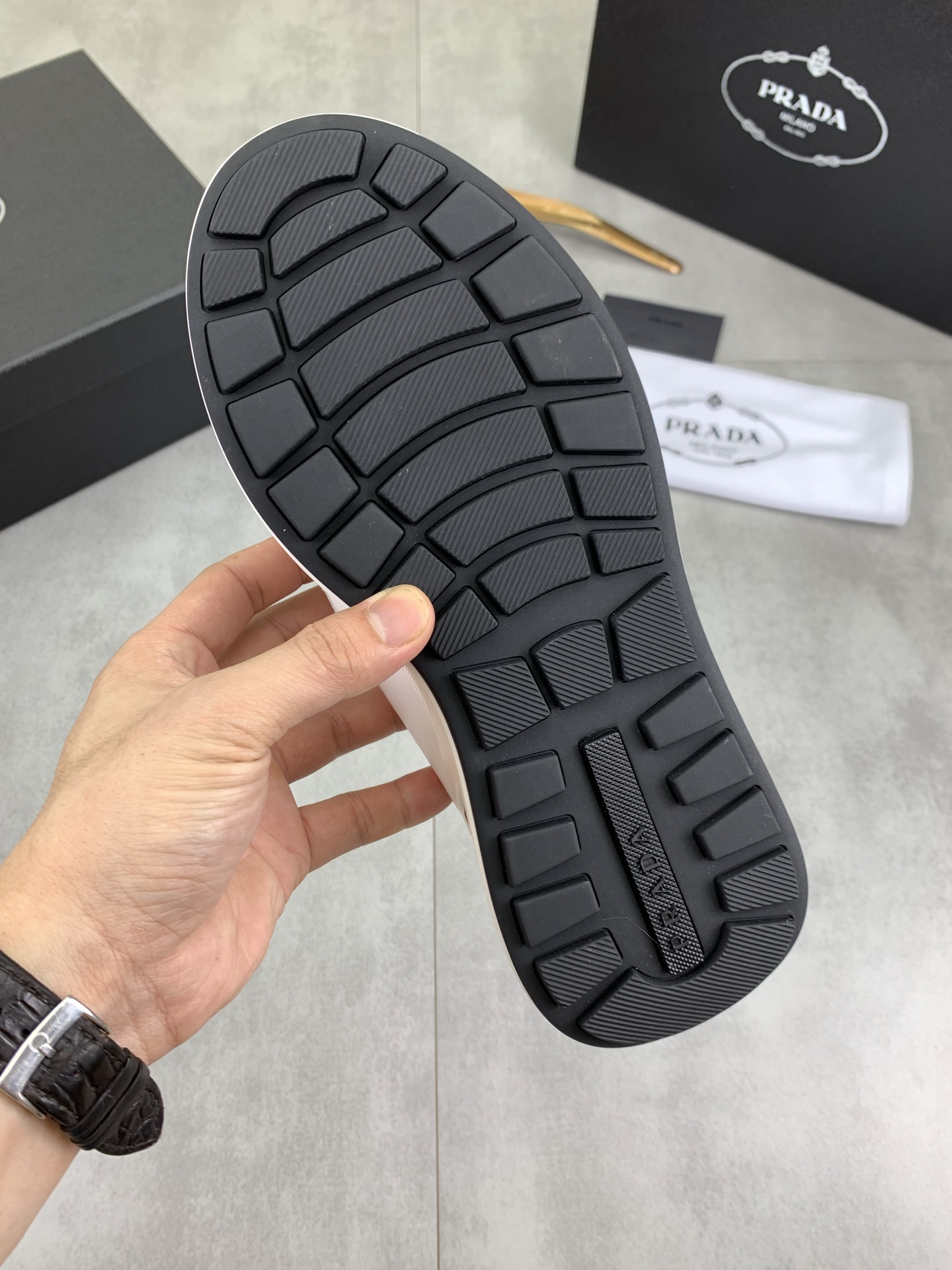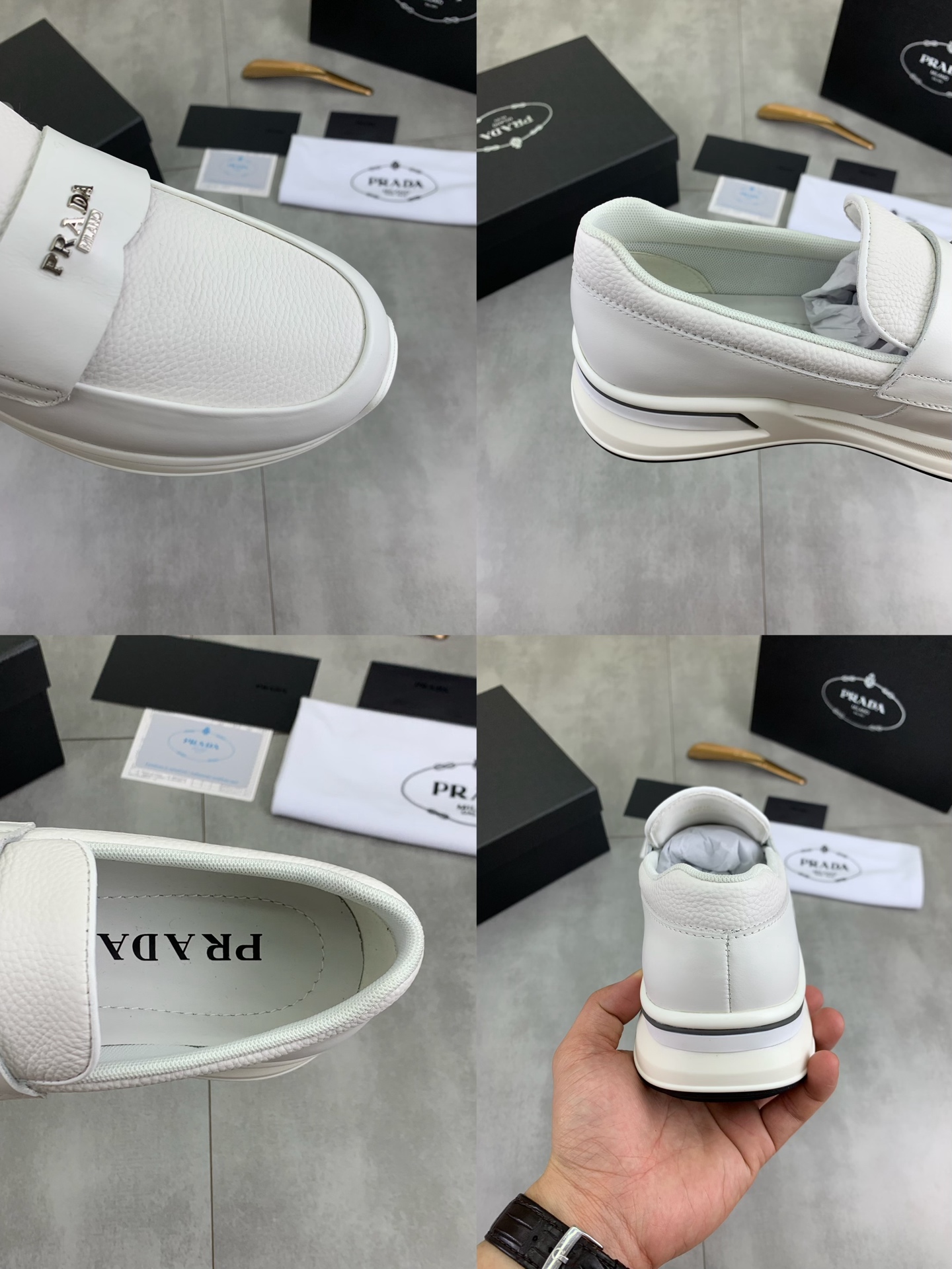 這款鞋子是AAAAA 1:1 質量(非常棒). 使用了和原版一模一樣的材料. 商標部分也保持了和普拉達/Prada一樣. 圖片拍攝是實物鞋子拍攝, 您所收到的實物保證和我們圖片一模一樣.