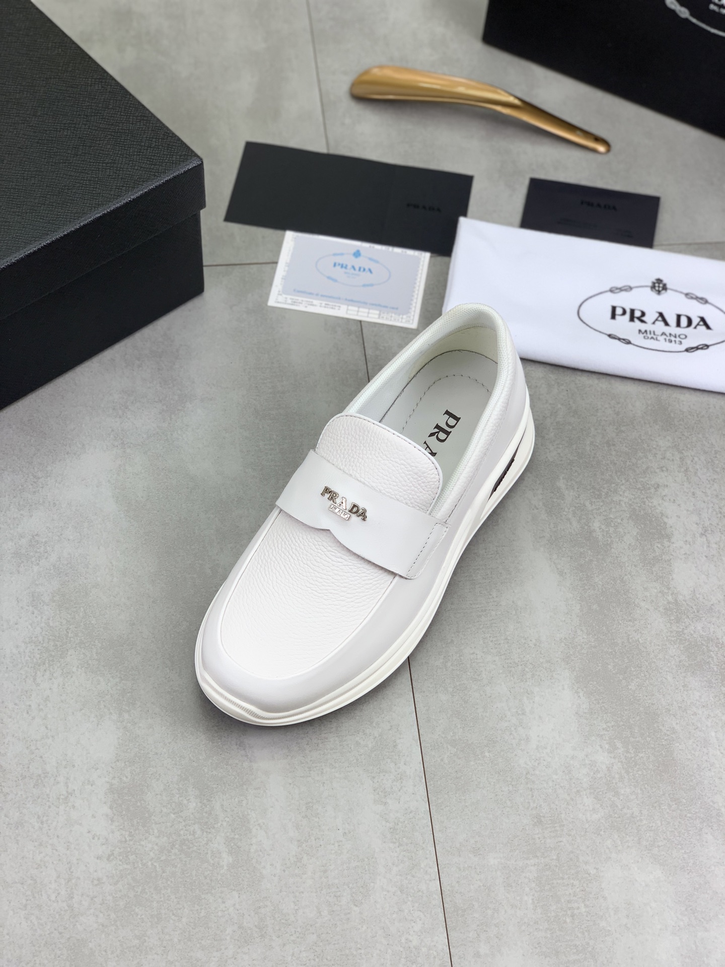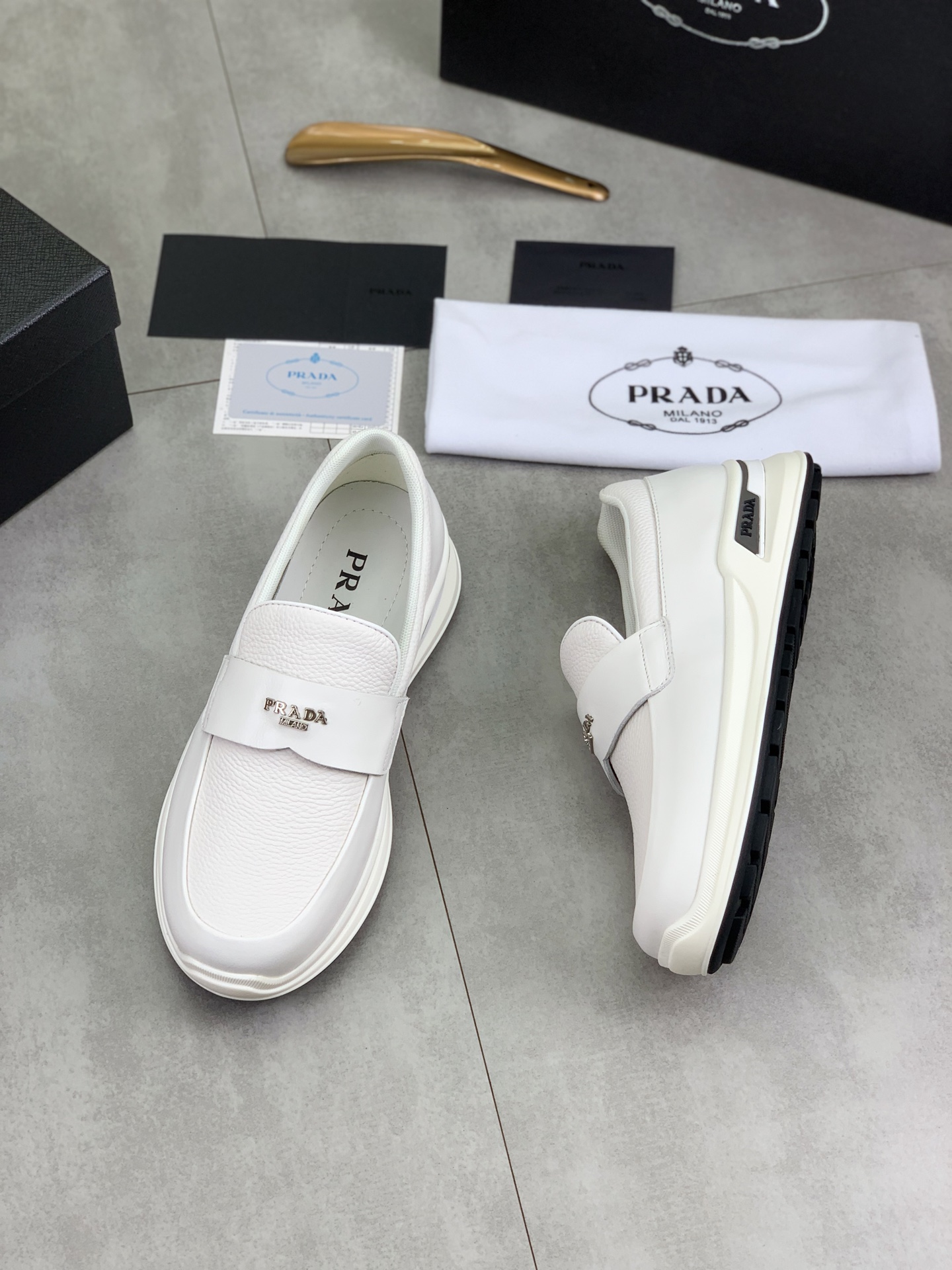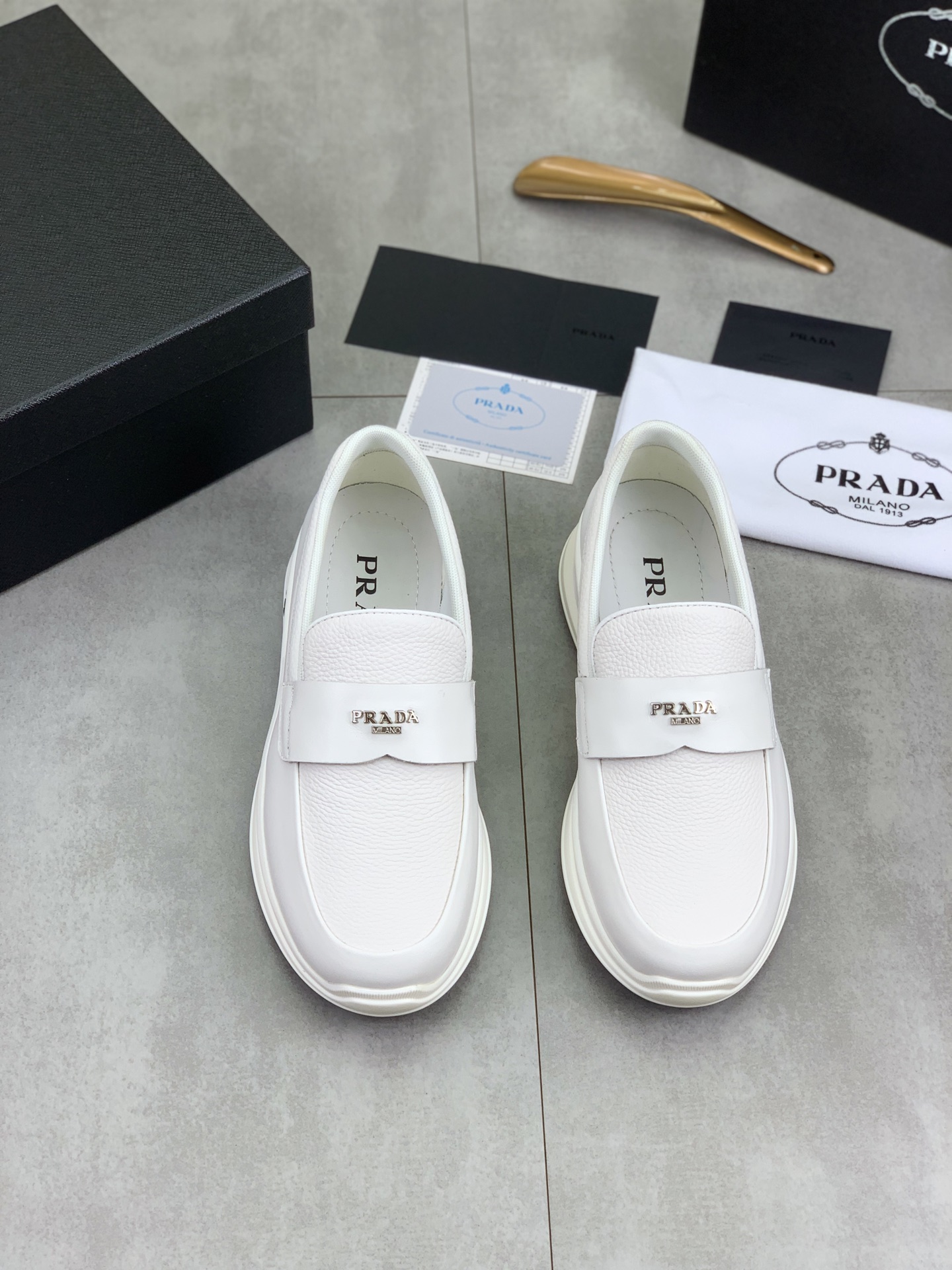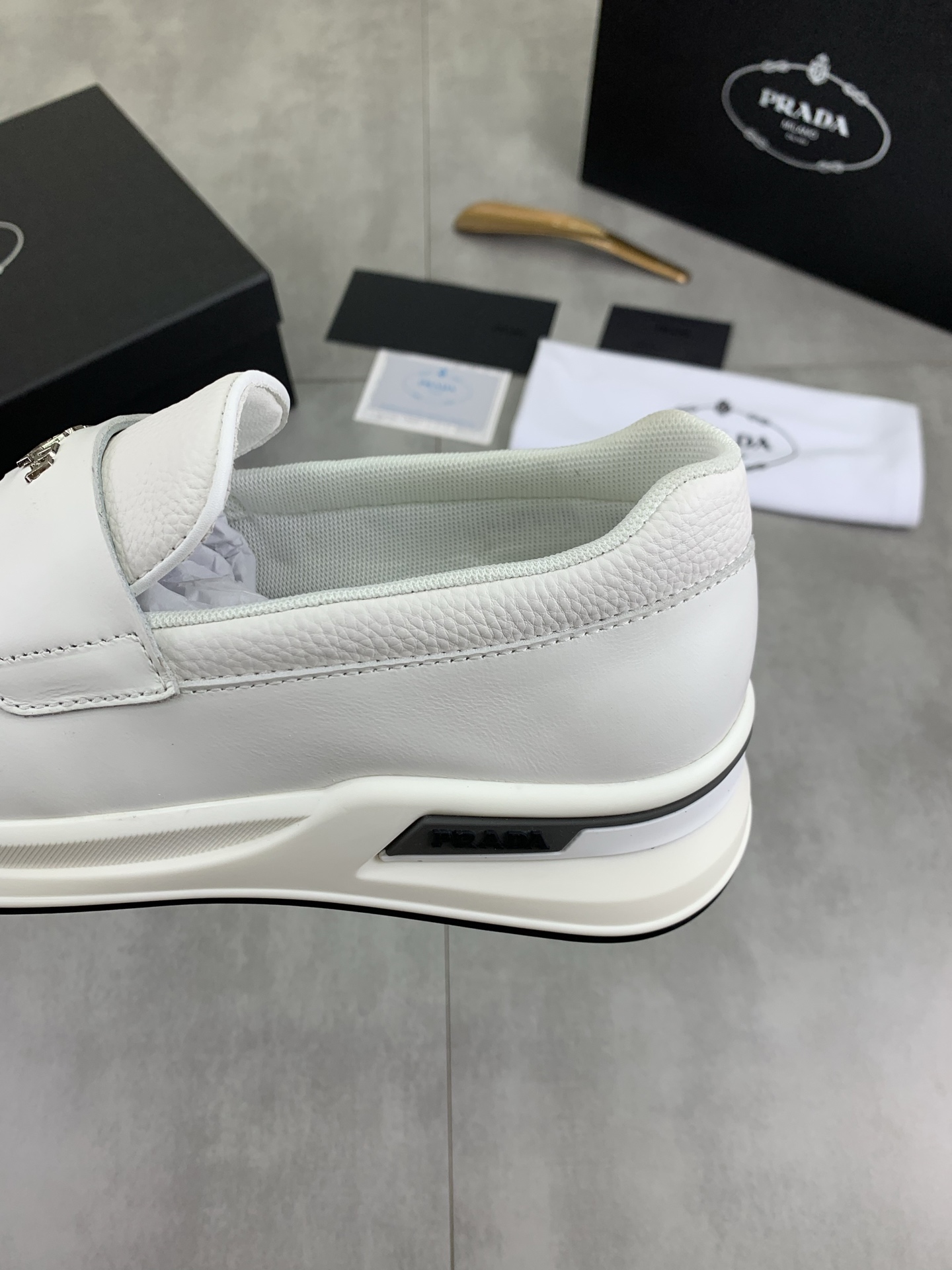 這款鞋子是AAAAA 1:1 質量(非常棒). 使用了和原版一模一樣的材料. 商標部分也保持了和普拉達/Prada一樣. 圖片拍攝是實物鞋子拍攝, 您所收到的實物保證和我們圖片一模一樣.