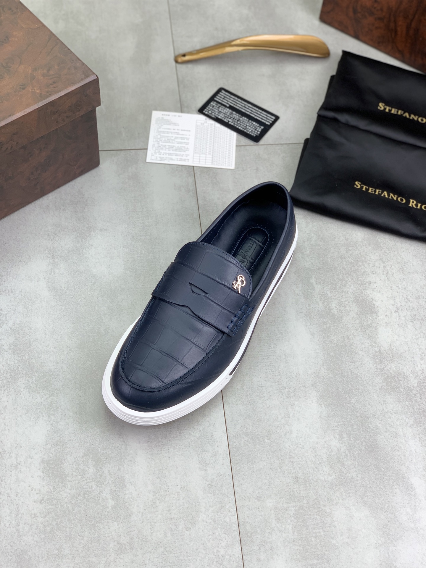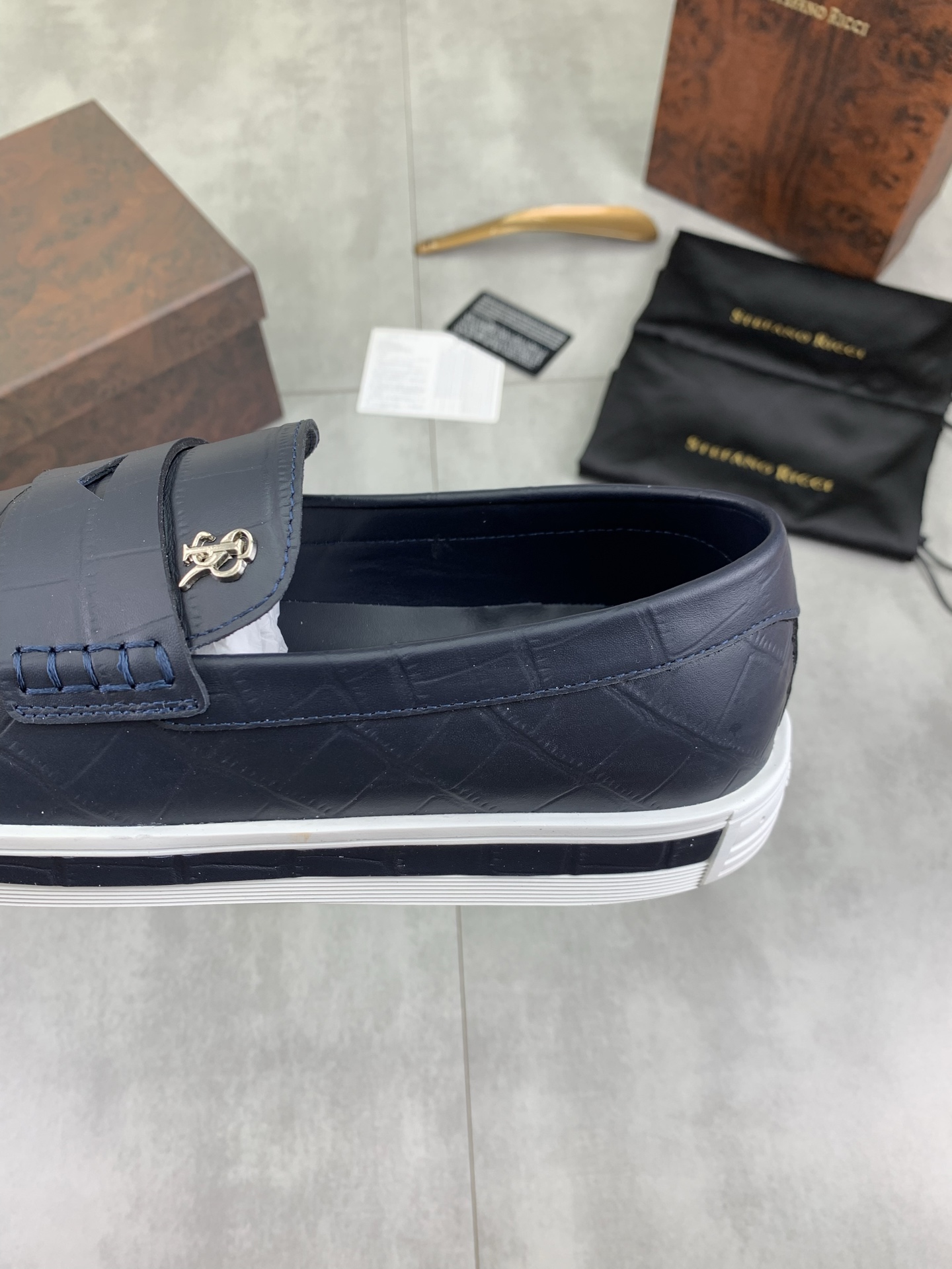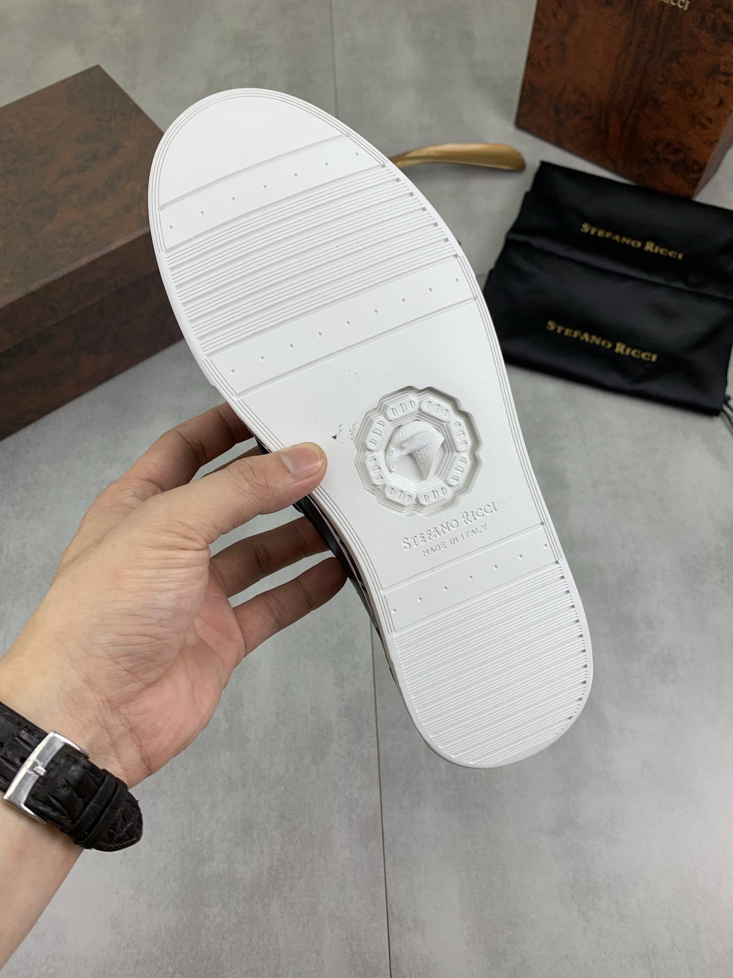 這款鞋子是AAAAA 1:1 質量(非常棒). 使用了和原版一模一樣的材料. 商標部分也保持了和Stefano Ricci一樣. 圖片拍攝是實物鞋子拍攝, 您所收到的實物保證和我們圖片一模一樣.
