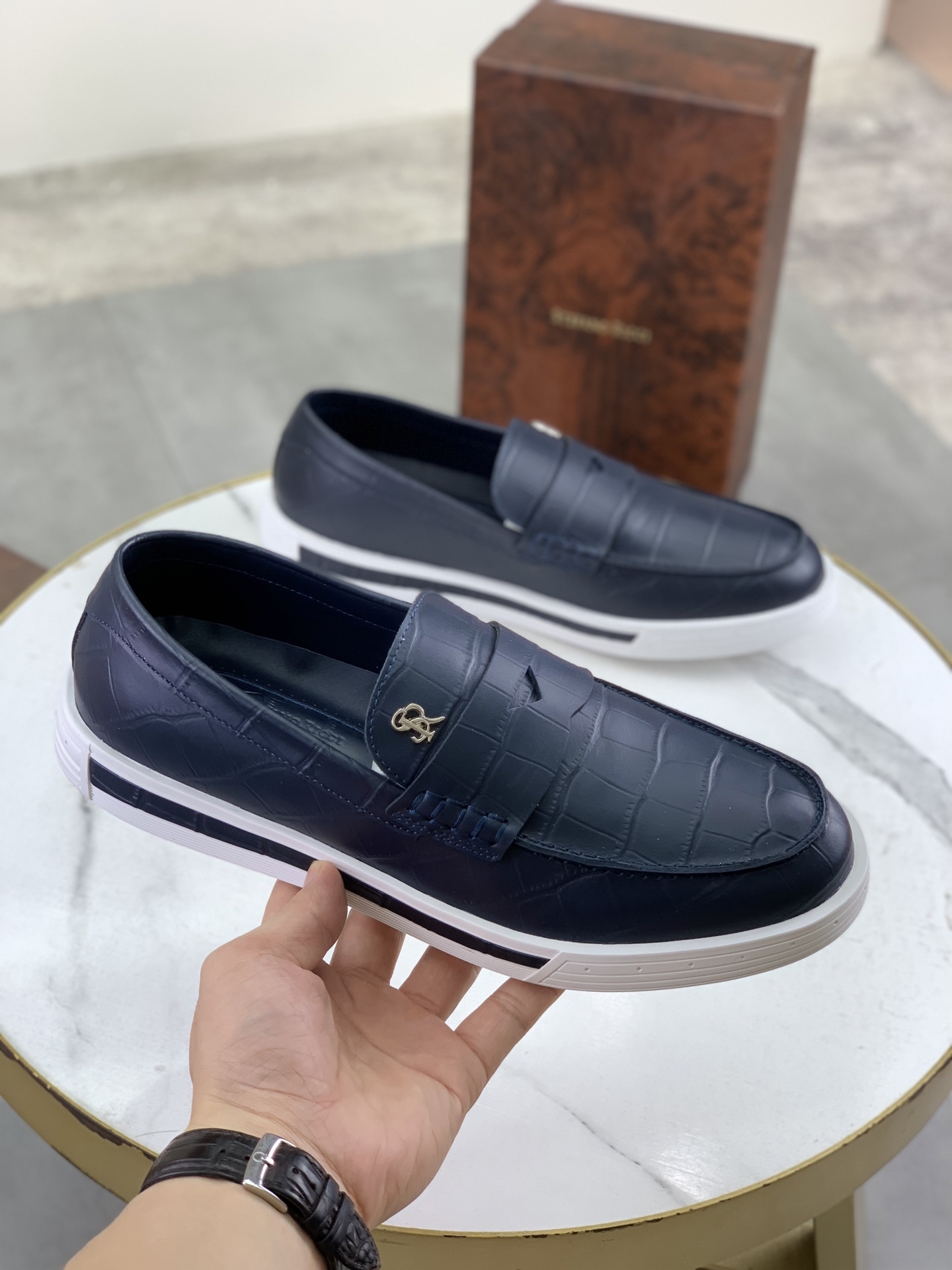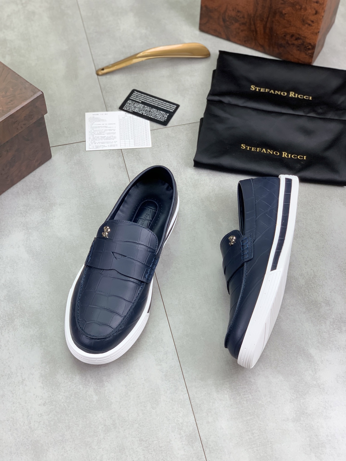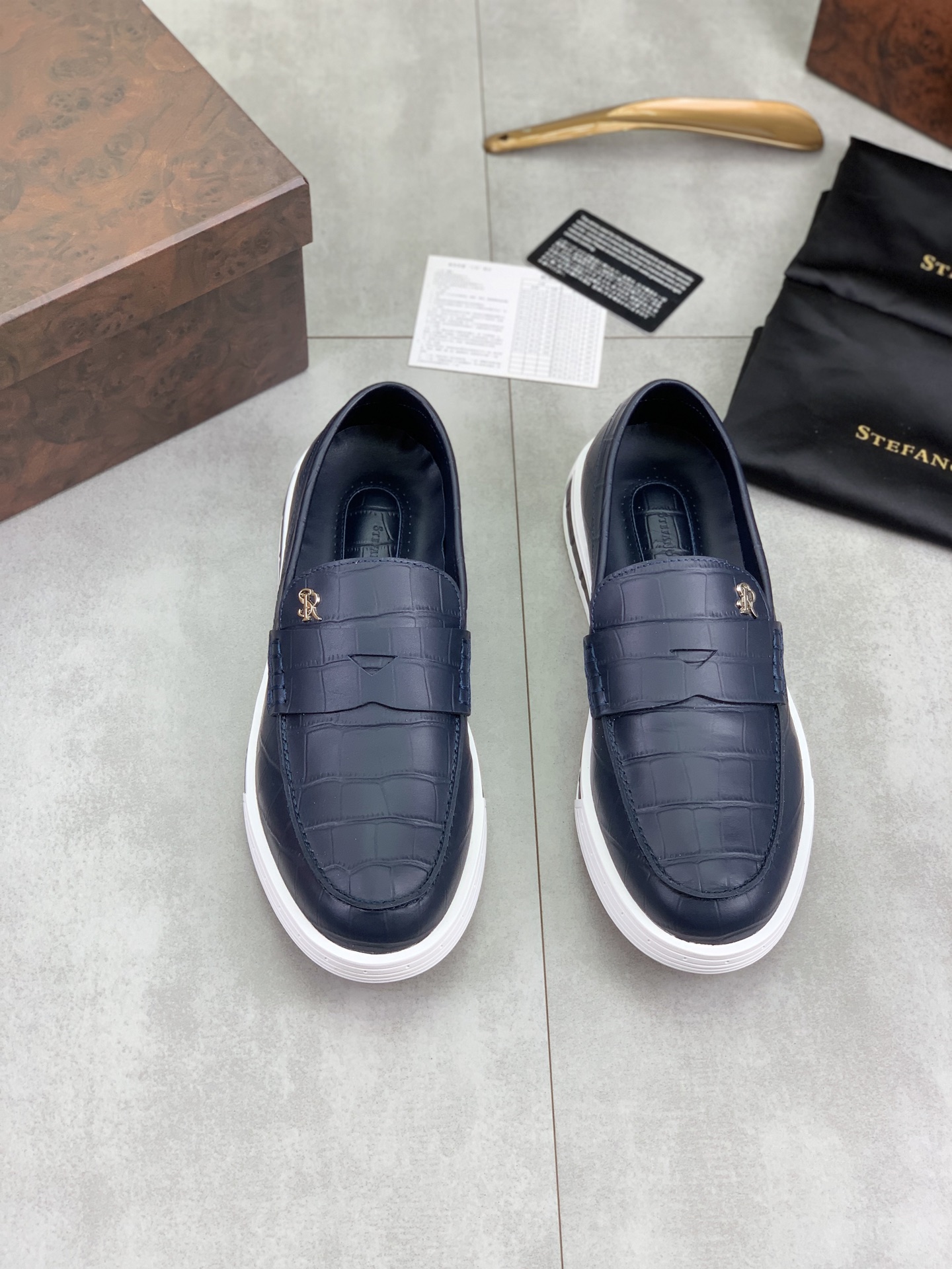 這款鞋子是AAAAA 1:1 質量(非常棒). 使用了和原版一模一樣的材料. 商標部分也保持了和Stefano Ricci一樣. 圖片拍攝是實物鞋子拍攝, 您所收到的實物保證和我們圖片一模一樣.