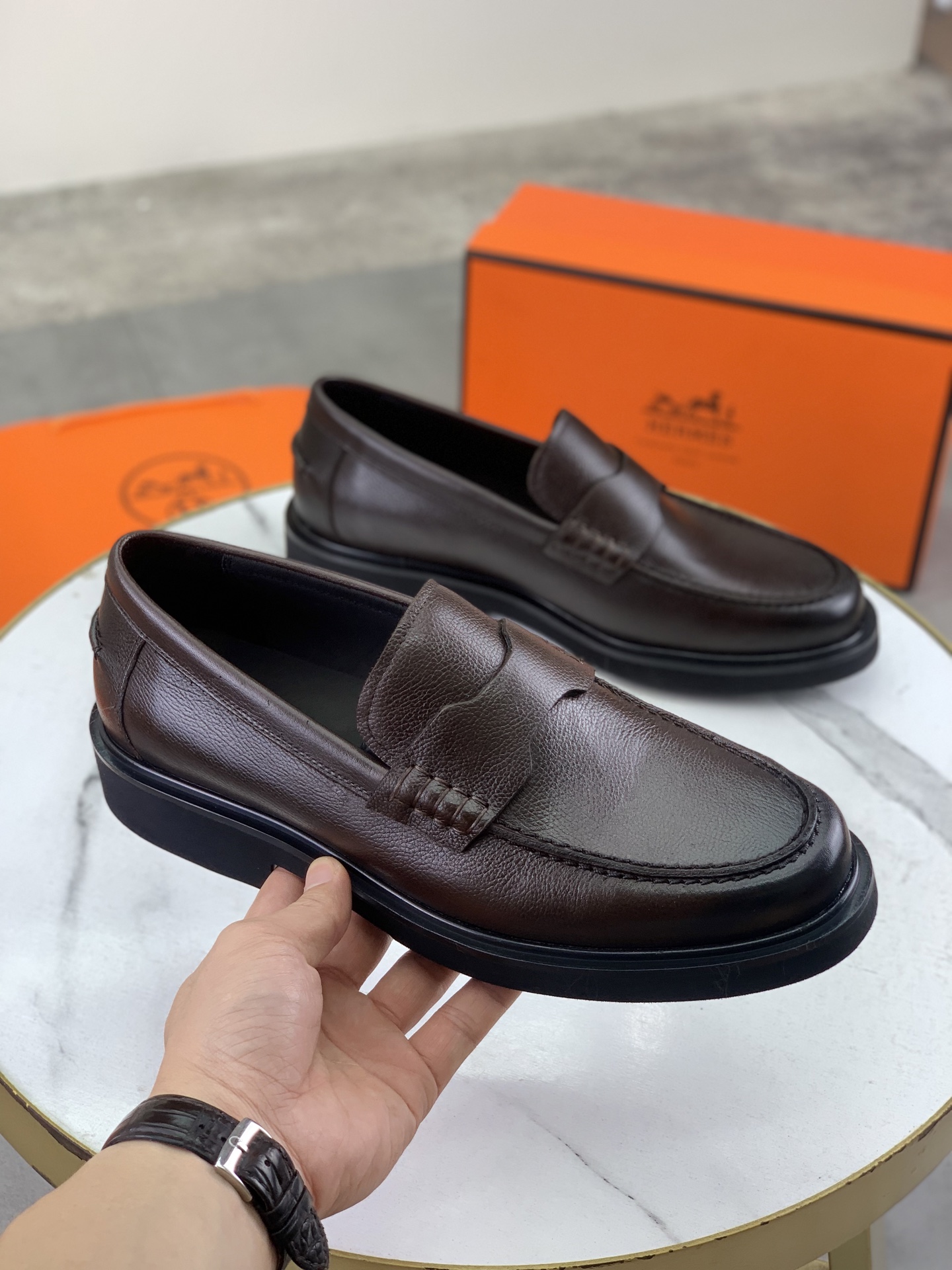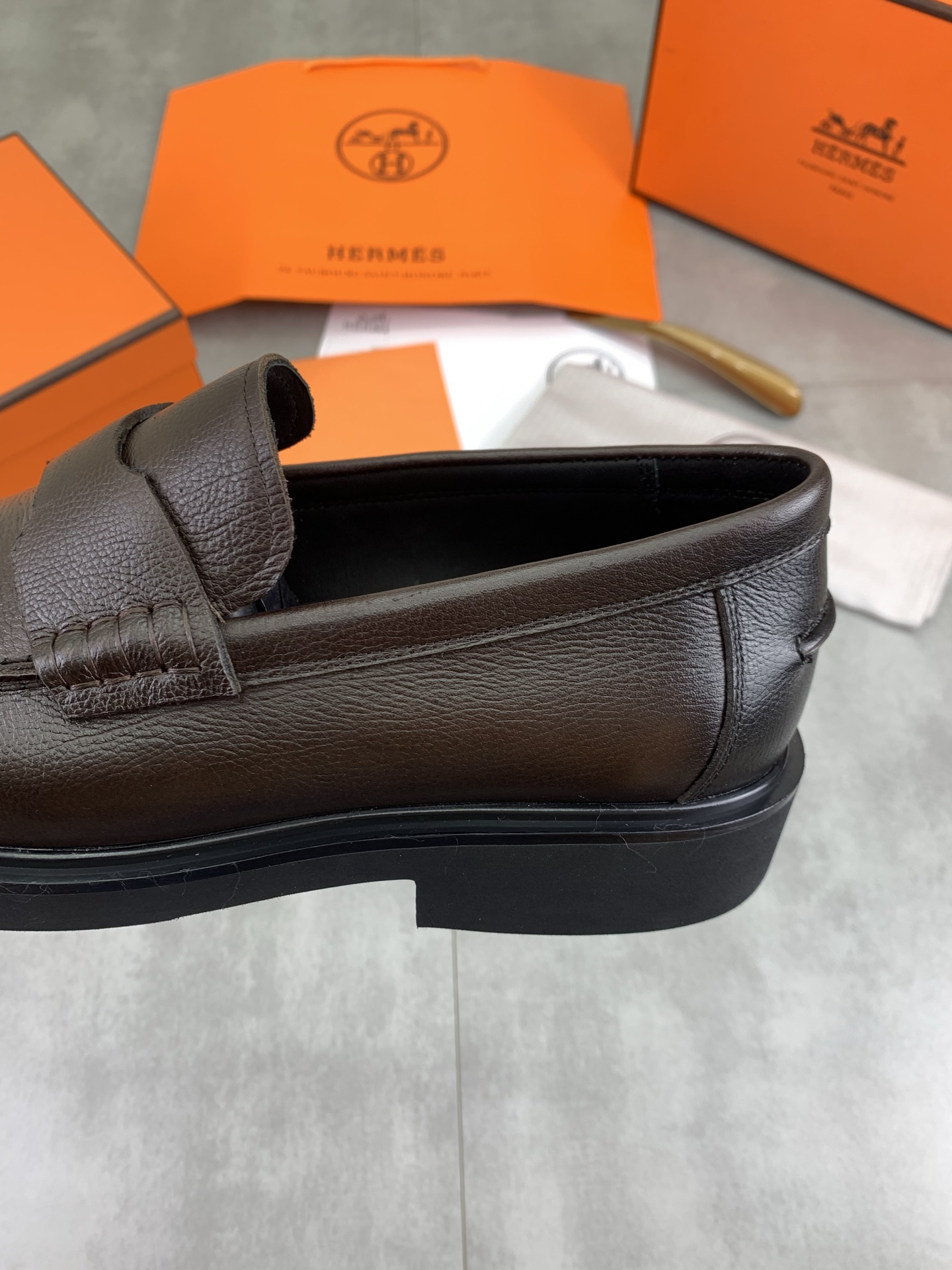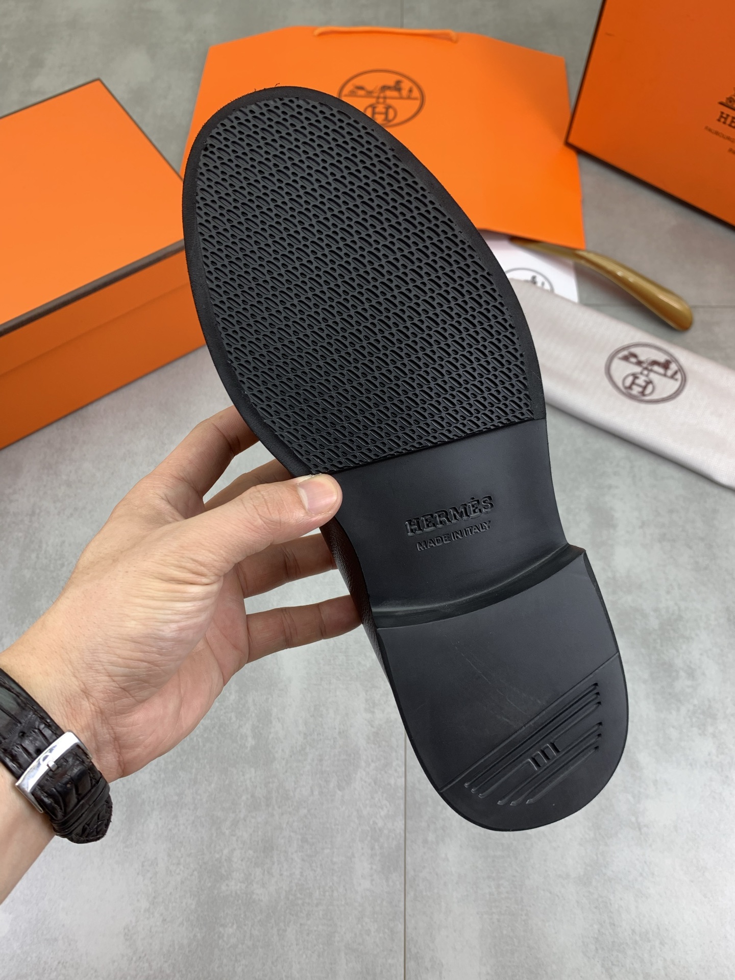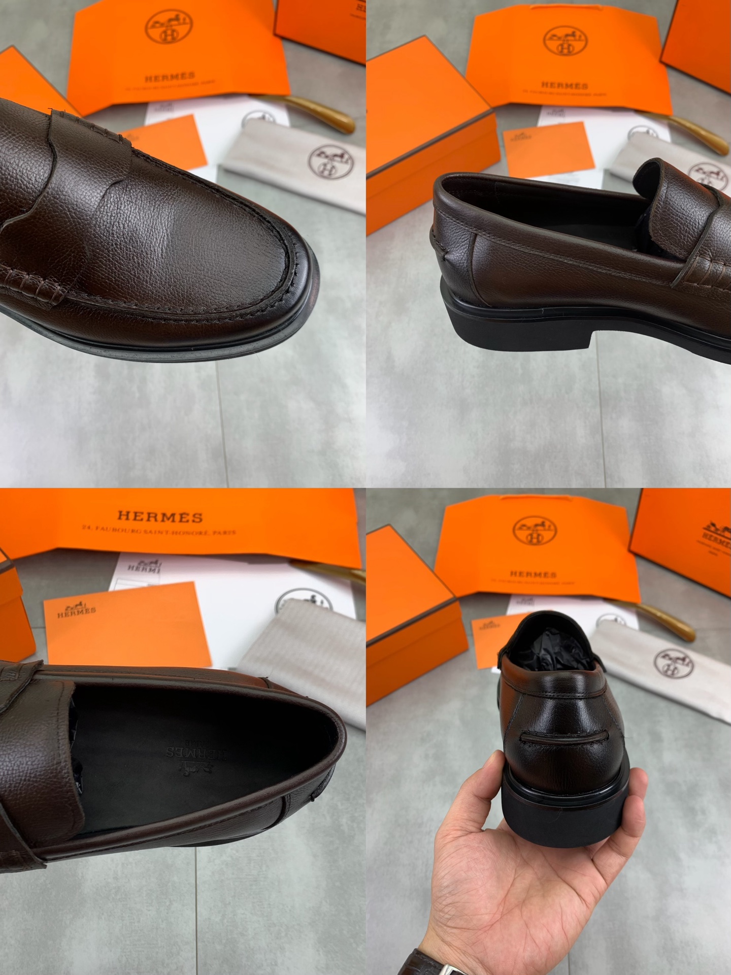 這款鞋子是AAAAA 1:1 質量(非常棒). 使用了和原版一模一樣的材料. 商標部分也保持了和愛馬仕/Hermes一樣. 圖片拍攝是實物鞋子拍攝, 您所收到的實物保證和我們圖片一模一樣.