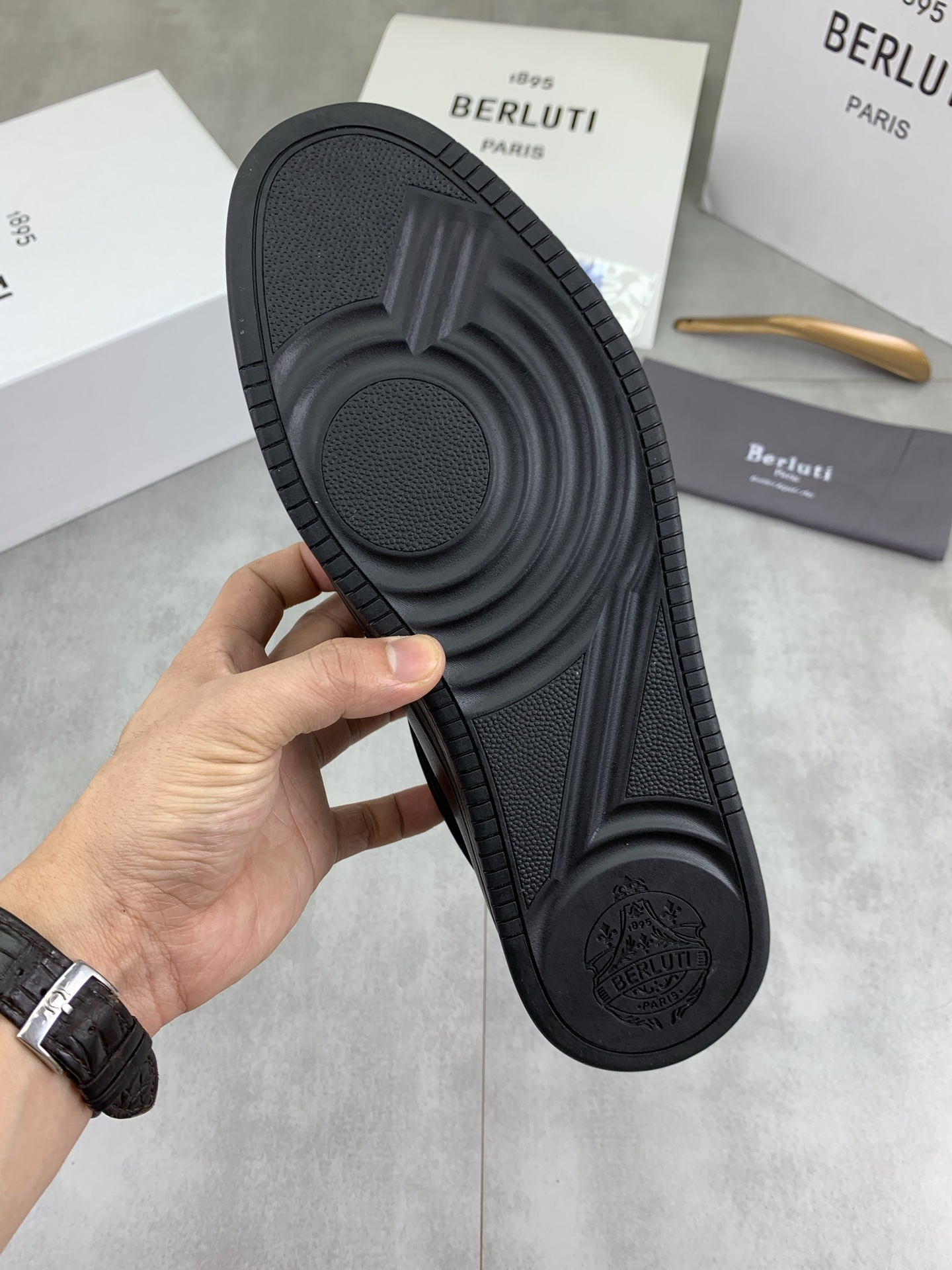 這款鞋子是AAAAA 1:1 質量(非常棒). 使用了和原版一模一樣的材料. 商標部分也保持了和Berluti一樣. 圖片拍攝是實物鞋子拍攝, 您所收到的實物保證和我們圖片一模一樣.