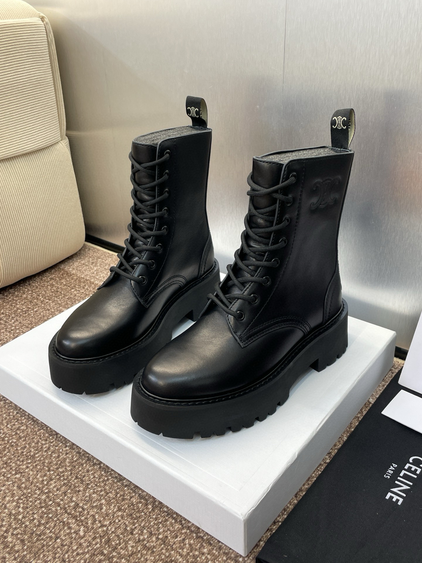 這款鞋子是AAAAA 1:1 質量(非常棒). 使用了和原版一模一樣的材料. 商標部分也保持了和思琳/赛琳/Celine一樣. 圖片拍攝是實物鞋子拍攝, 您所收到的實物保證和我們圖片一模一樣.