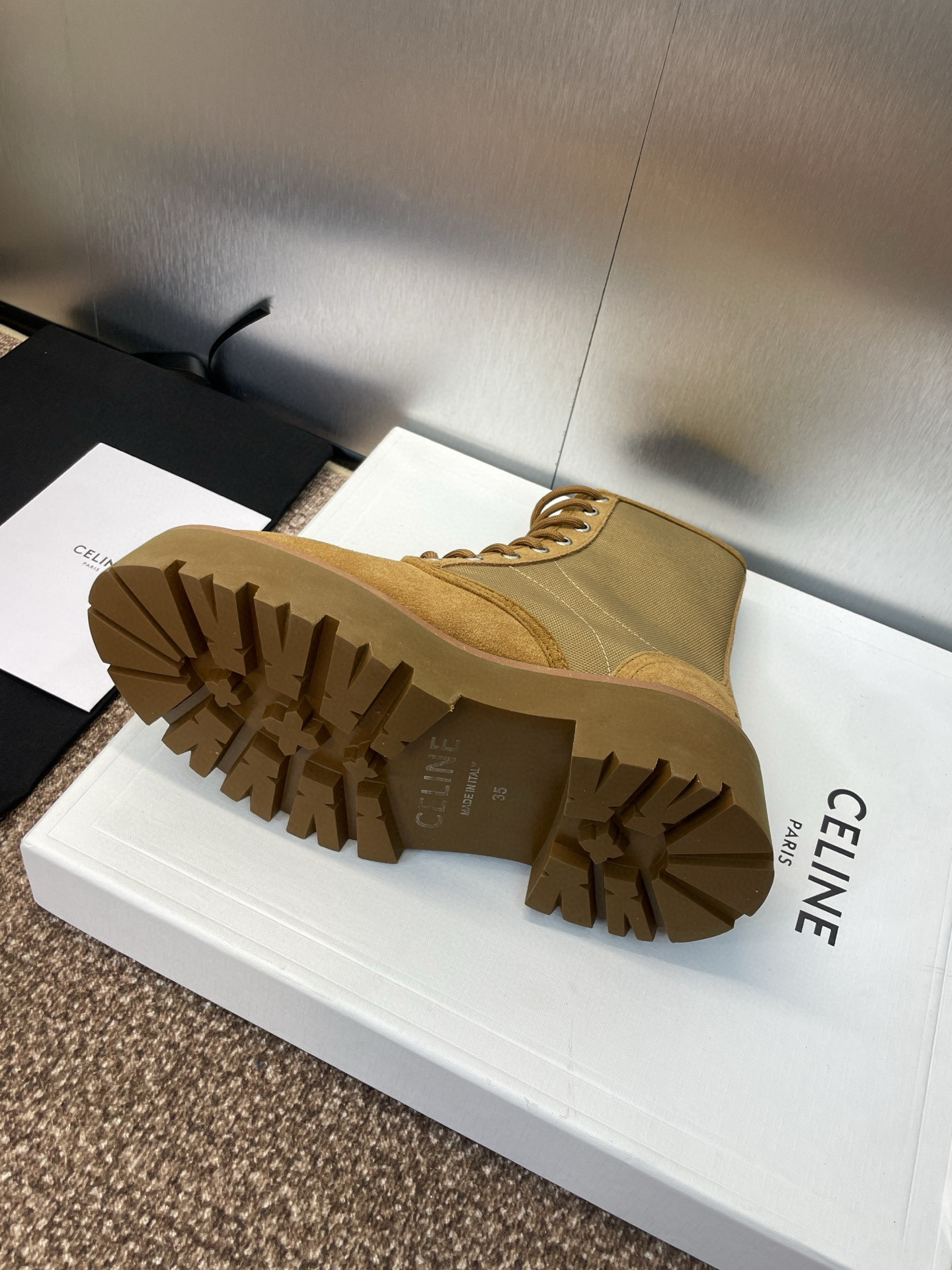 這款鞋子是AAAAA 1:1 質量(非常棒). 使用了和原版一模一樣的材料. 商標部分也保持了和思琳/赛琳/Celine一樣. 圖片拍攝是實物鞋子拍攝, 您所收到的實物保證和我們圖片一模一樣.