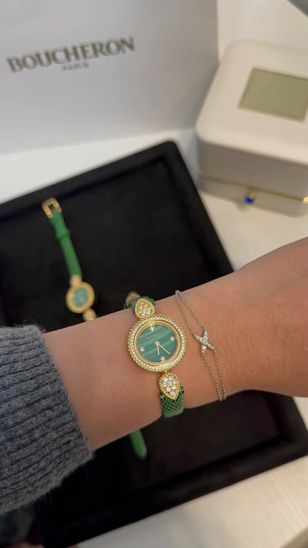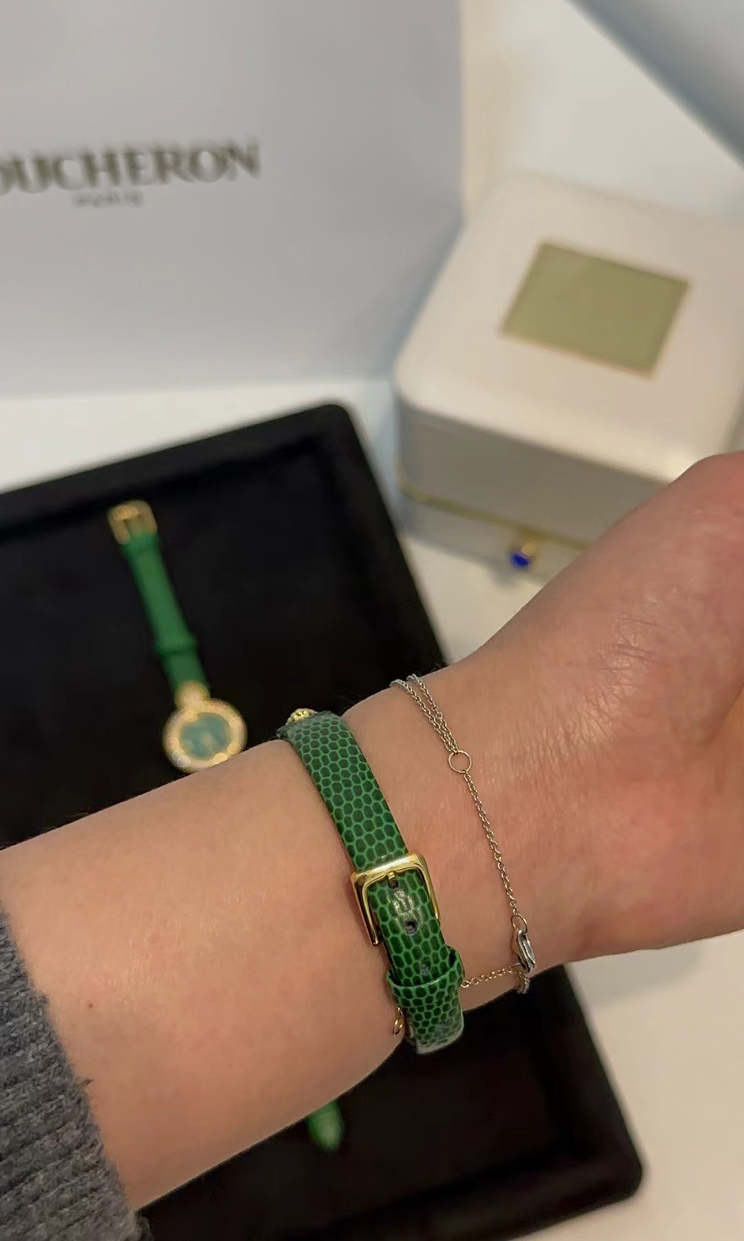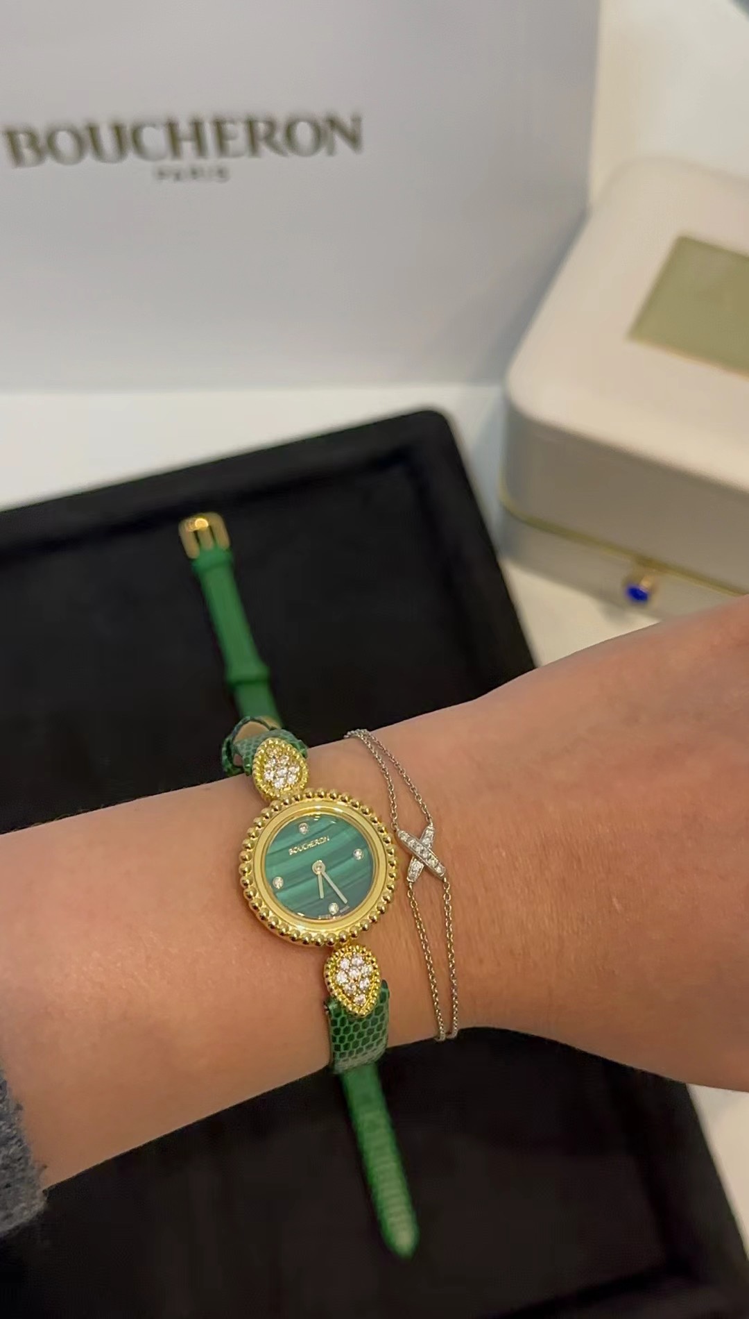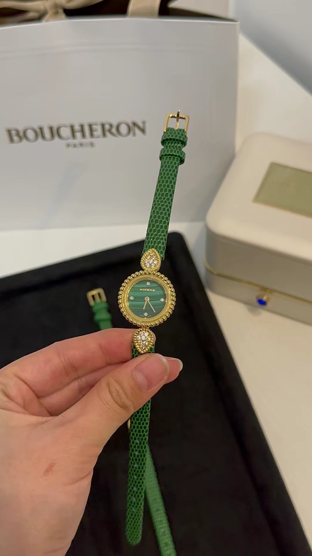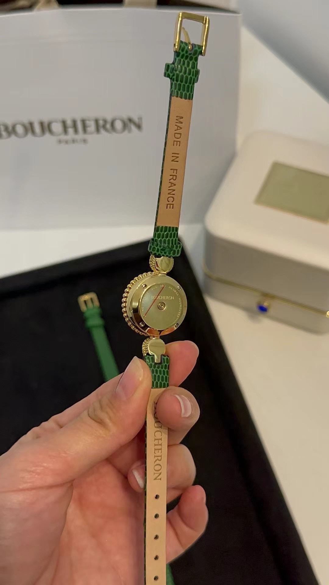 這款手錶是AAAAA 1:1 質量(非常棒). 使用了和原版一模一樣的材料. 商標部分也保持了和Boucheron一樣. 圖片拍攝是實物手錶拍攝, 您所收到的實物保證和我們圖片一模一樣.