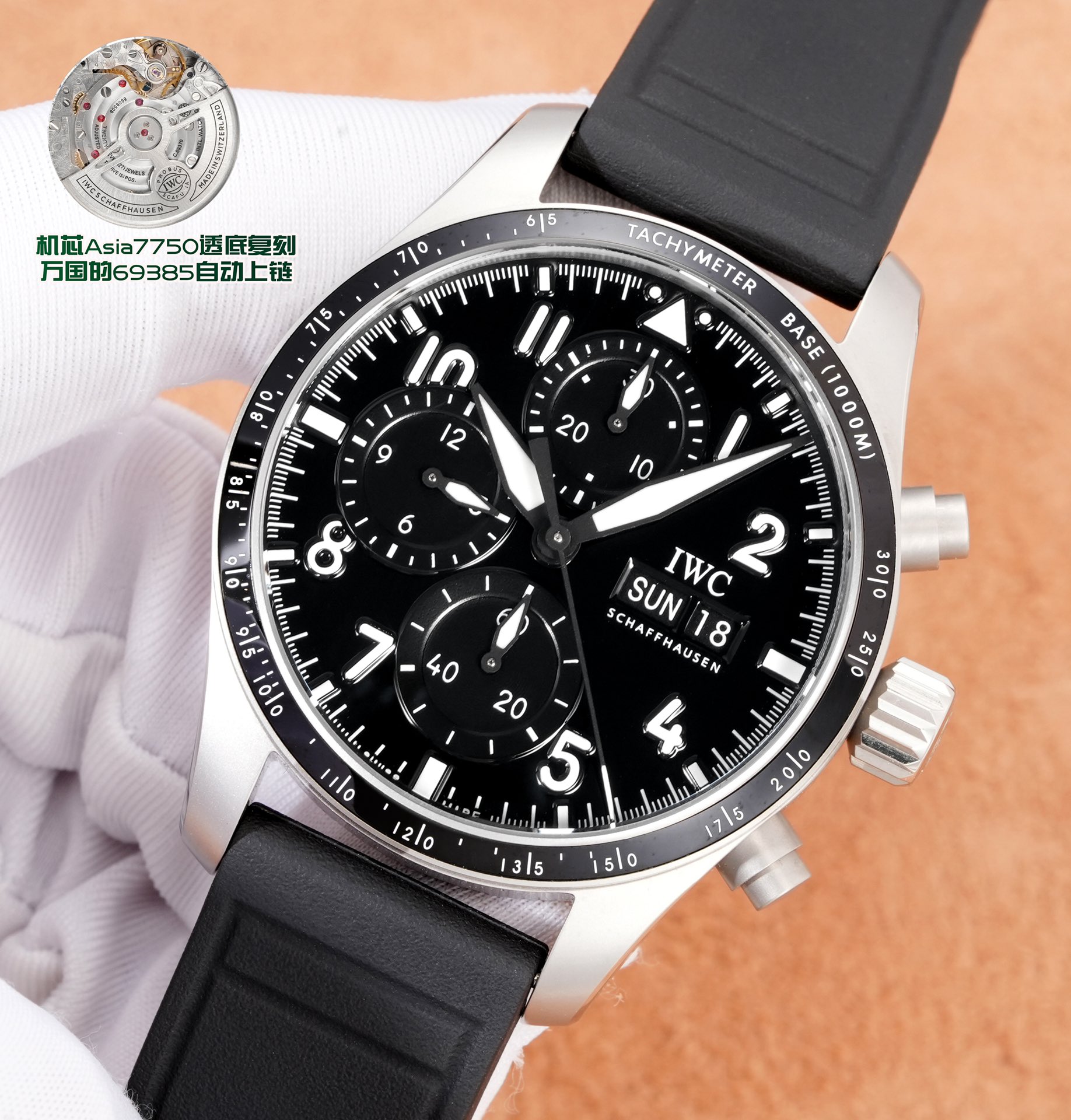 這款手錶是AAAAA 1:1 質量(非常棒). 使用了和原版一模一樣的材料. 商標部分也保持了和IWC沙夫豪森/IWC Schaffhausen一樣. 圖片拍攝是實物手錶拍攝, 您所收到的實物保證和我們圖片一模一樣.