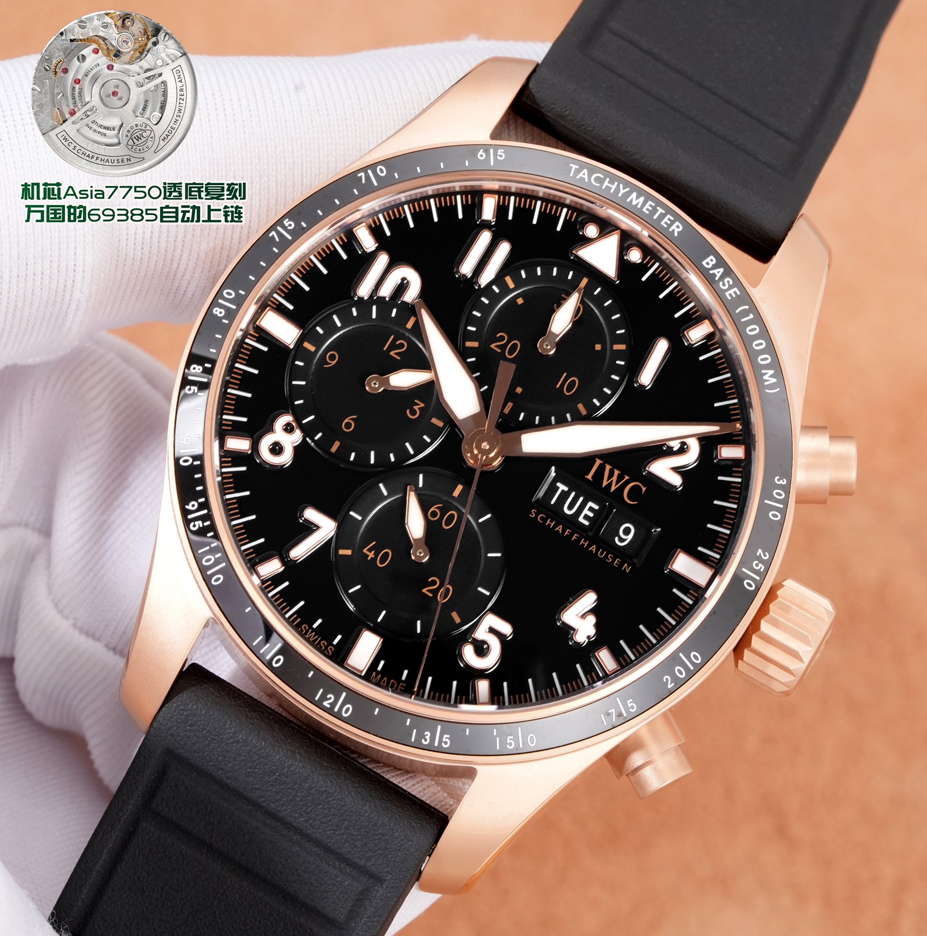 這款手錶是AAAAA 1:1 質量(非常棒). 使用了和原版一模一樣的材料. 商標部分也保持了和IWC沙夫豪森/IWC Schaffhausen一樣. 圖片拍攝是實物手錶拍攝, 您所收到的實物保證和我們圖片一模一樣.