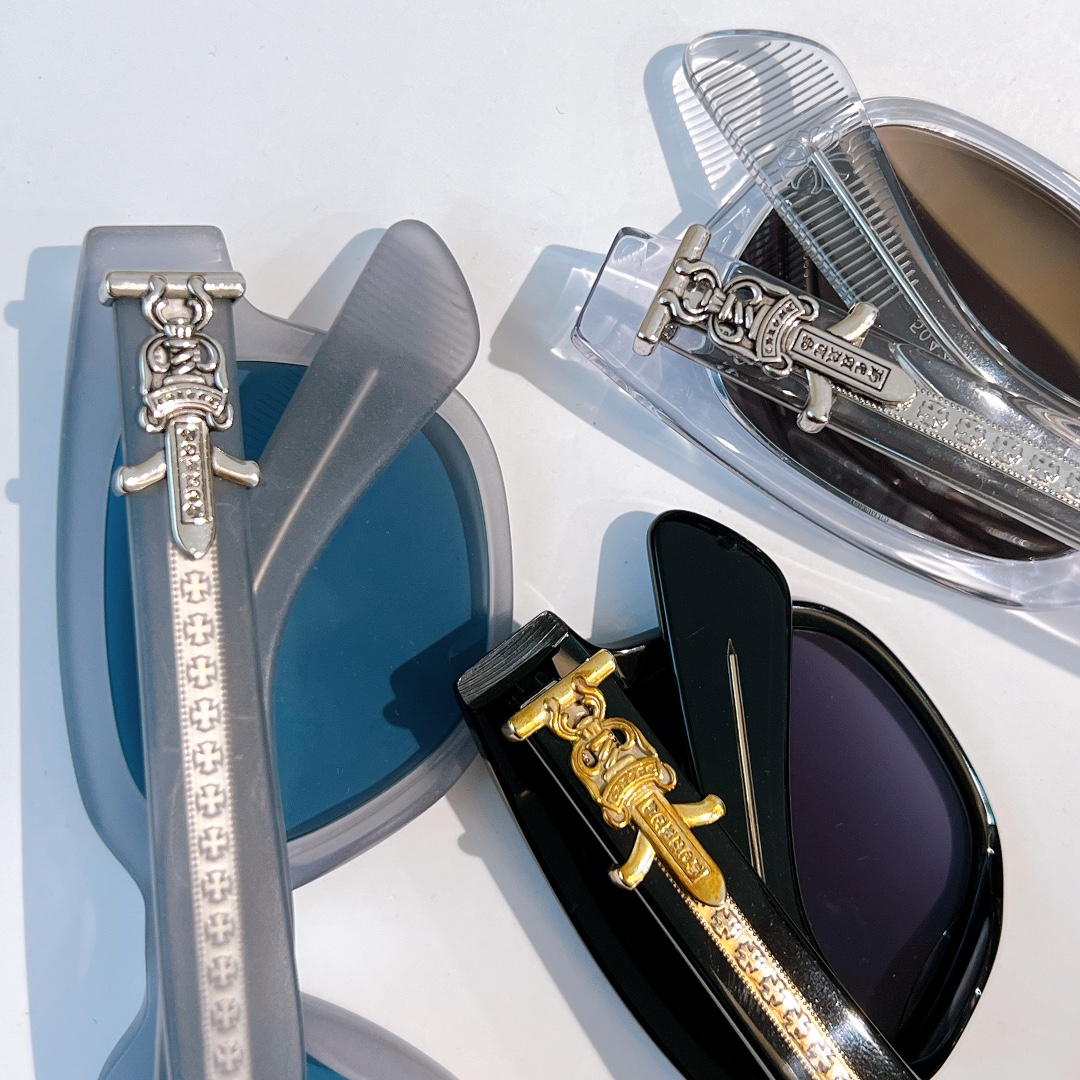這款太陽眼鏡是AAAAA 1:1 質量(非常棒). 使用了和原版一模一樣的材料. 商標部分也保持了和鉻心/Chrome Hearts一樣. 圖片拍攝是實物太陽眼鏡拍攝, 您所收到的實物保證和我們圖片一模一樣.