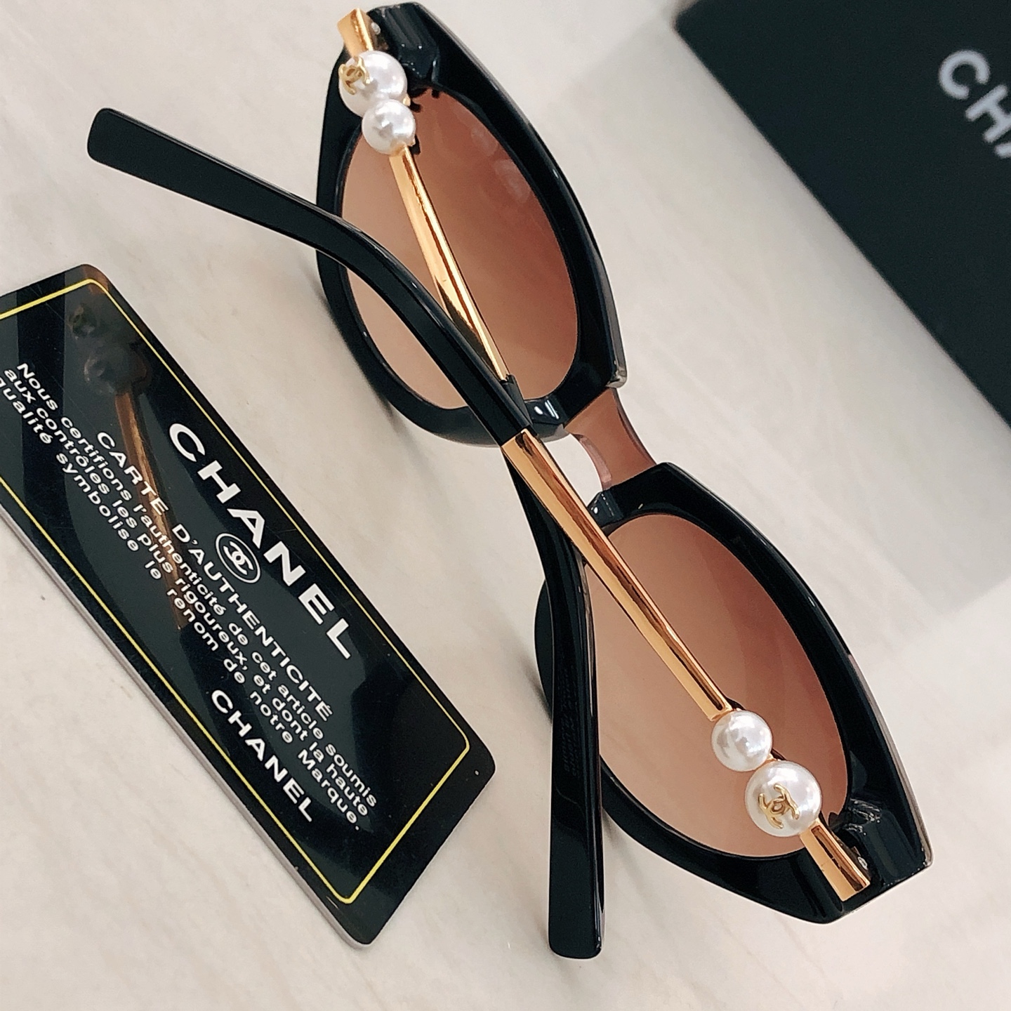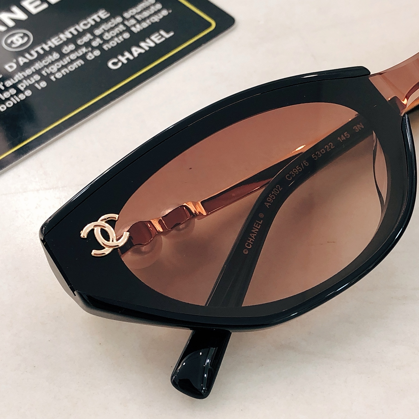 這款太陽眼鏡是AAAAA 1:1 質量(非常棒). 使用了和原版一模一樣的材料. 商標部分也保持了和香奈兒/Chanel一樣. 圖片拍攝是實物太陽眼鏡拍攝, 您所收到的實物保證和我們圖片一模一樣.
