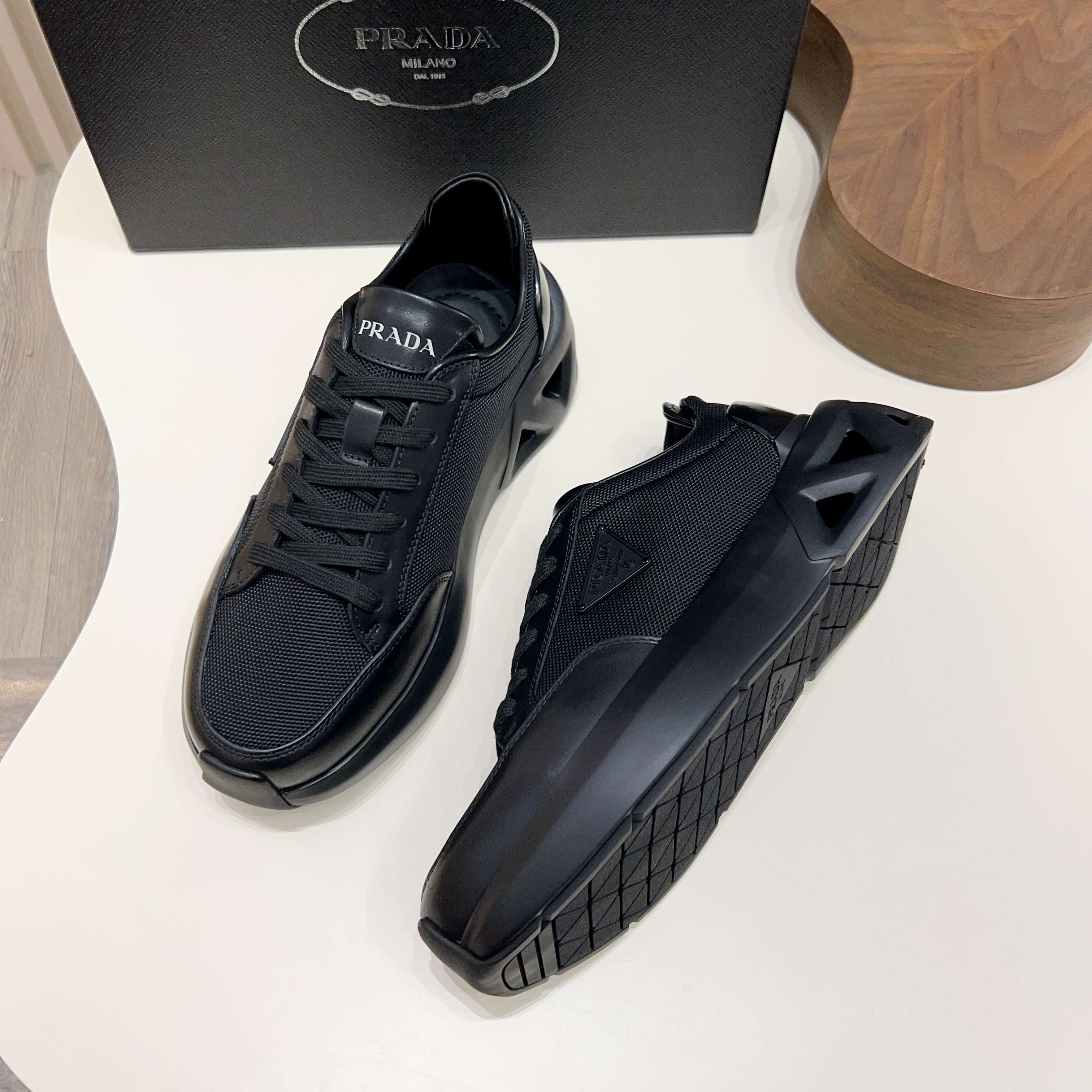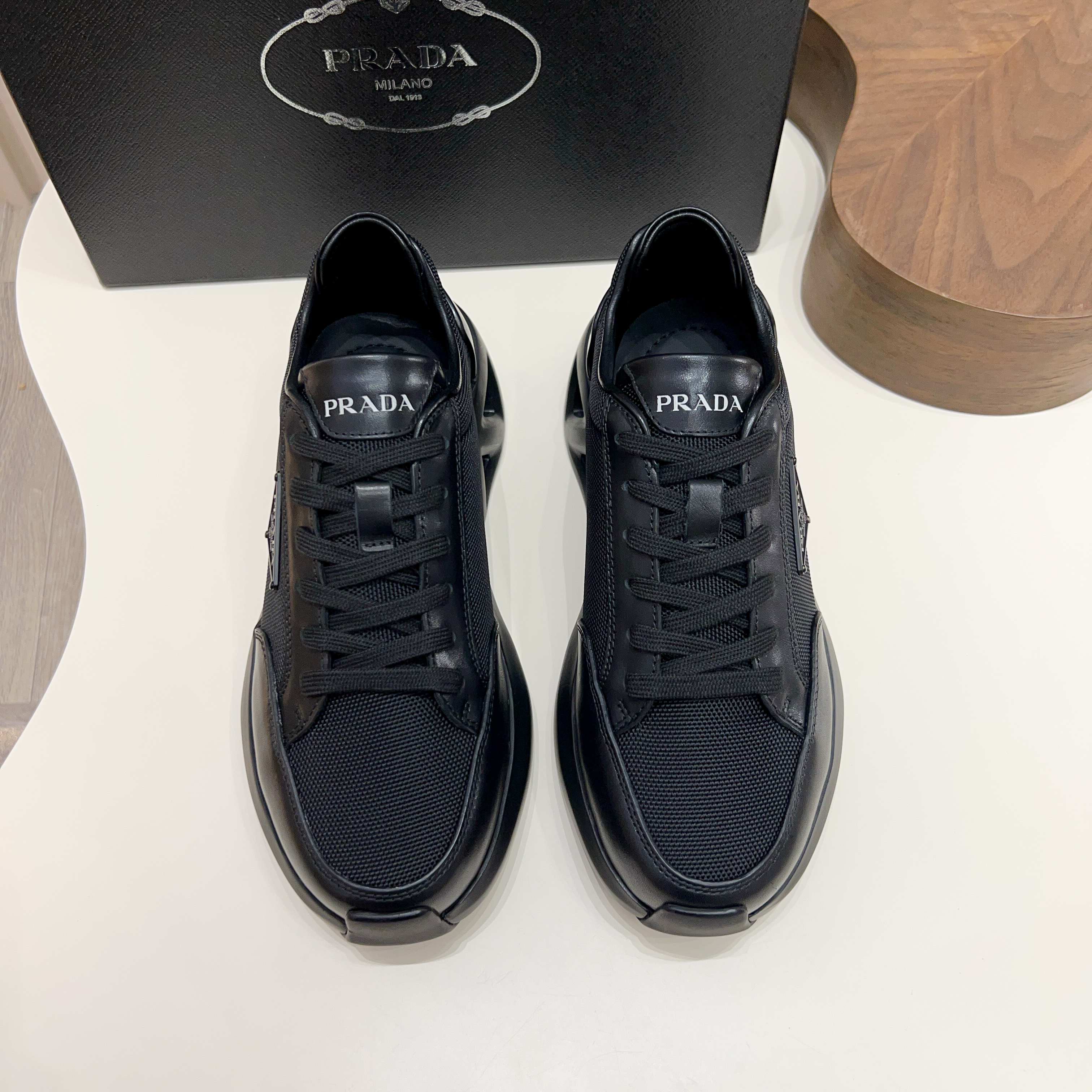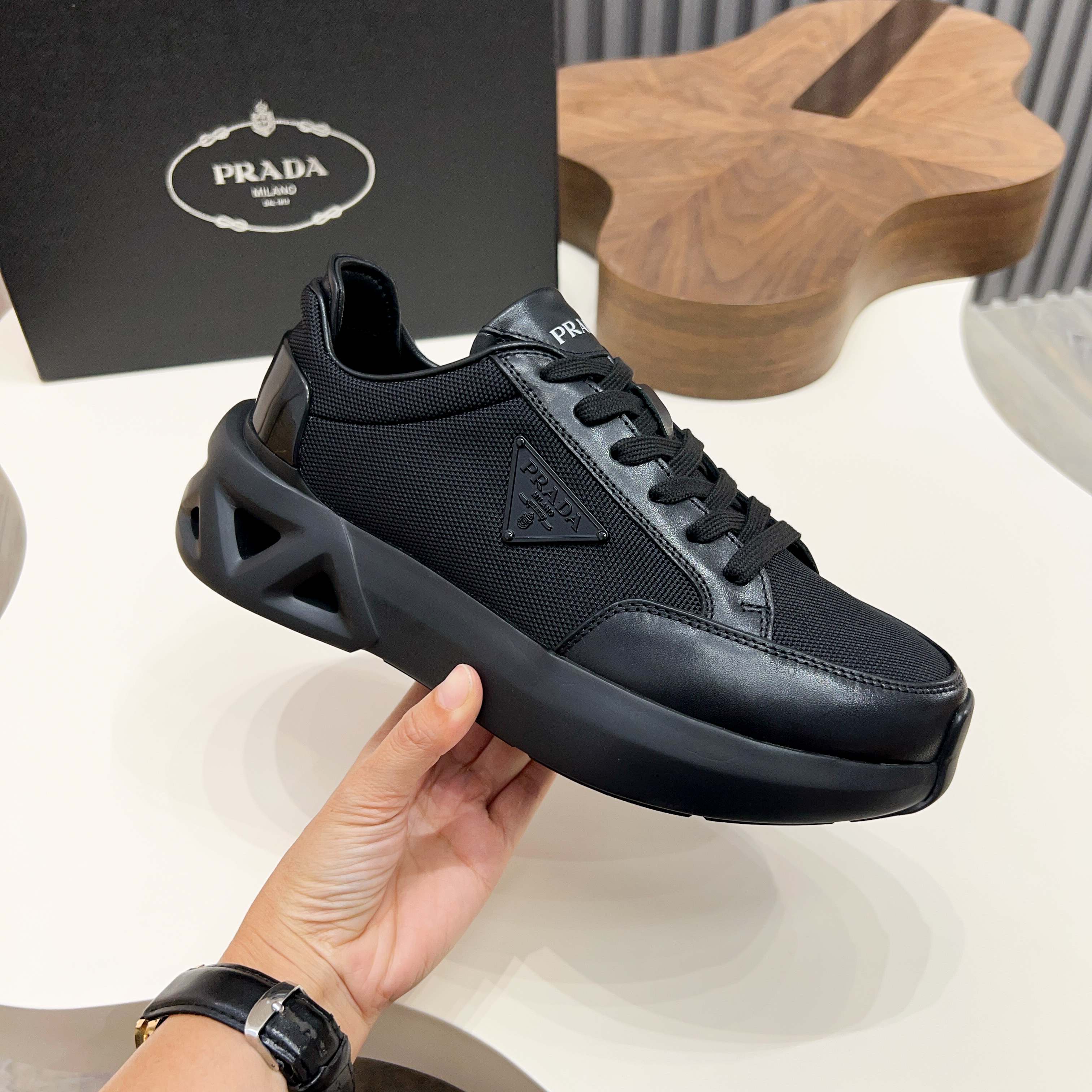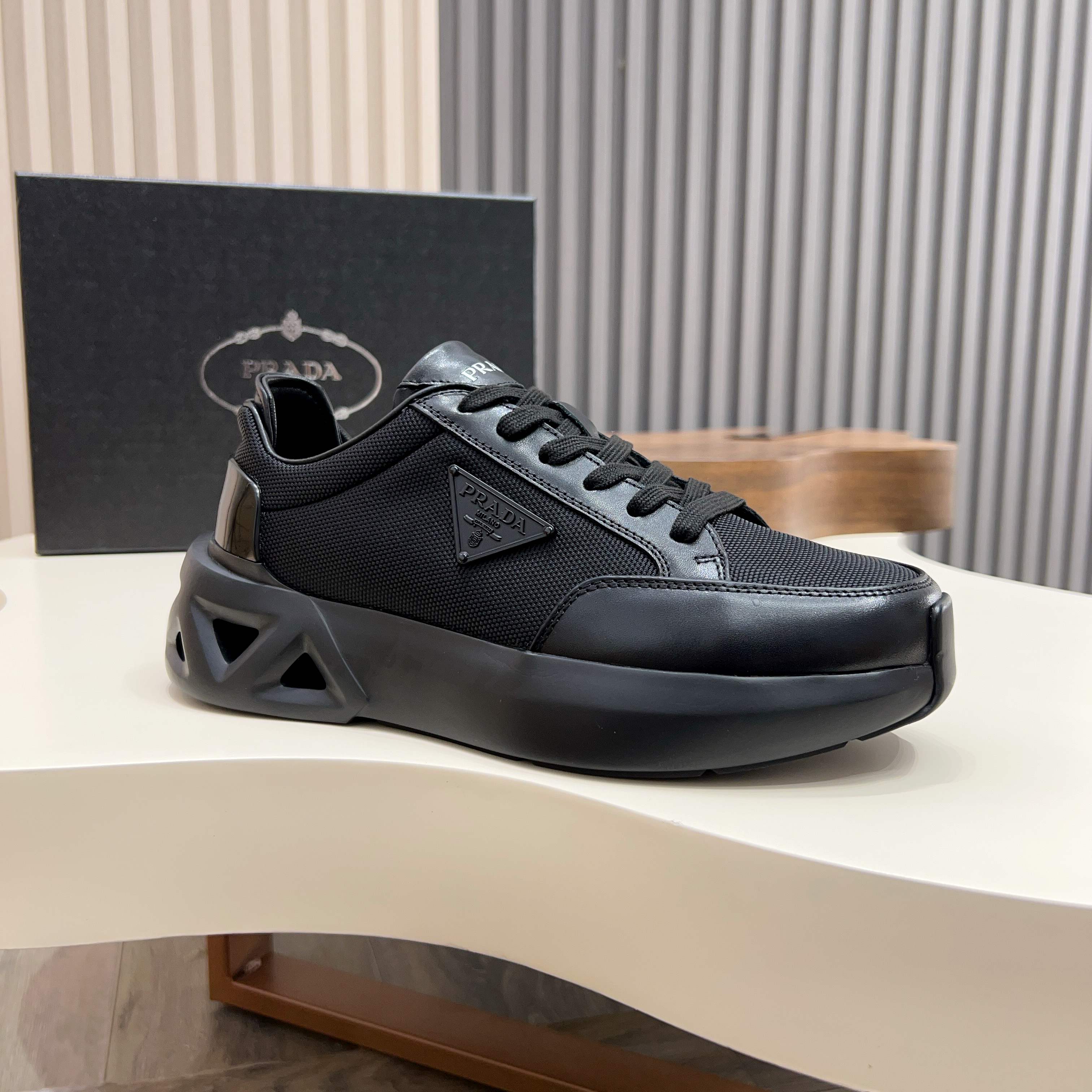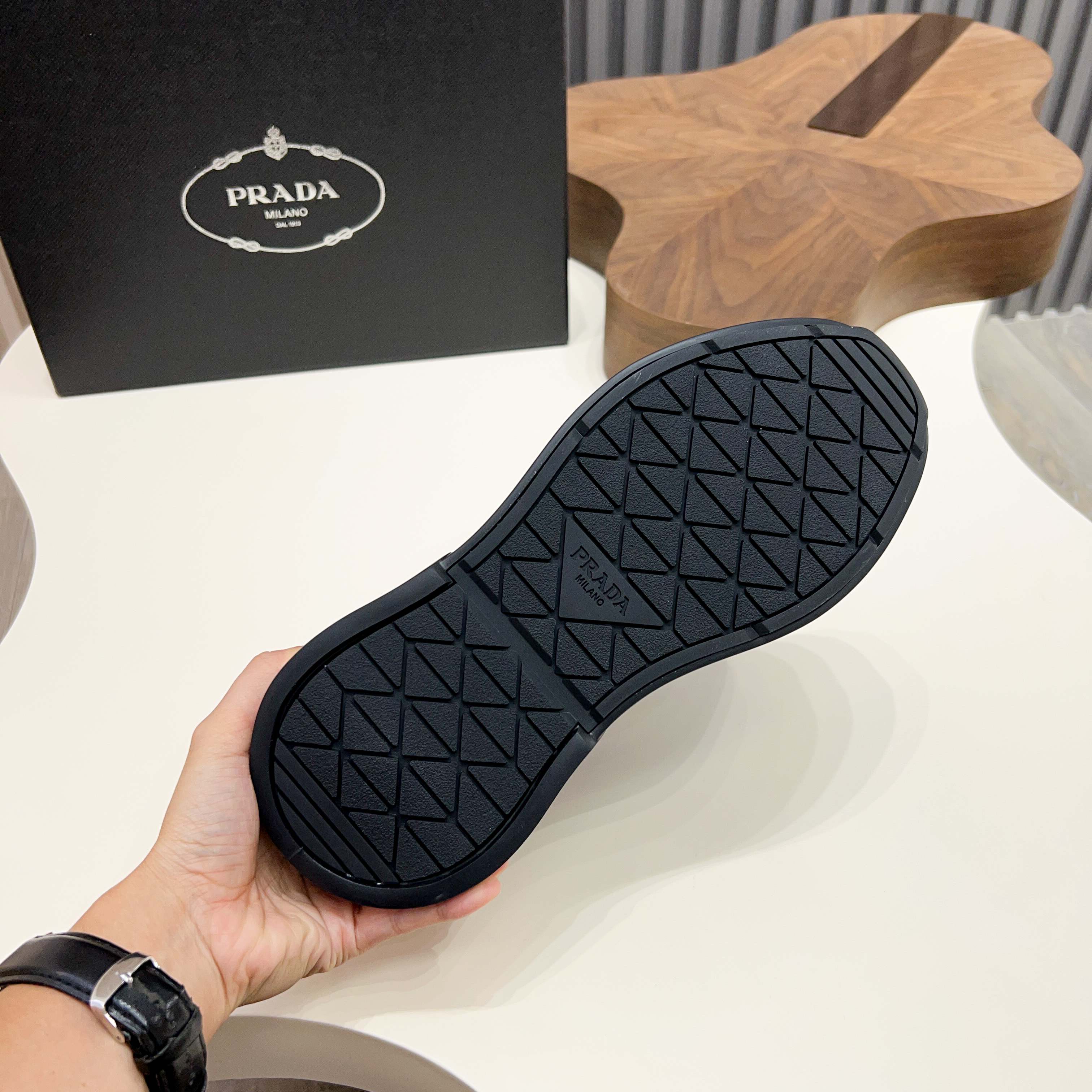 這款鞋子是AAAAA 1:1 質量(非常棒). 使用了和原版一模一樣的材料. 商標部分也保持了和普拉達/Prada一樣. 圖片拍攝是實物鞋子拍攝, 您所收到的實物保證和我們圖片一模一樣.