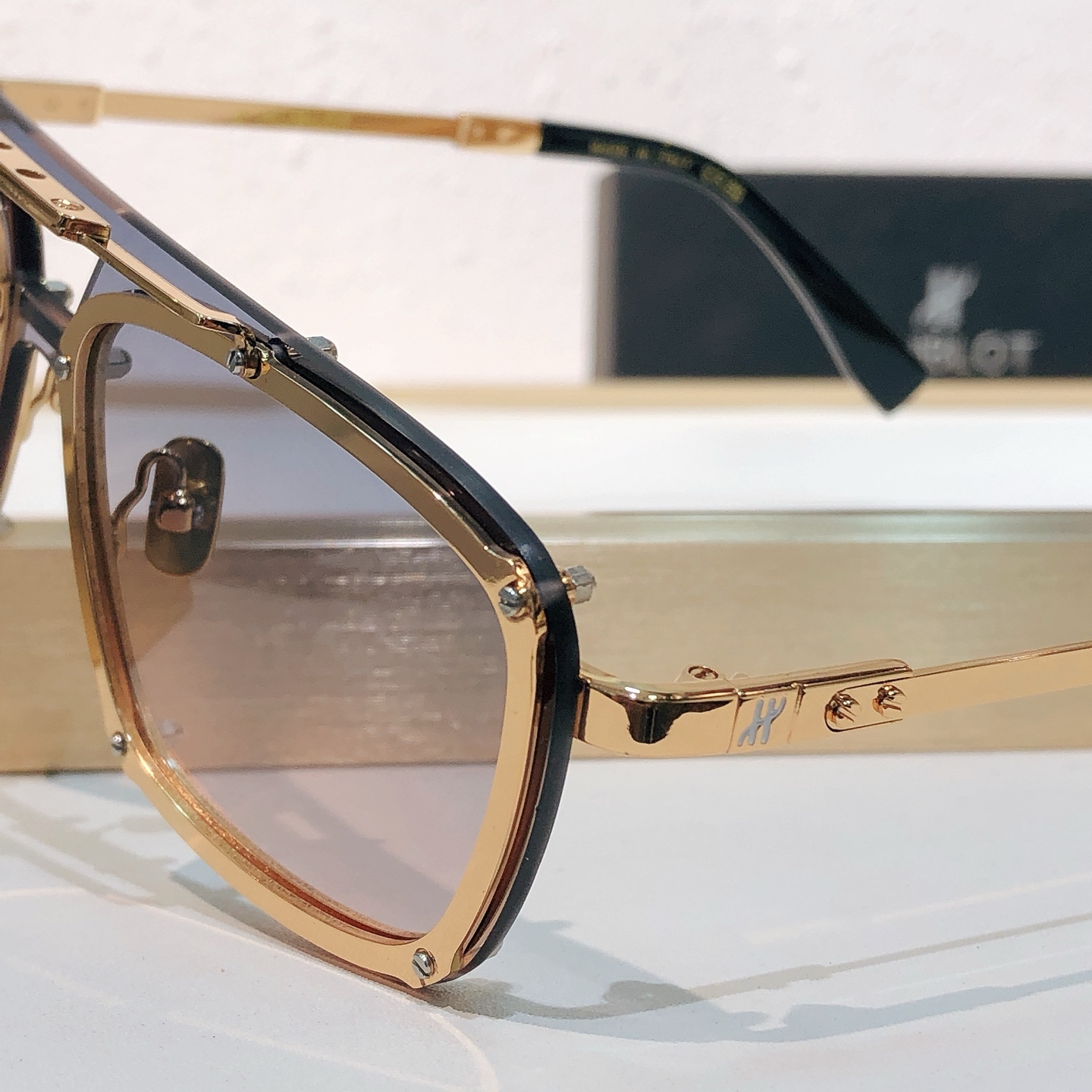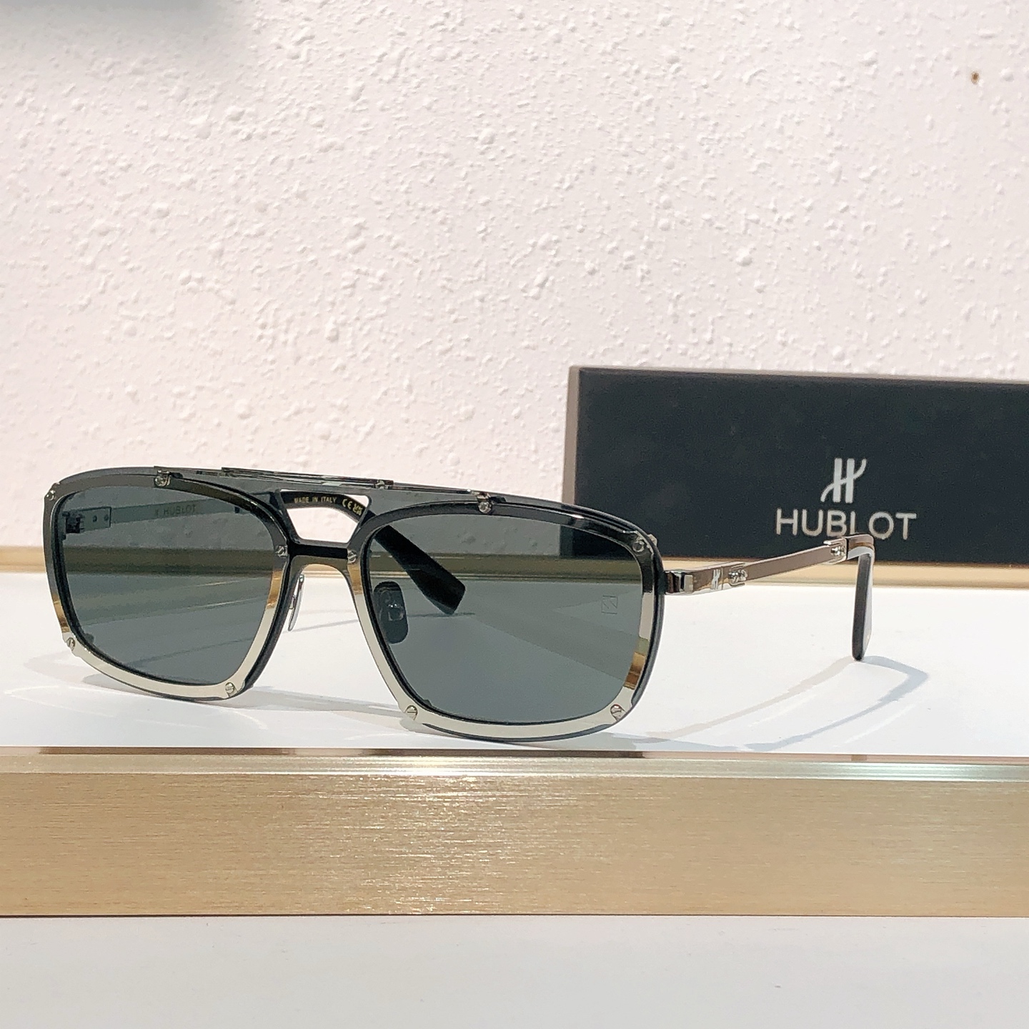 這款太陽眼鏡是AAAAA 1:1 質量(非常棒). 使用了和原版一模一樣的材料. 商標部分也保持了和Hublot一樣. 圖片拍攝是實物太陽眼鏡拍攝, 您所收到的實物保證和我們圖片一模一樣.