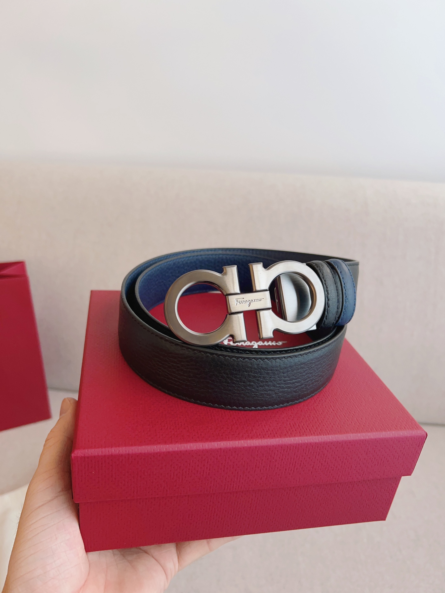 這款皮帶是AAAAA 1:1 質量(非常棒). 使用了和原版一模一樣的材料. 商標部分也保持了和菲拉格慕/Salvatore Ferragamo一樣. 圖片拍攝是實物皮帶拍攝, 您所收到的實物保證和我們圖片一模一樣.