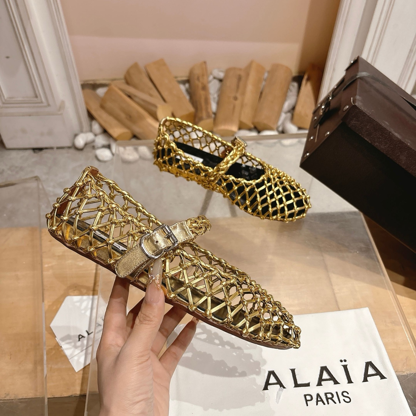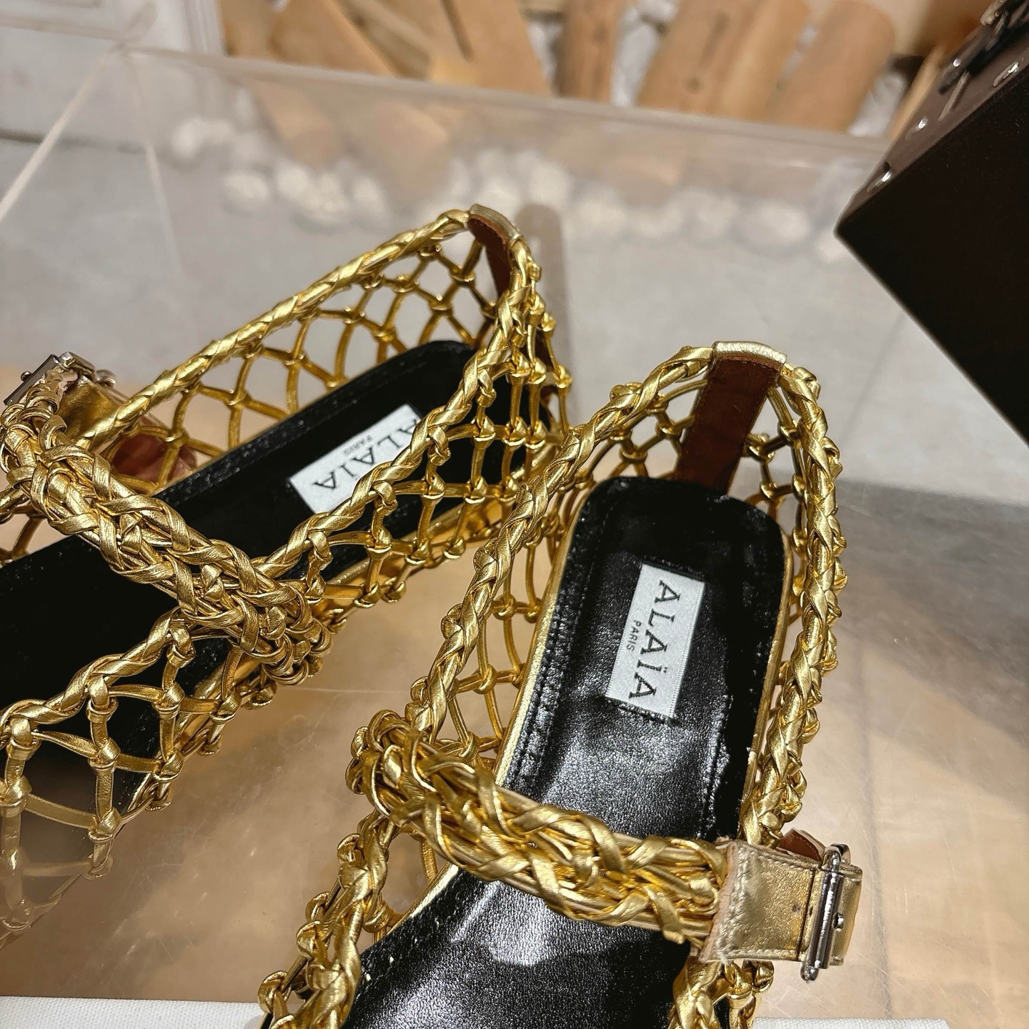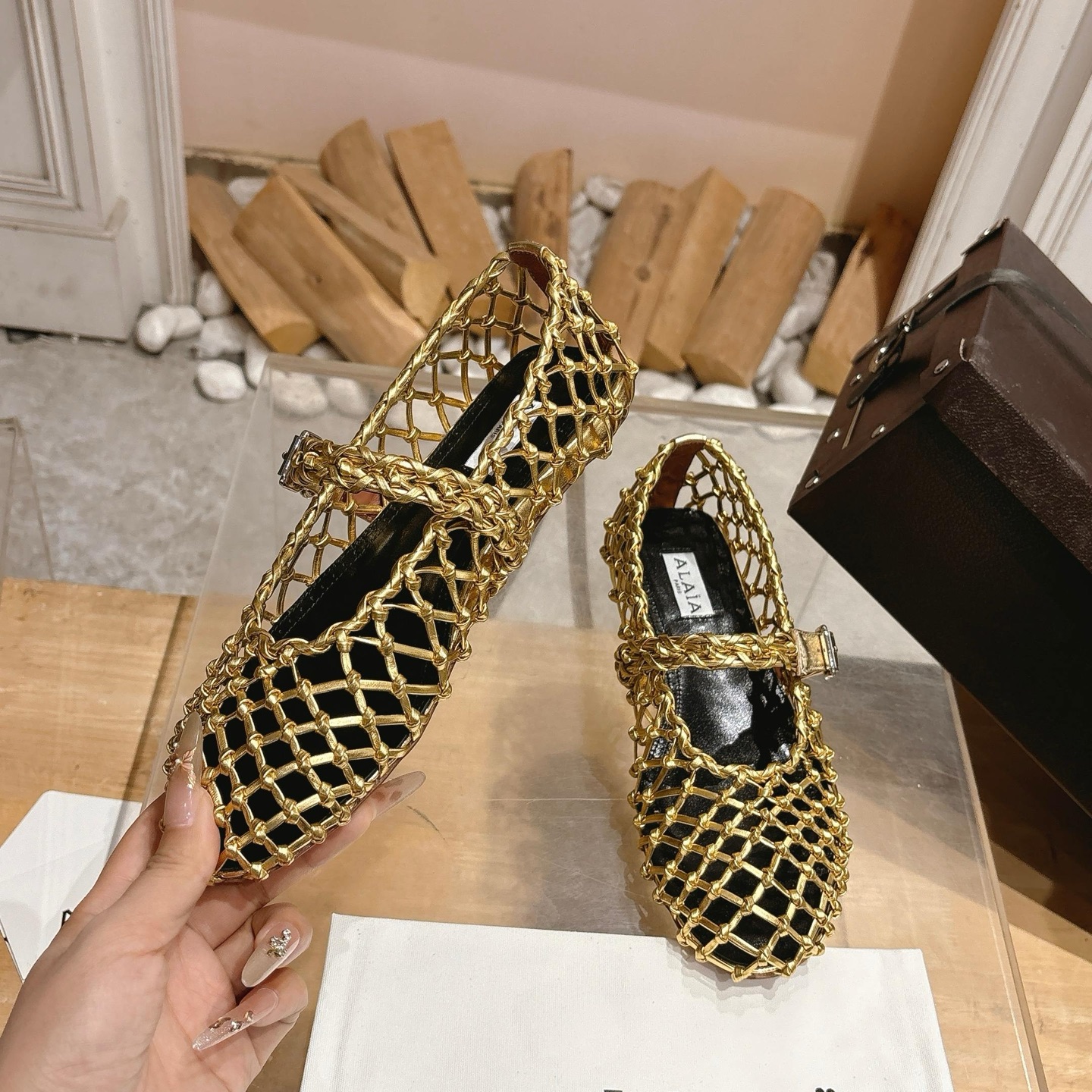 這款鞋子是AAAAA 1:1 質量(非常棒). 使用了和原版一模一樣的材料. 商標部分也保持了和Alaia一樣. 圖片拍攝是實物鞋子拍攝, 您所收到的實物保證和我們圖片一模一樣.