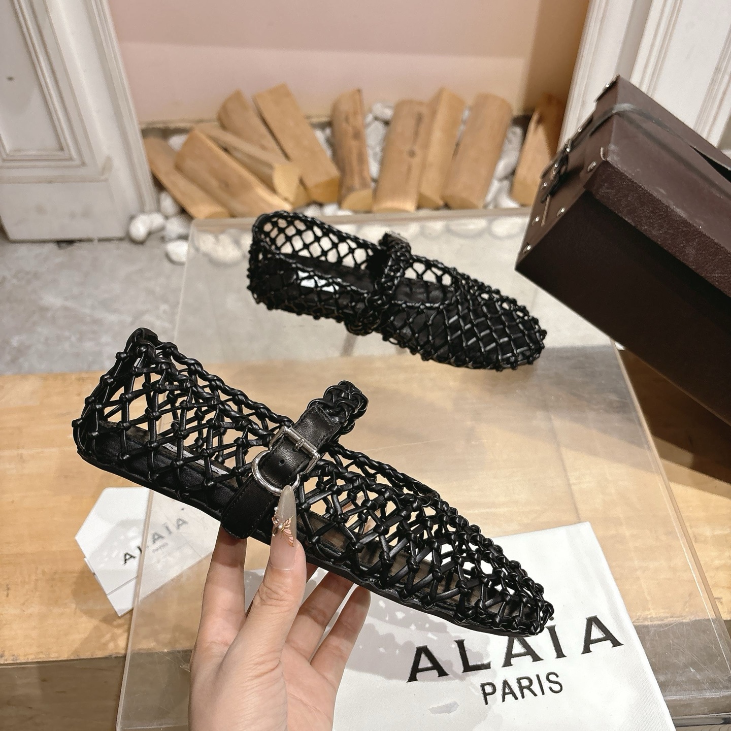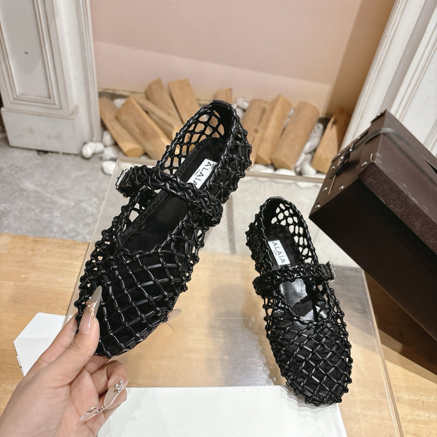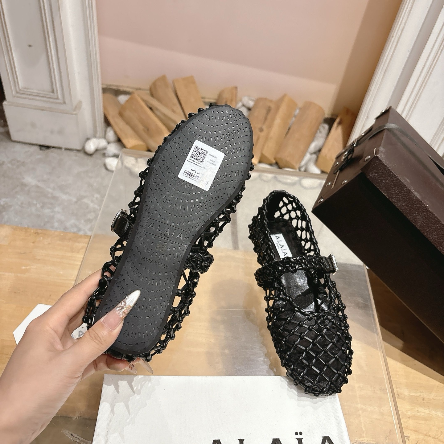 這款鞋子是AAAAA 1:1 質量(非常棒). 使用了和原版一模一樣的材料. 商標部分也保持了和Alaia一樣. 圖片拍攝是實物鞋子拍攝, 您所收到的實物保證和我們圖片一模一樣.