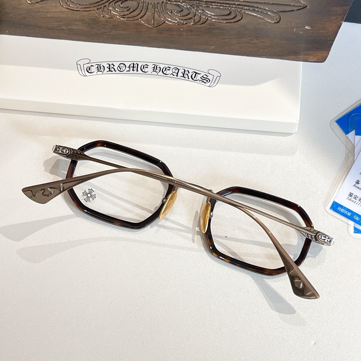 這款太陽眼鏡是AAAAA 1:1 質量(非常棒). 使用了和原版一模一樣的材料. 商標部分也保持了和鉻心/Chrome Hearts一樣. 圖片拍攝是實物太陽眼鏡拍攝, 您所收到的實物保證和我們圖片一模一樣.