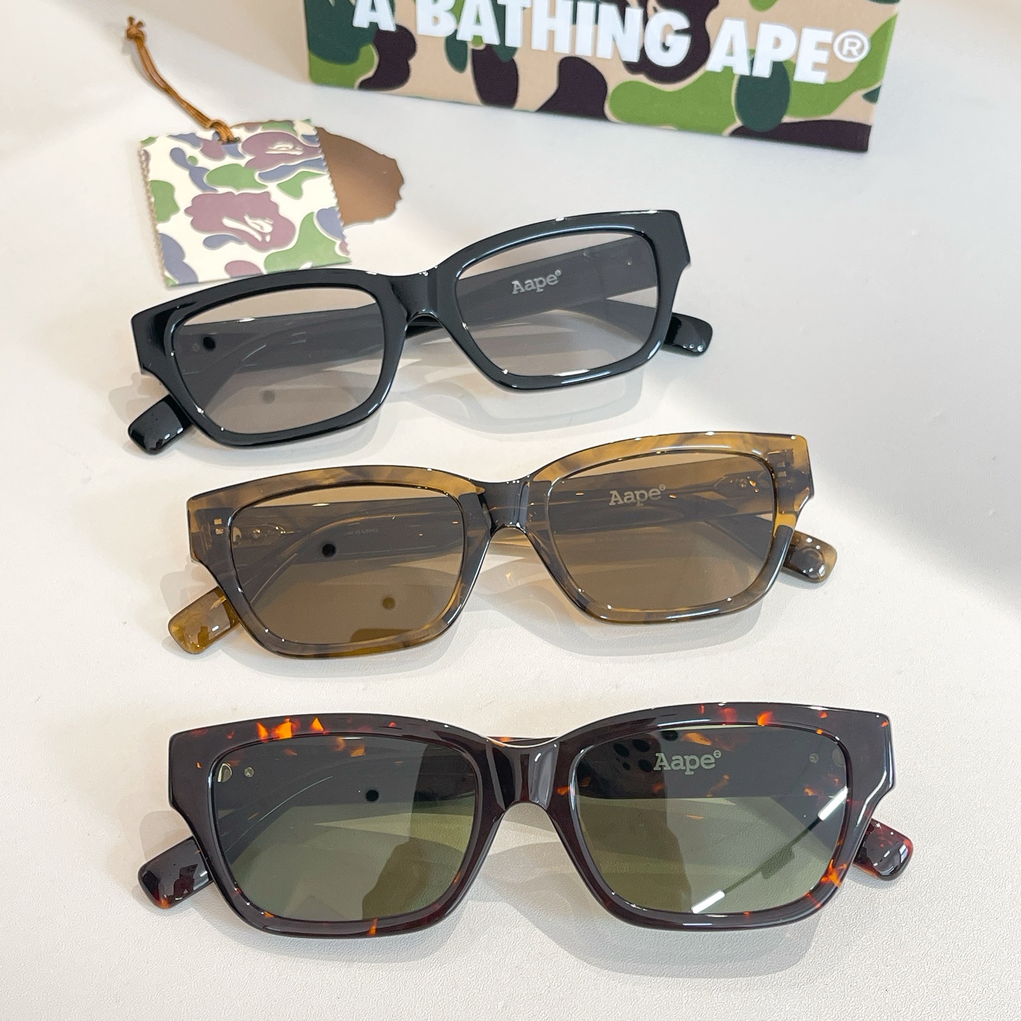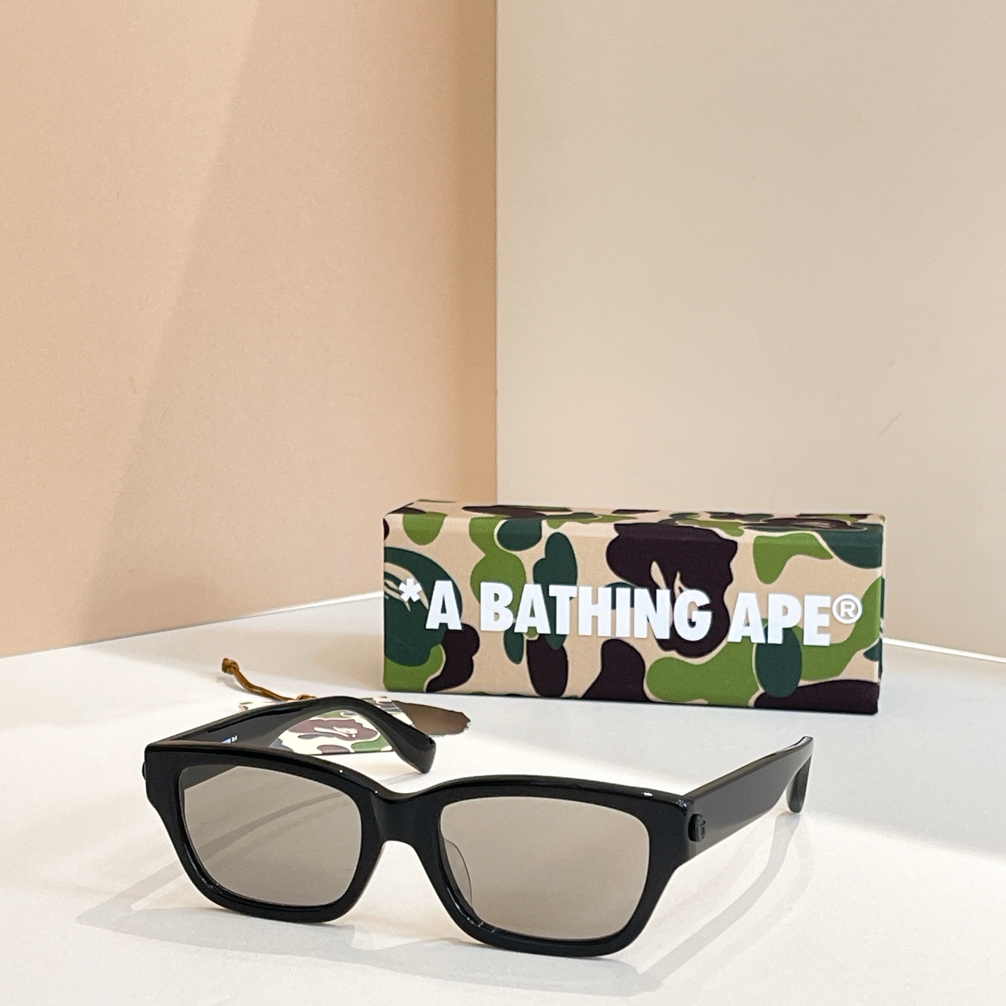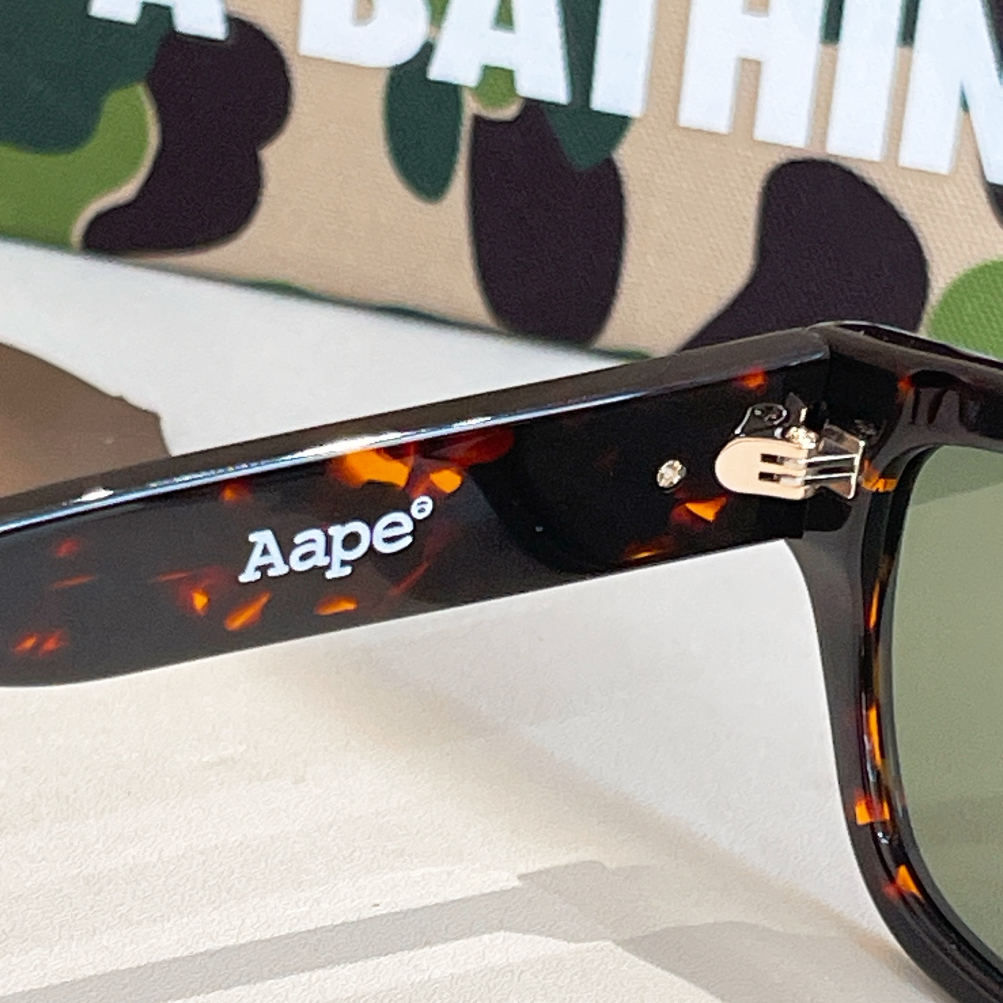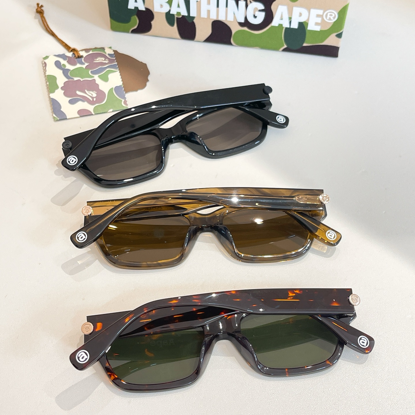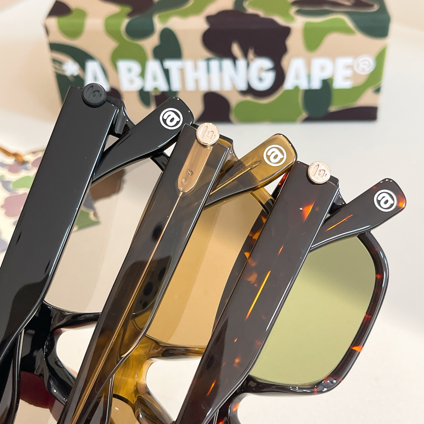 這款太陽眼鏡是AAAAA 1:1 質量(非常棒). 使用了和原版一模一樣的材料. 商標部分也保持了和Bape一樣. 圖片拍攝是實物太陽眼鏡拍攝, 您所收到的實物保證和我們圖片一模一樣.