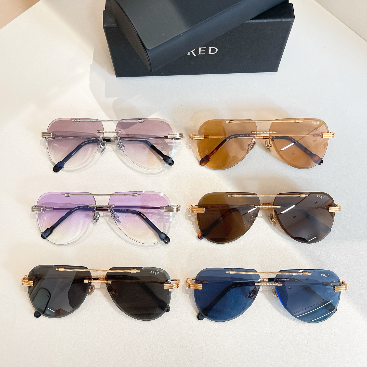 這款太陽眼鏡是AAAAA 1:1 質量(非常棒). 使用了和原版一模一樣的材料. 商標部分也保持了和Fred一樣. 圖片拍攝是實物太陽眼鏡拍攝, 您所收到的實物保證和我們圖片一模一樣.