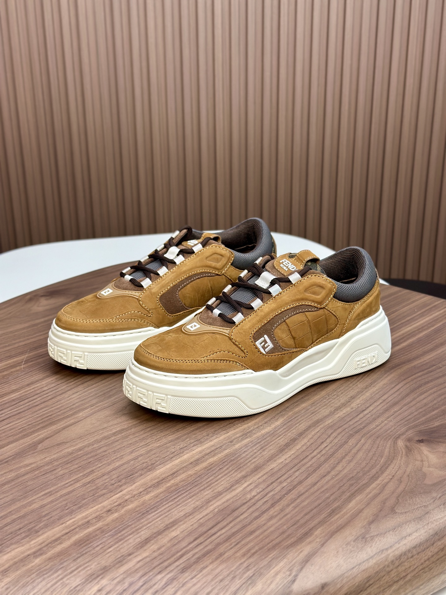 這款鞋子是AAAAA 1:1 質量(非常棒). 使用了和原版一模一樣的材料. 商標部分也保持了和芬迪/Fendi一樣. 圖片拍攝是實物鞋子拍攝, 您所收到的實物保證和我們圖片一模一樣.
