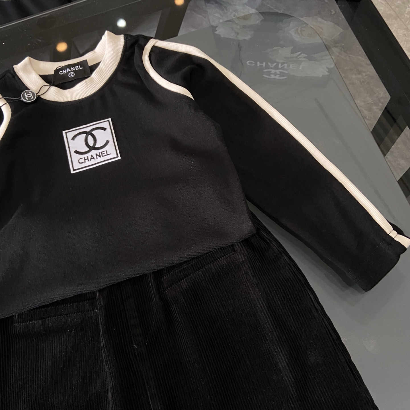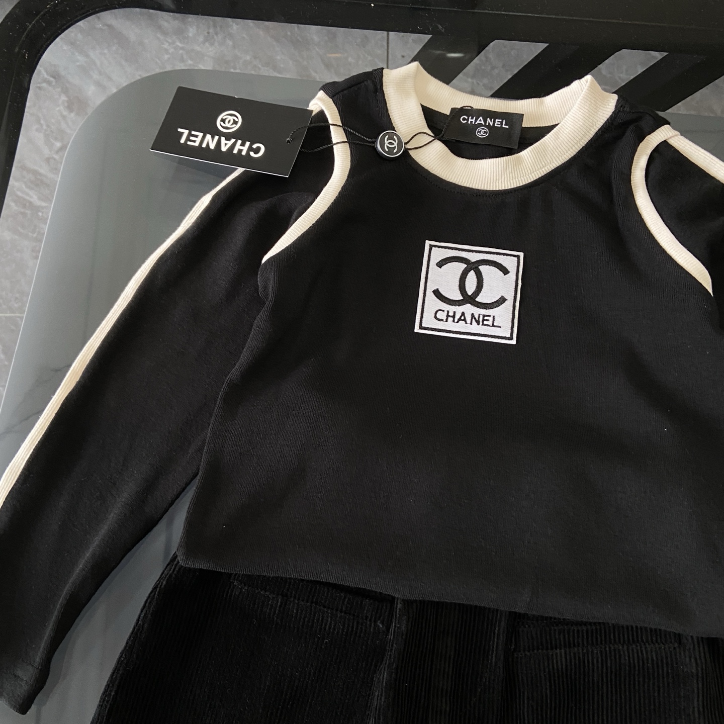 這款children's clothes是AAAAA 1:1 質量(非常棒). 使用了和原版一模一樣的材料. 商標部分也保持了和香奈兒/Chanel一樣. 圖片拍攝是實物children's clothes拍攝, 您所收到的實物保證和我們圖片一模一樣.