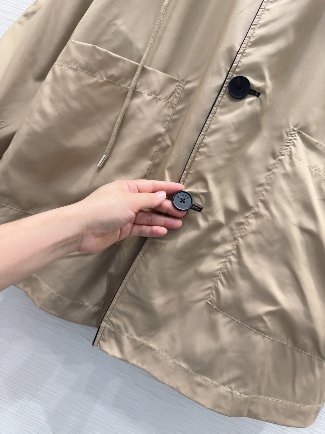這款衣服是AAAAA 1:1 質量(非常棒). 使用了和原版一模一樣的材料. 商標部分也保持了和普拉達/Prada一樣. 圖片拍攝是實物衣服拍攝, 您所收到的實物保證和我們圖片一模一樣.