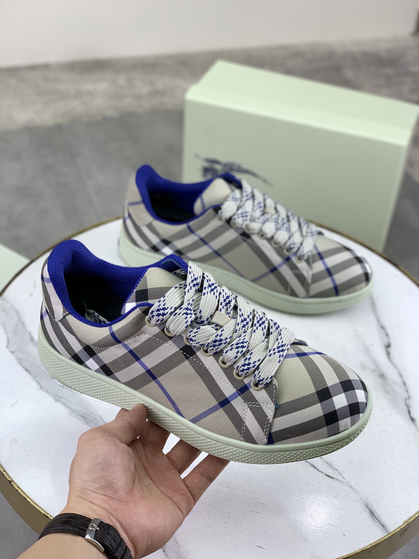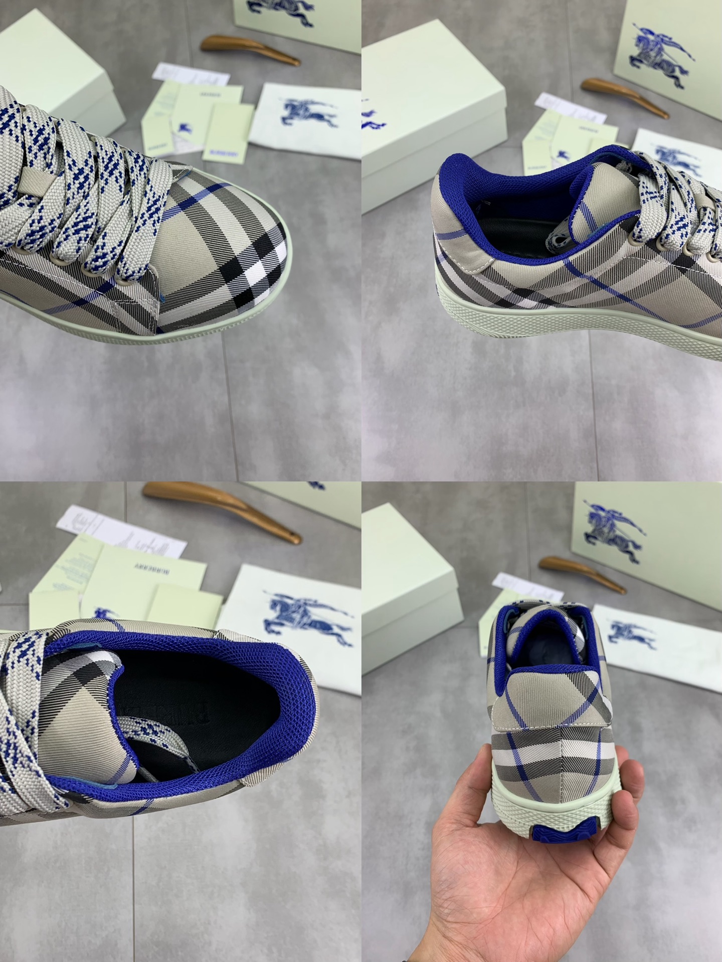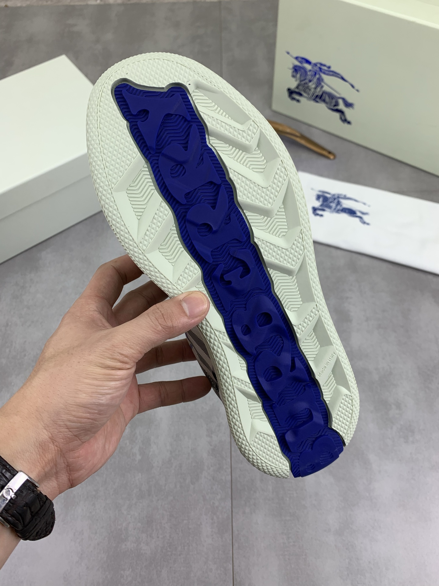 這款鞋子是AAAAA 1:1 質量(非常棒). 使用了和原版一模一樣的材料. 商標部分也保持了和巴寶莉/Burberry一樣. 圖片拍攝是實物鞋子拍攝, 您所收到的實物保證和我們圖片一模一樣.