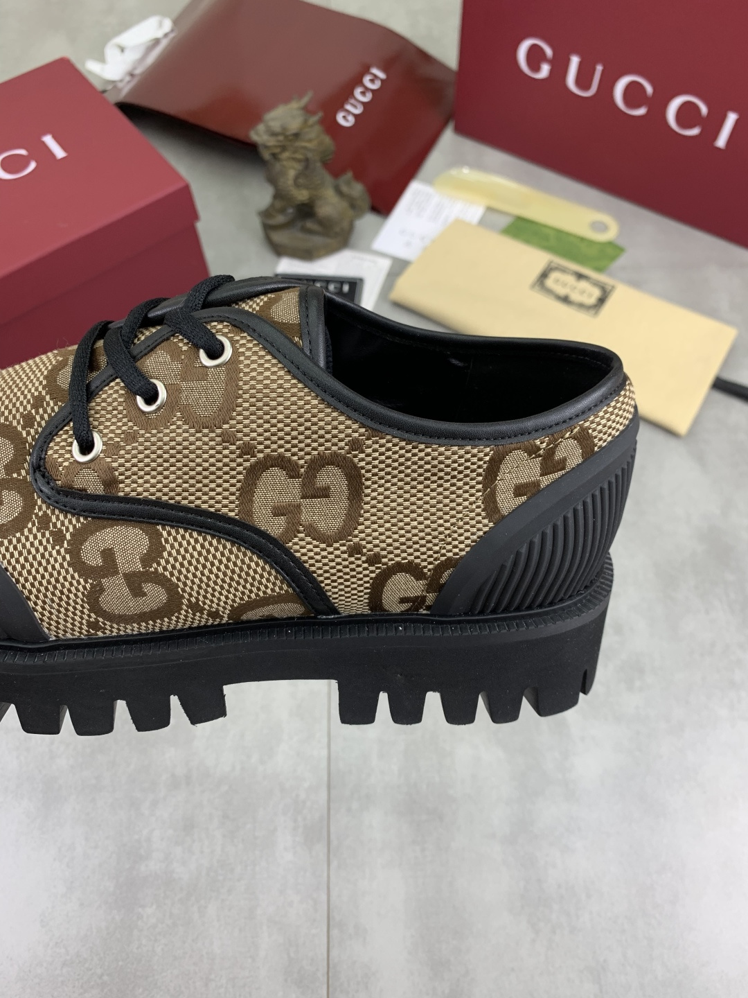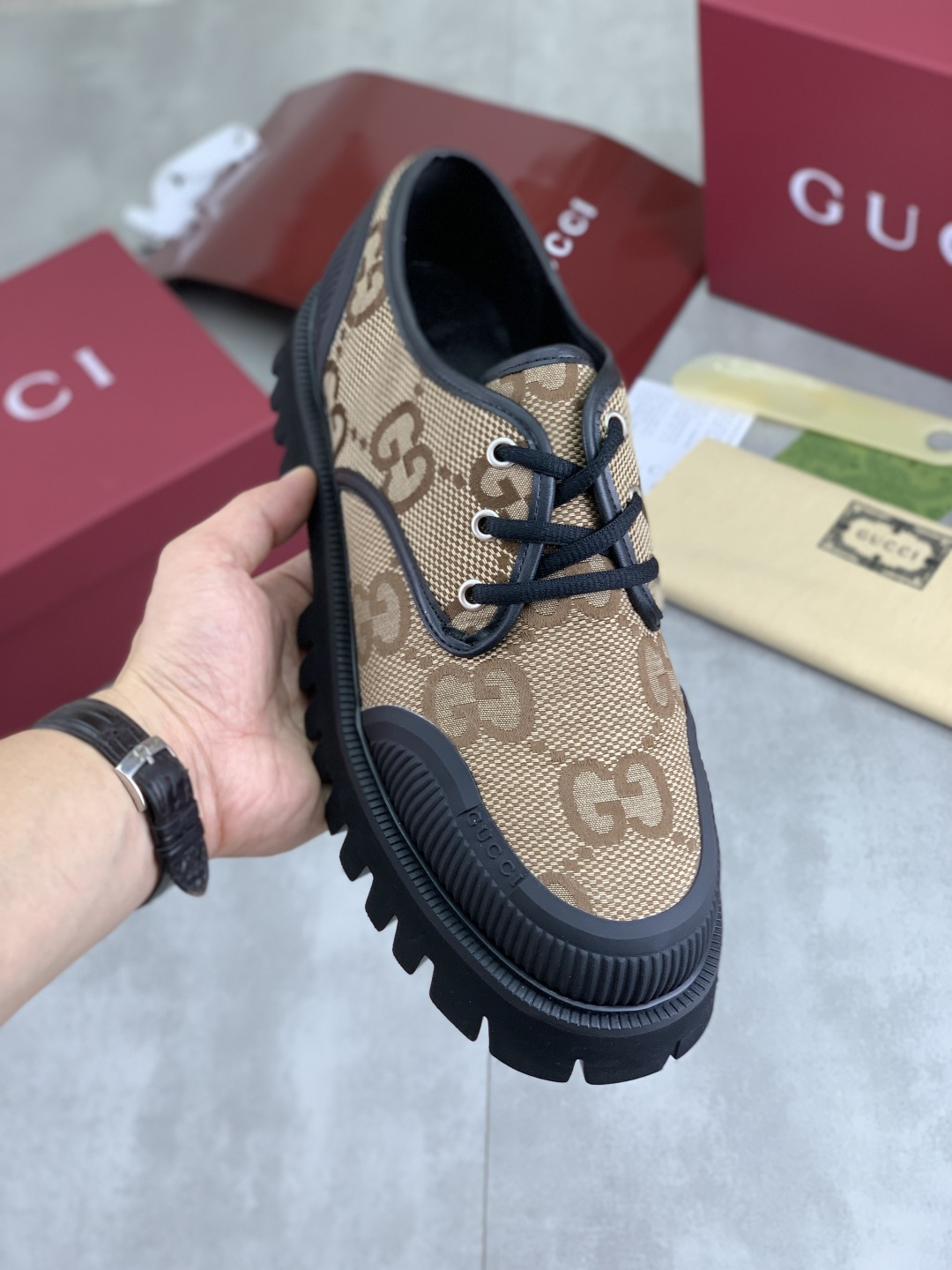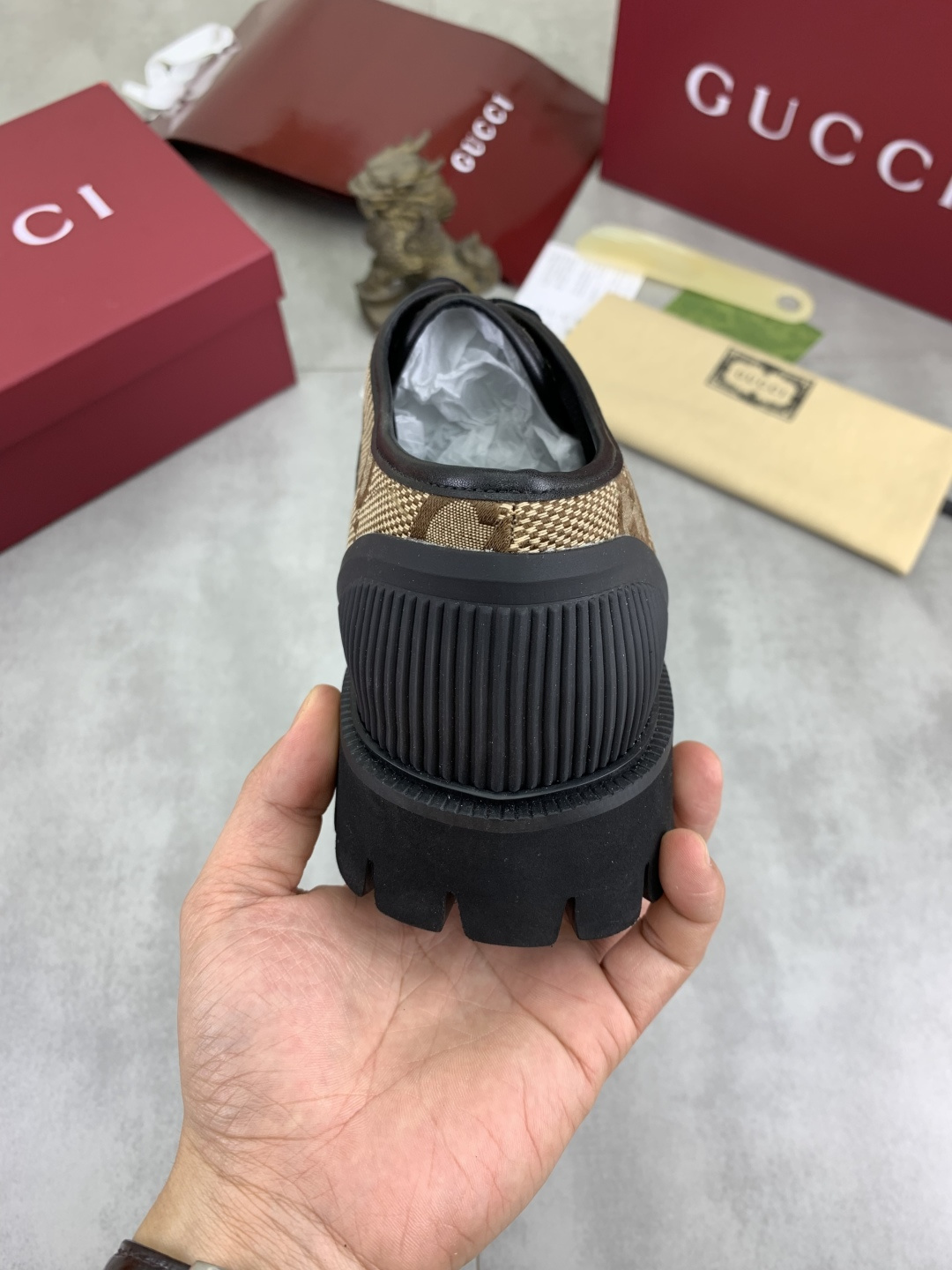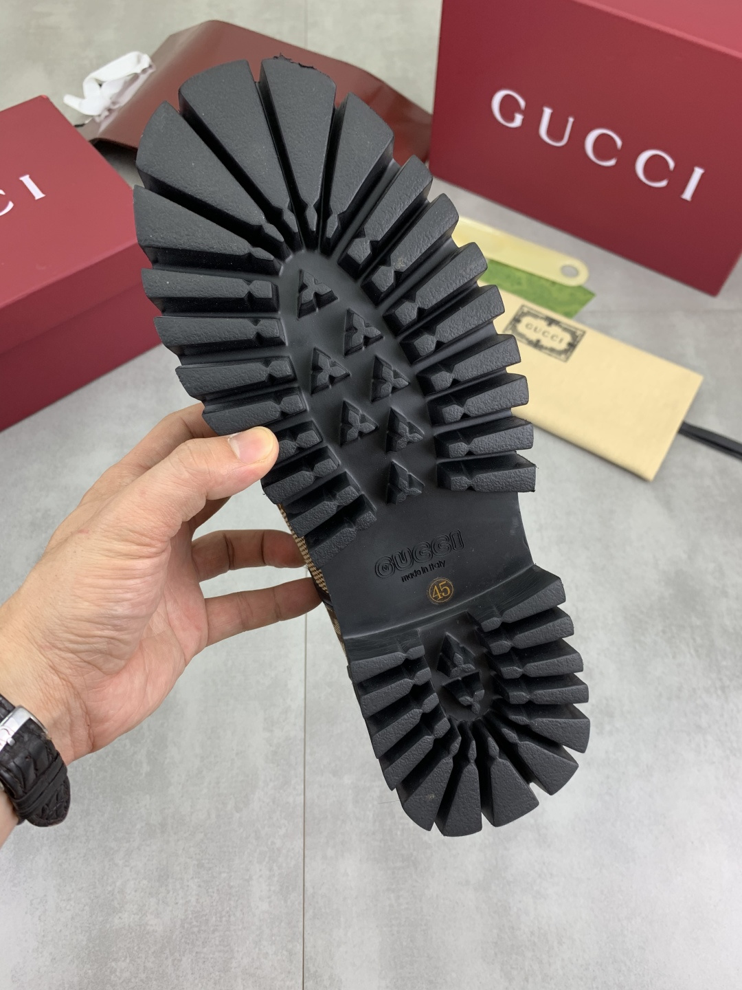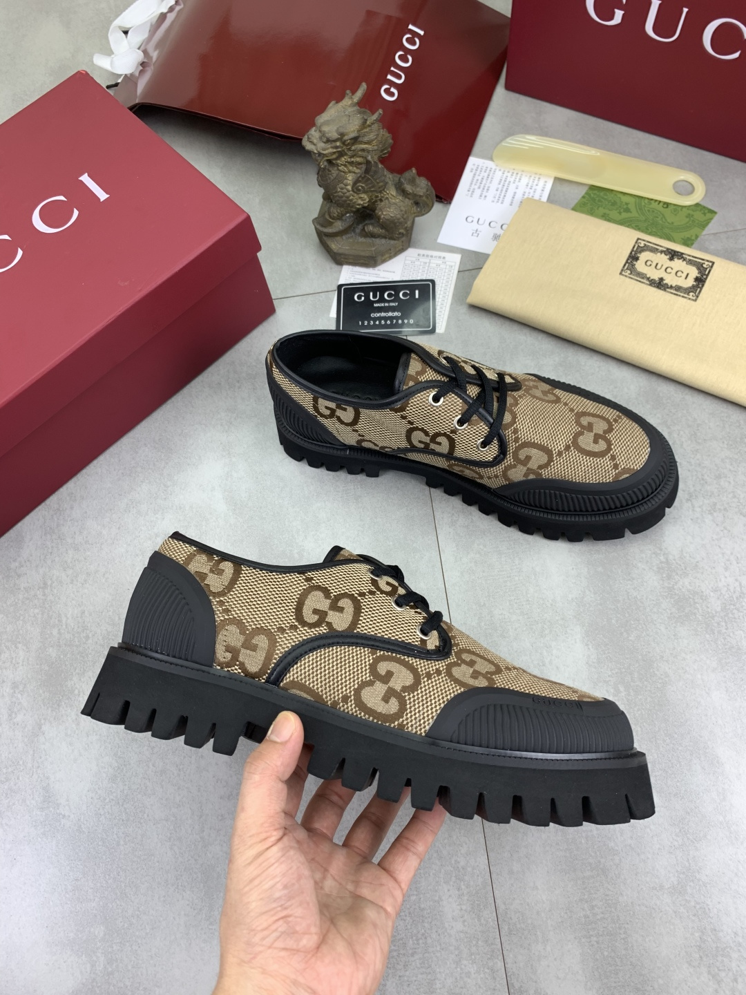 這款鞋子是AAAAA 1:1 質量(非常棒). 使用了和原版一模一樣的材料. 商標部分也保持了和古奇/Gucci一樣. 圖片拍攝是實物鞋子拍攝, 您所收到的實物保證和我們圖片一模一樣.