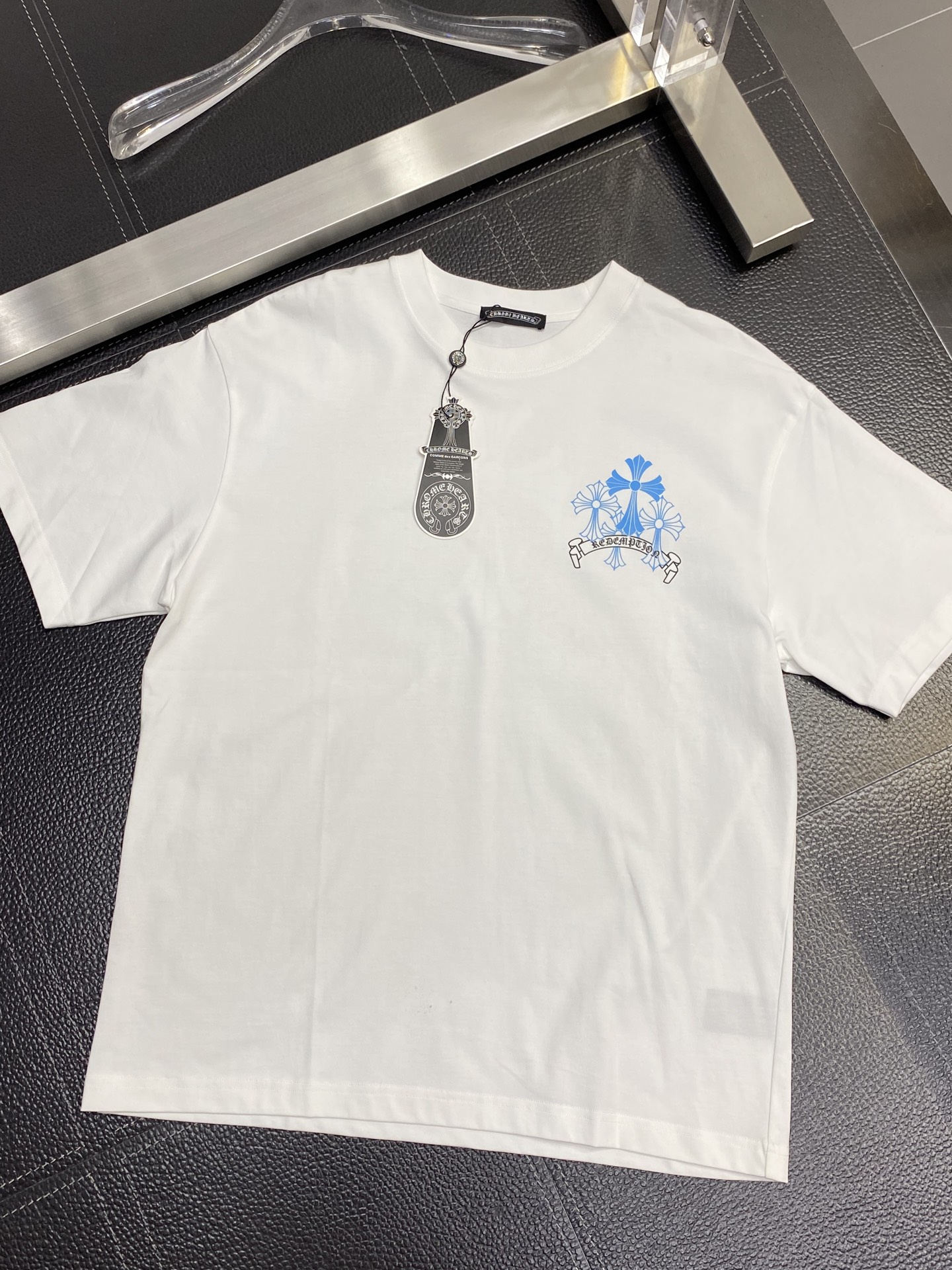 這款衣服是AAAAA 1:1 質量(非常棒). 使用了和原版一模一樣的材料. 商標部分也保持了和鉻心/Chrome Hearts一樣. 圖片拍攝是實物衣服拍攝, 您所收到的實物保證和我們圖片一模一樣.